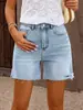 Jeans Transfronterizos para Mujer Nuevos Europeos y Americanos Verano Lavados Rotos Shorts de Mezclilla