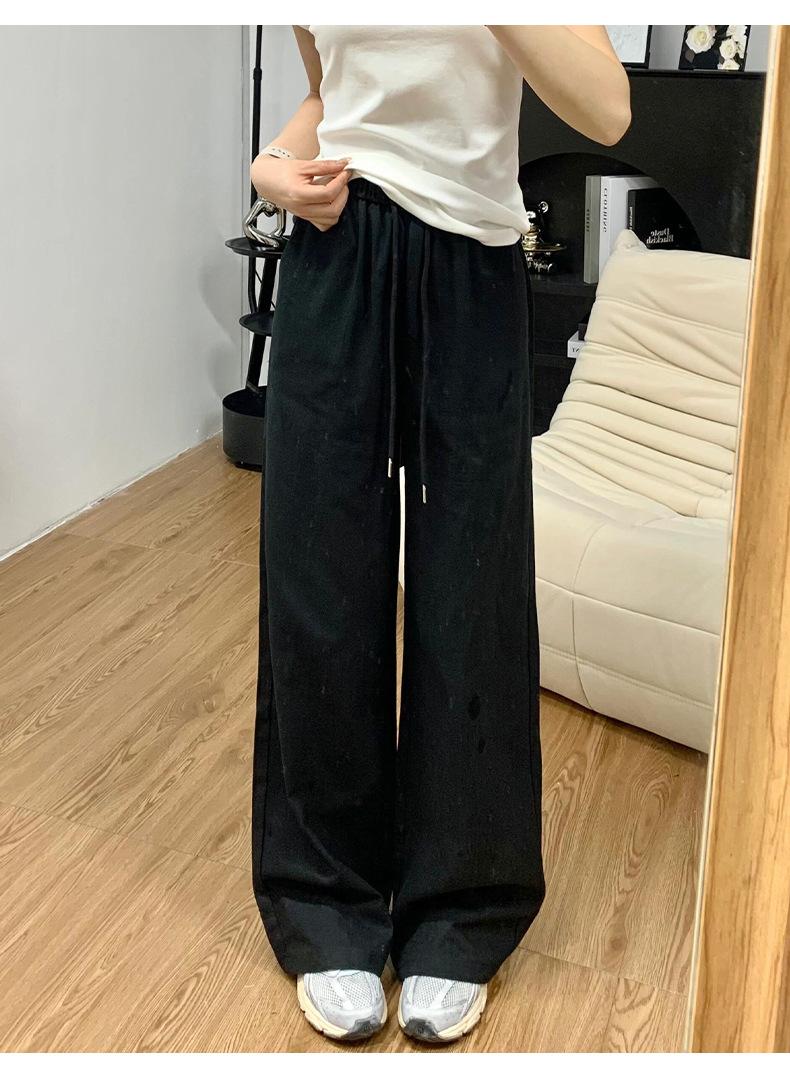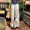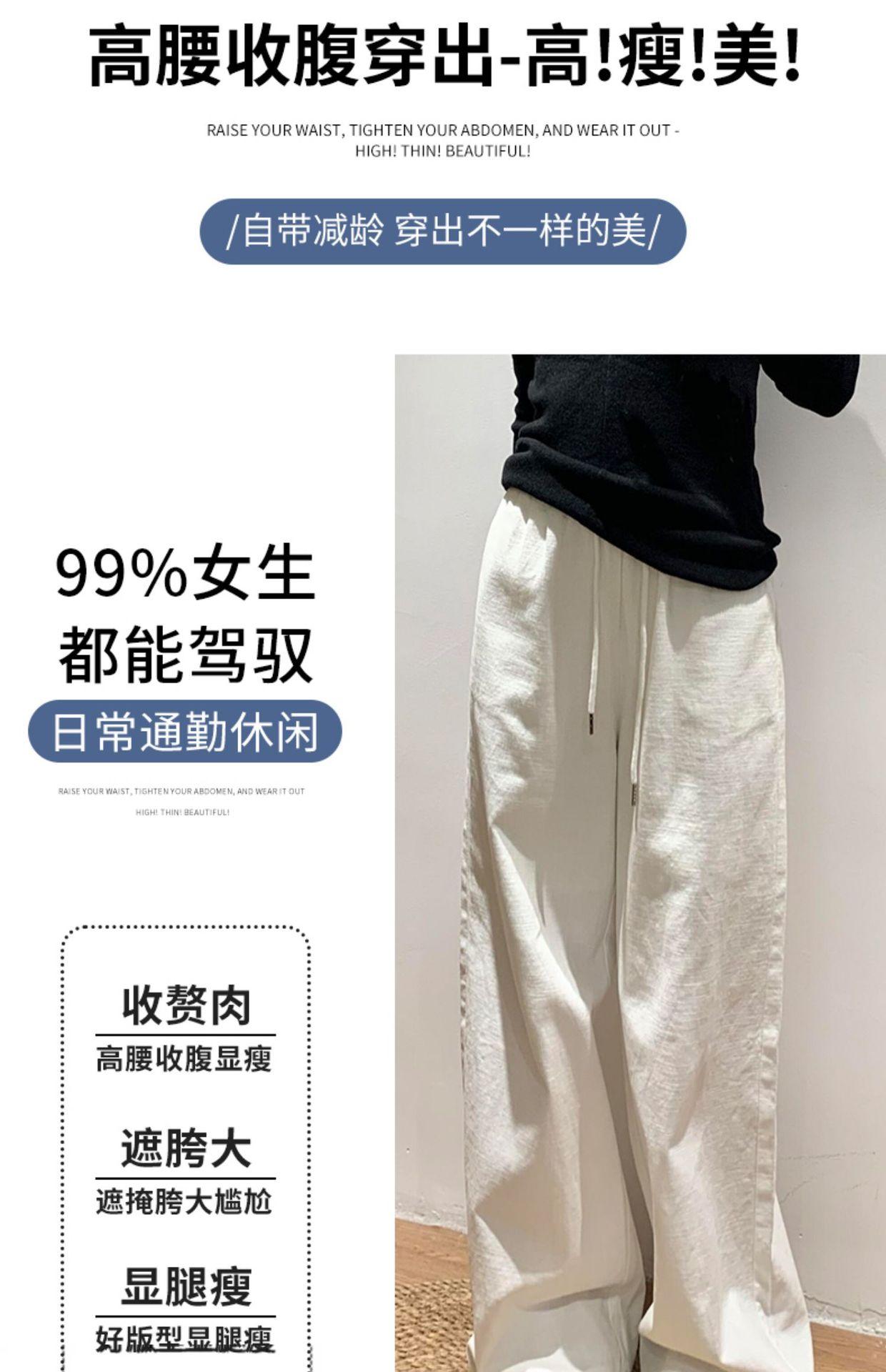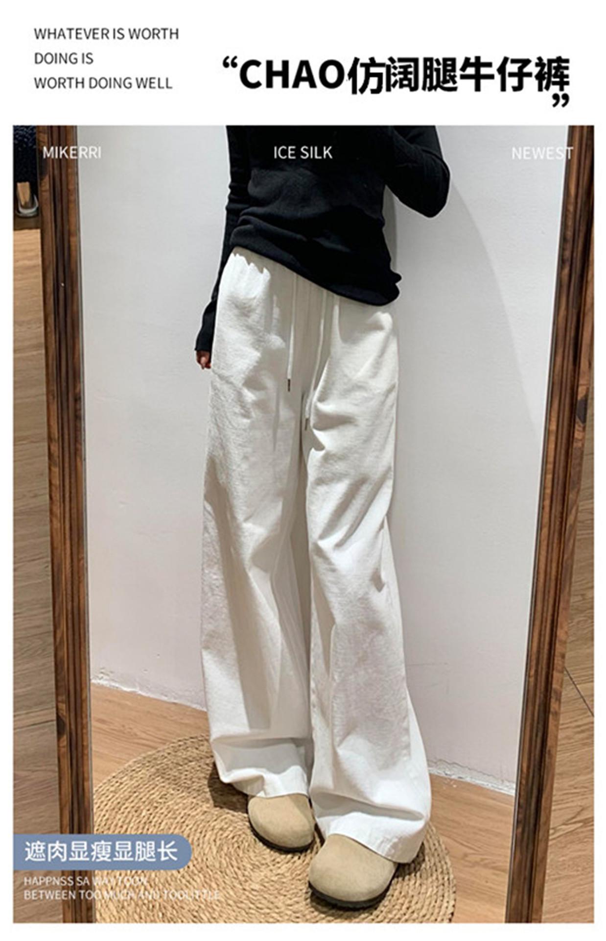 Pantalones blancos de pierna ancha para mujer Primavera y Otoño 2025 Nuevo Suelto Recto Denim Algodón y Lino Pequeños Pantalones Casuales de Verano