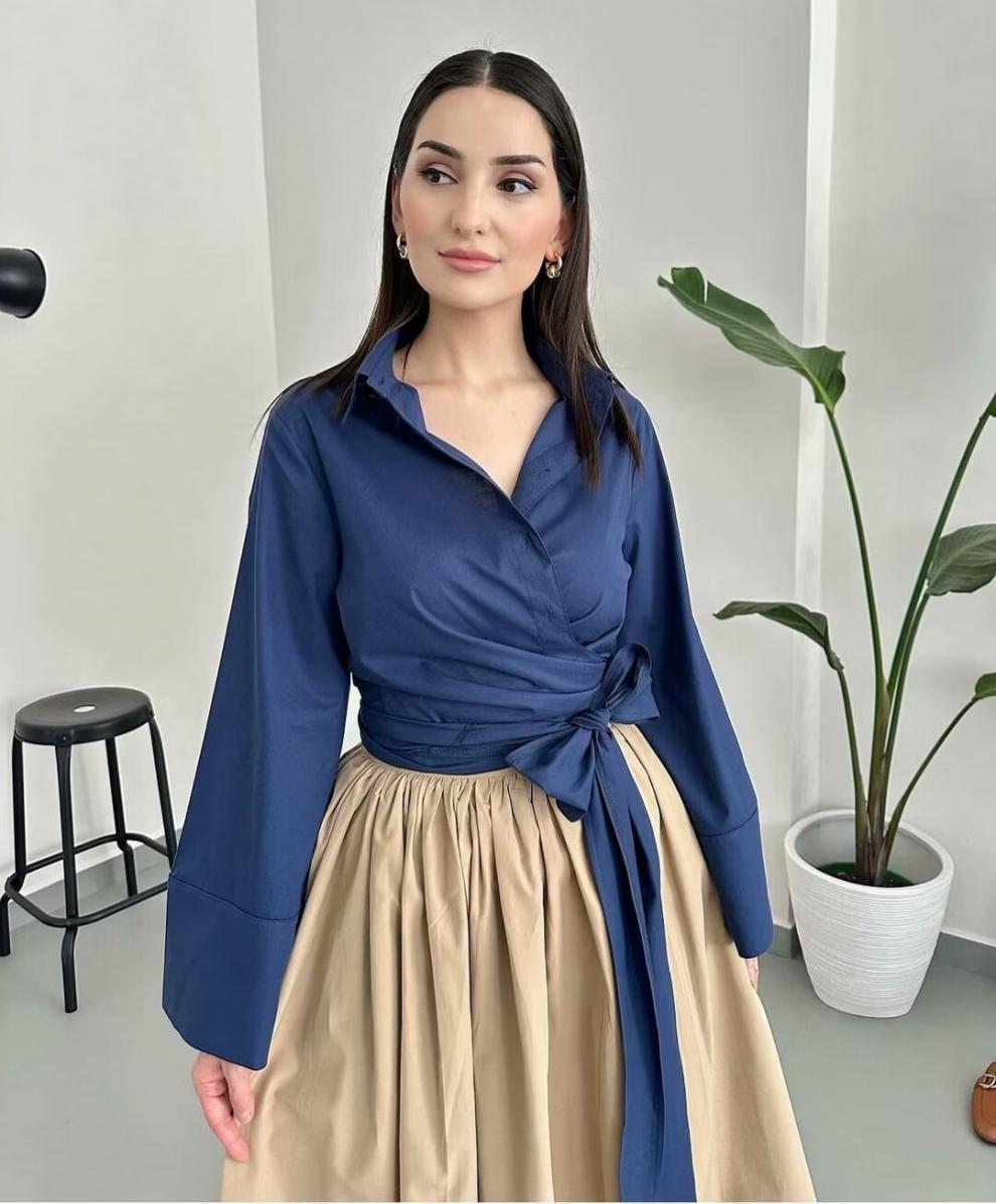 Ropa de mujer transfronteriza europea y americana otoño 2025 nuevo diseño nicho camisa de manga larga moda versátil camisa top