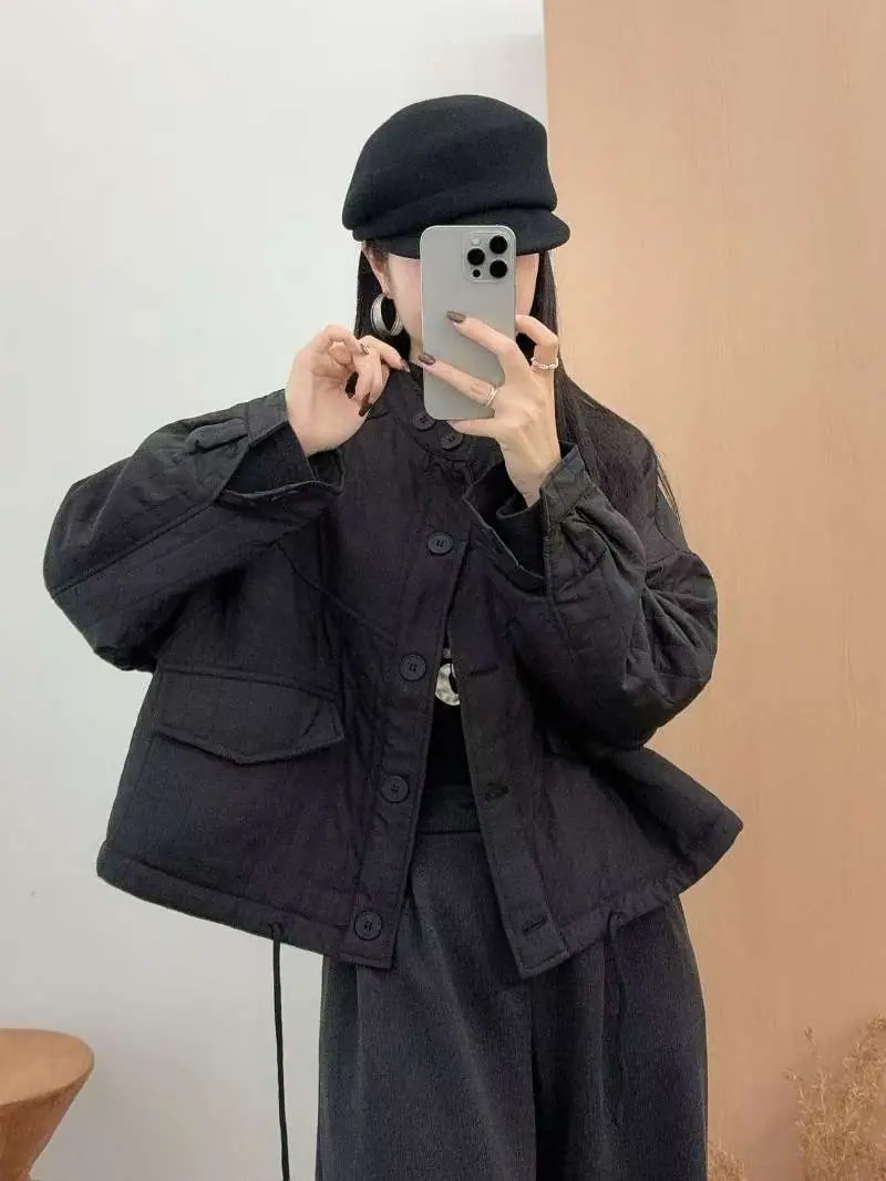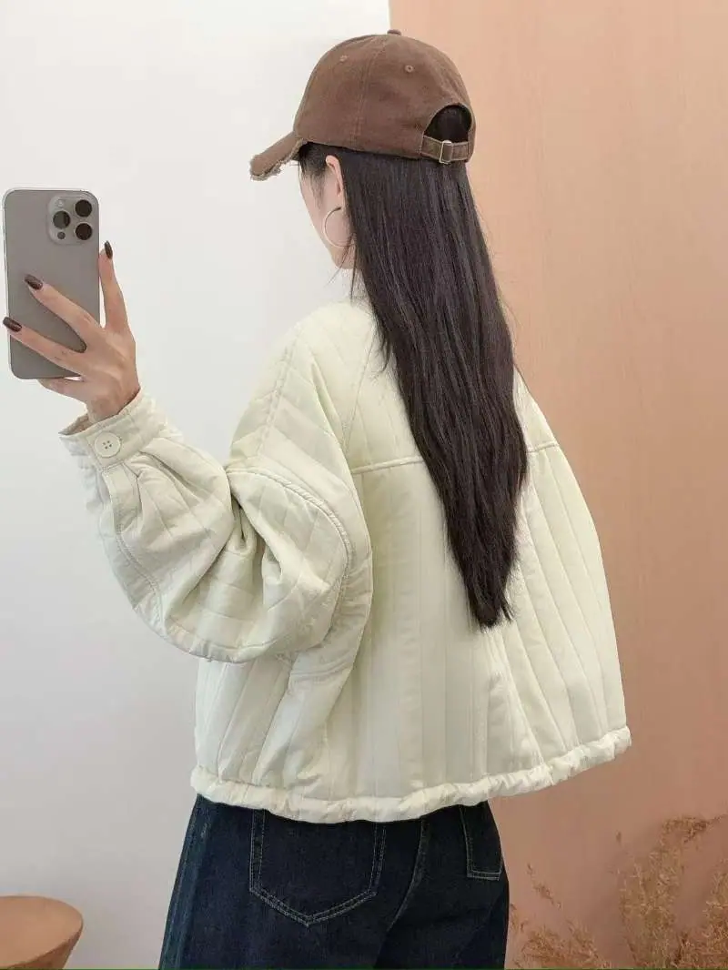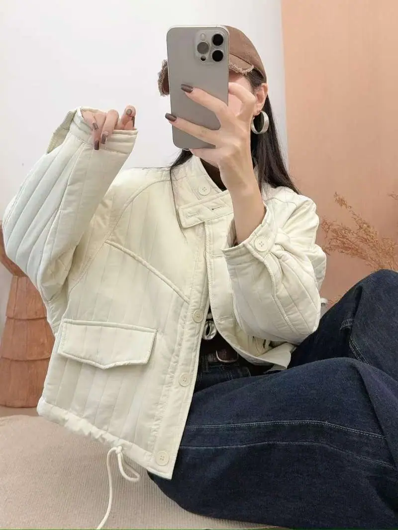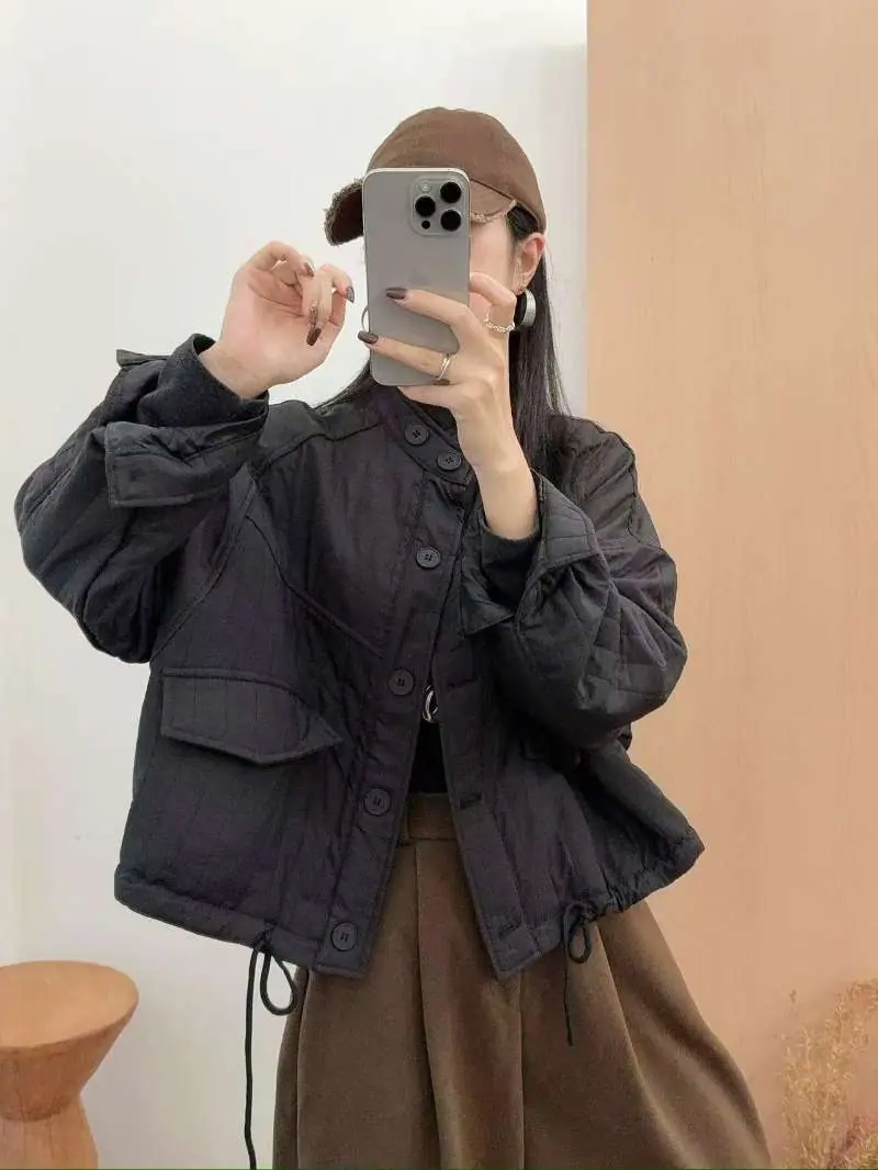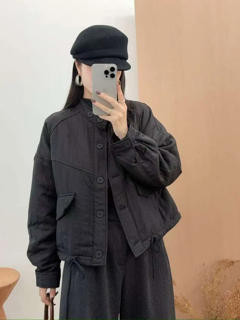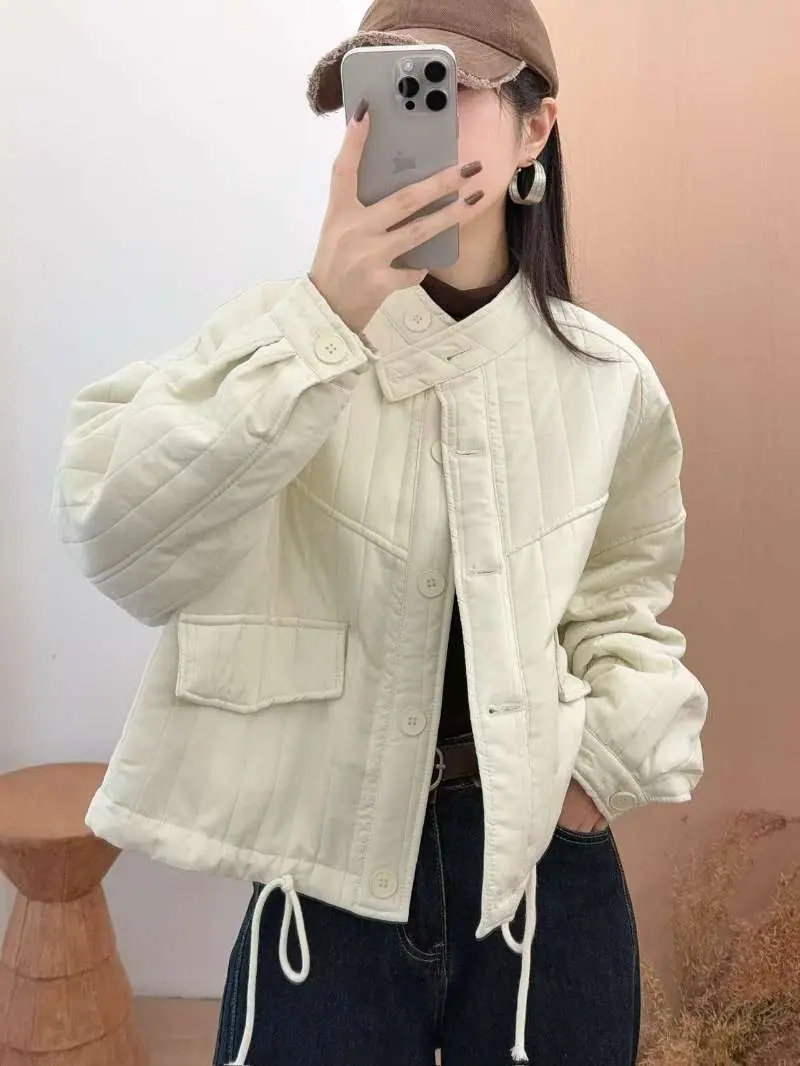 Chaqueta de trabajo acolchada de algodón de alta gama con cuello alto para mujer, nuevo estilo popular versátil suelta casual, otoño/invierno 2025