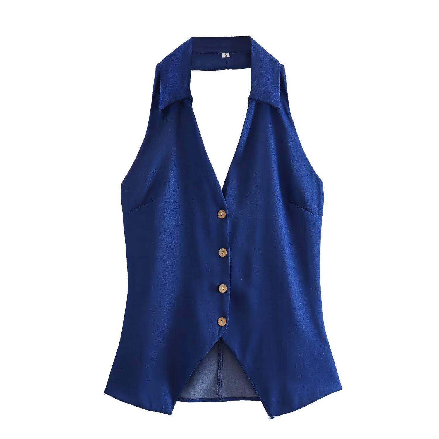 Compra Ropa de mujer de estilo europeo y americano de Comercio Exterior 2023 Verano nuevo top sexy sin mangas halter de un solo botón con espalda descubierta al por mayor al por mayor en Joom.pro