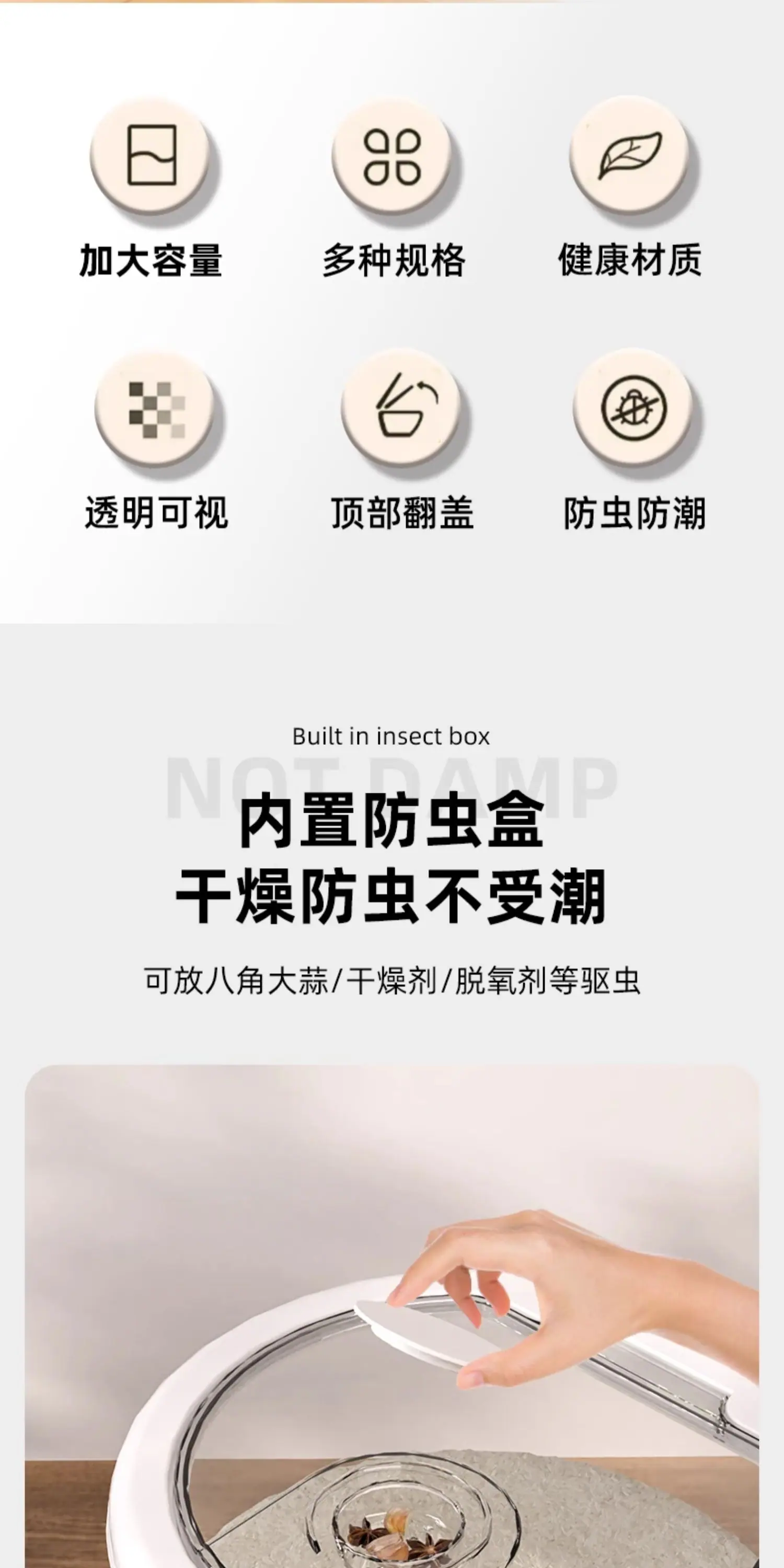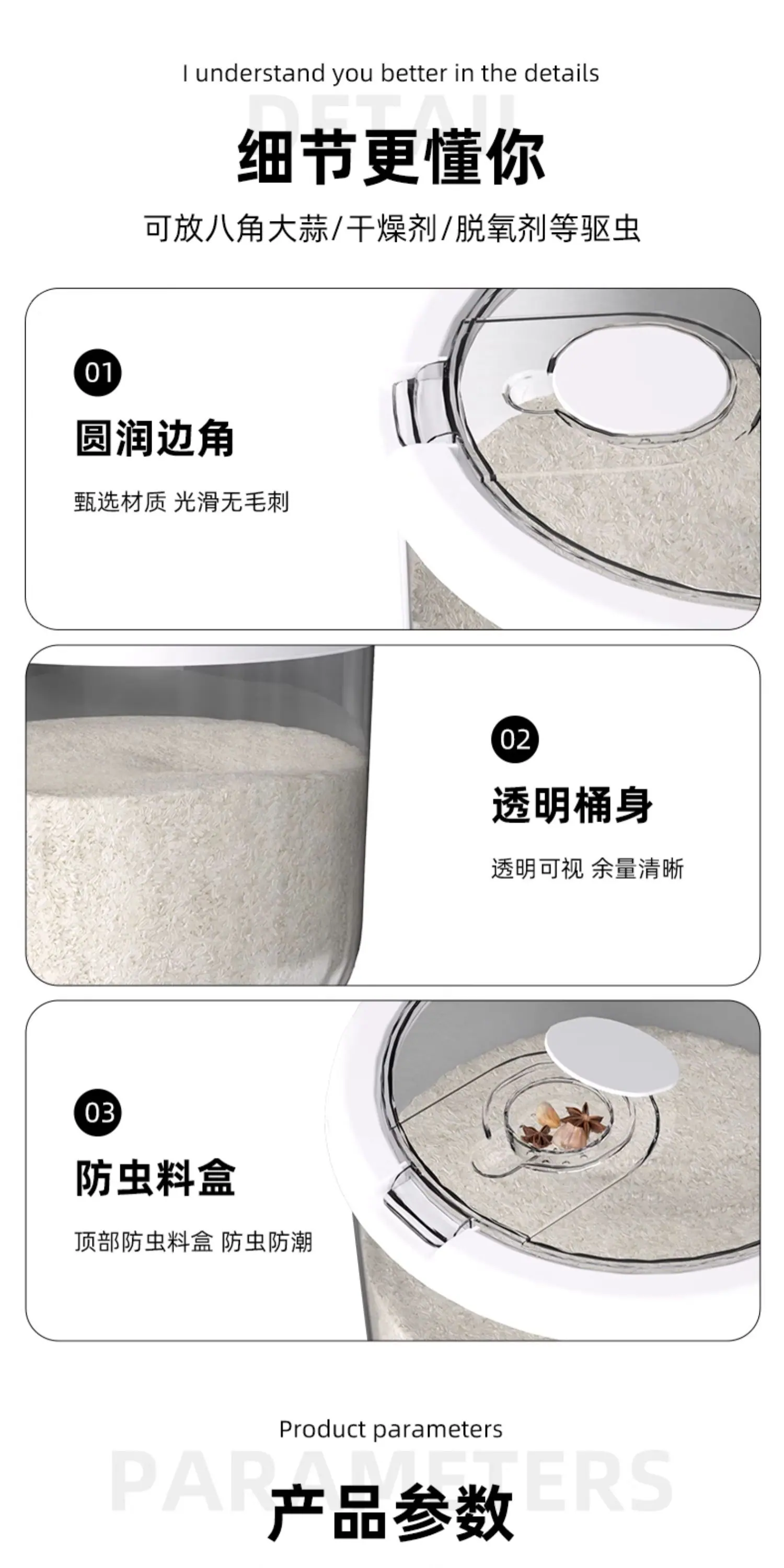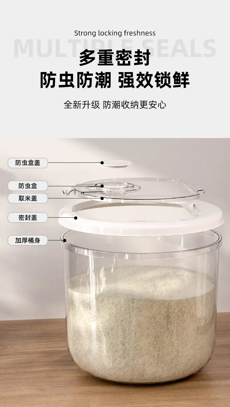 2025 Cubeta de Arroz Nueva para el Hogar Contenedor de Arroz de Grado Alimenticio Lata de Almacenamiento de Harina a Prueba de Insectos a Prueba de Humedad Cubeta con Sello Hermético Cubeta de Almacenamiento de Granos