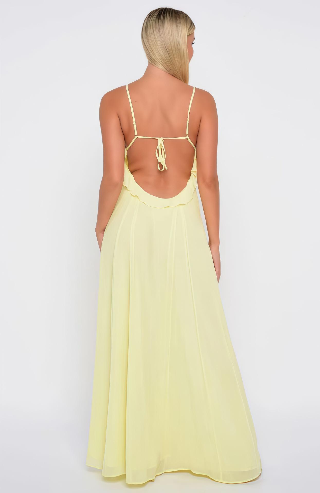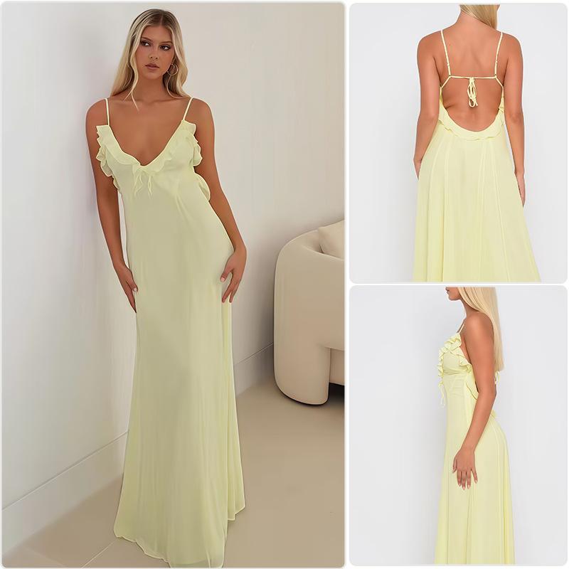Vestido Europeo y Americano de Color Sólido sin Mangas con Parche de Tirantes Espagueti para Mujer Otoño 2025 Nuevo Producto Diseño con Borde de Oreja Vestido Largo con Sentido