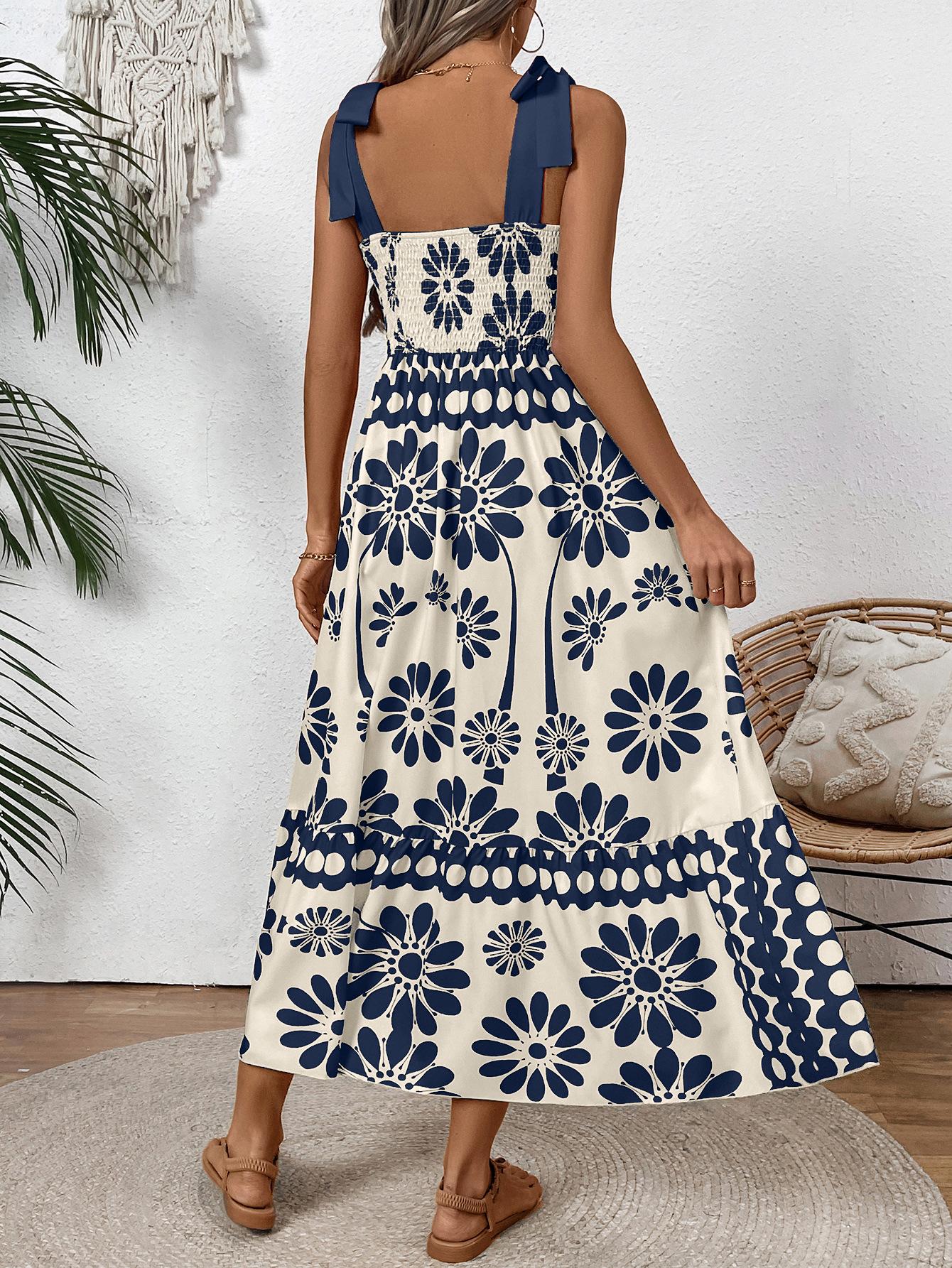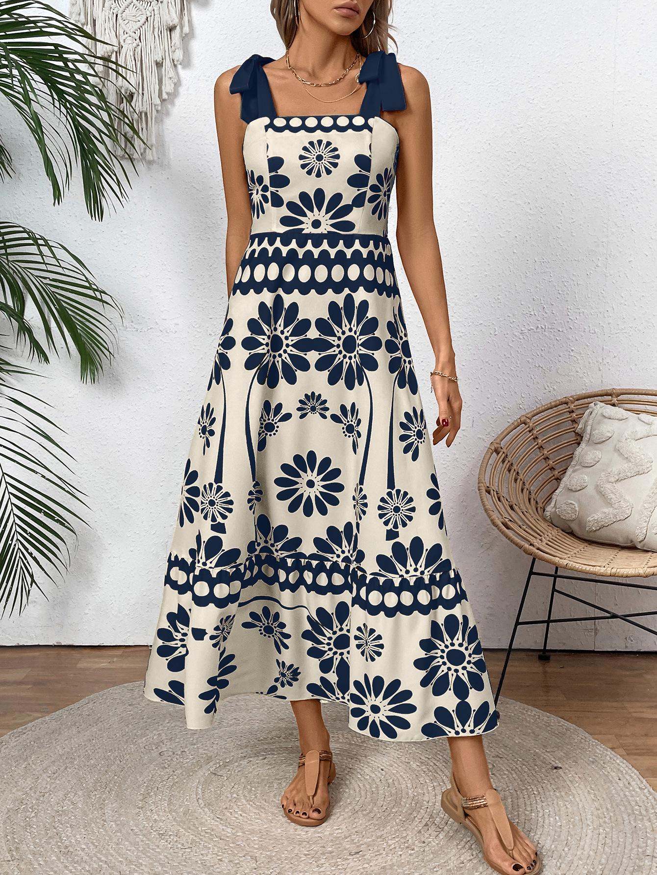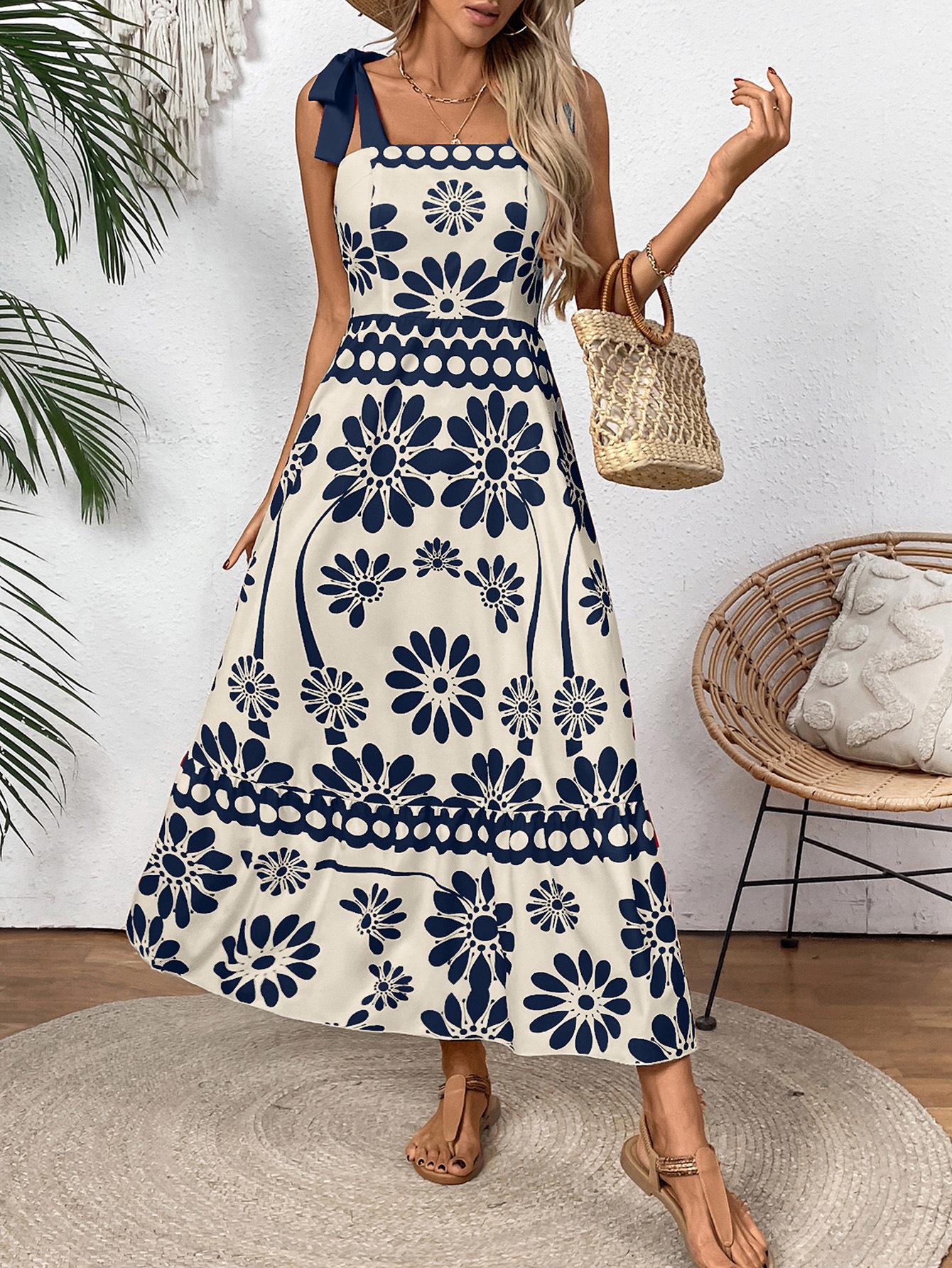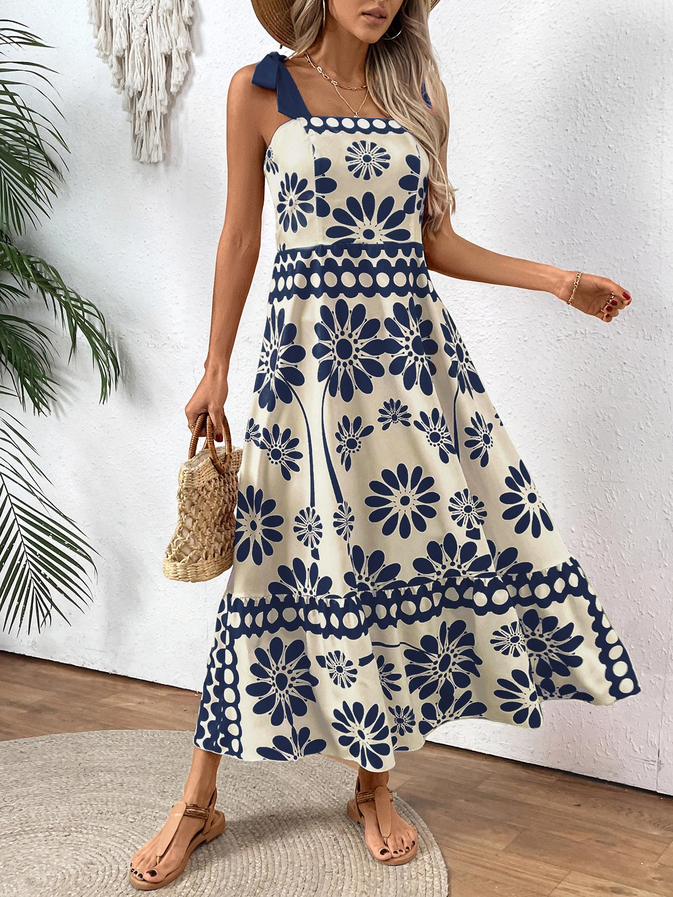 Vestido Transfronterizo Europeo y Americano para Mujer 2025 Vestido de Estilo Bohemio para Mujer Posicionamiento Tirante Floral para Hombro Vestido Largo para Mujer