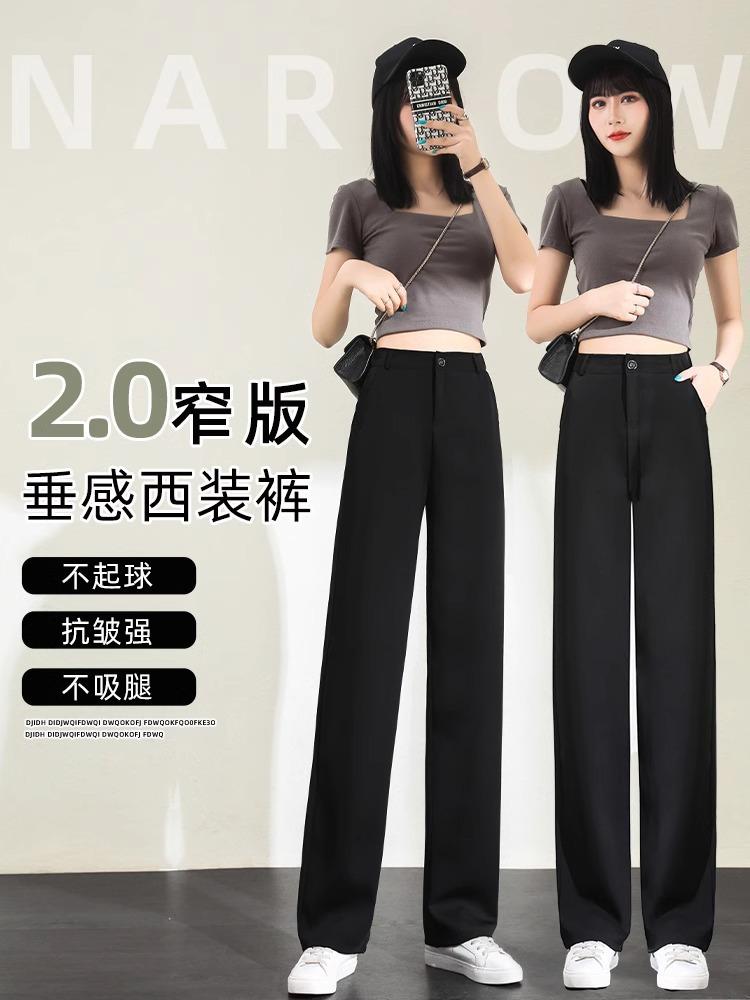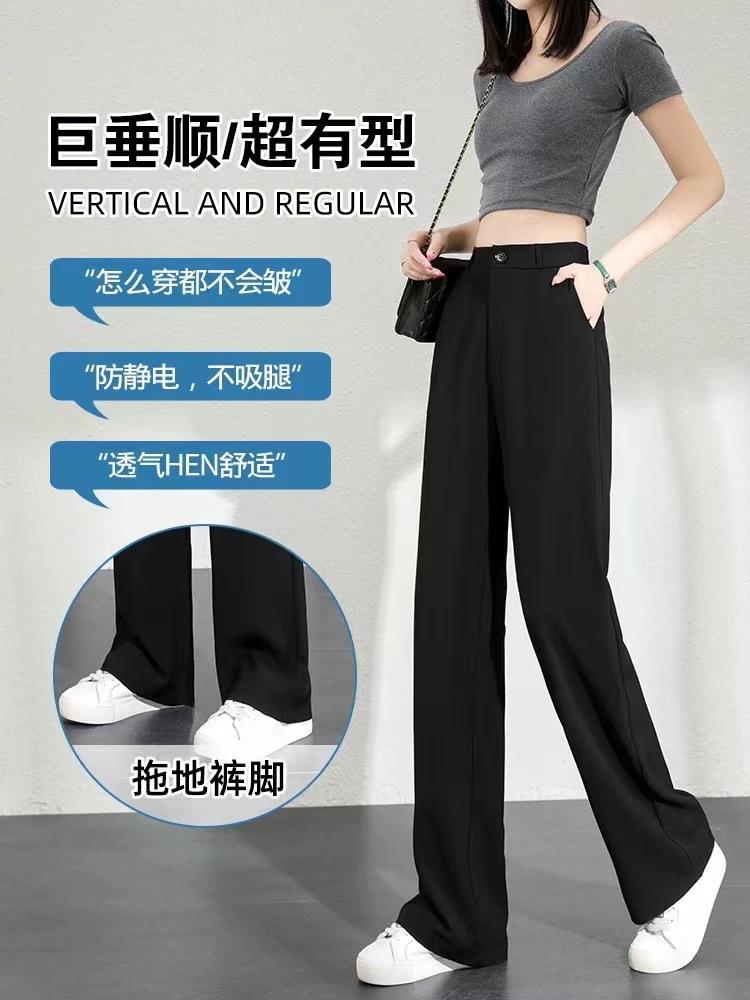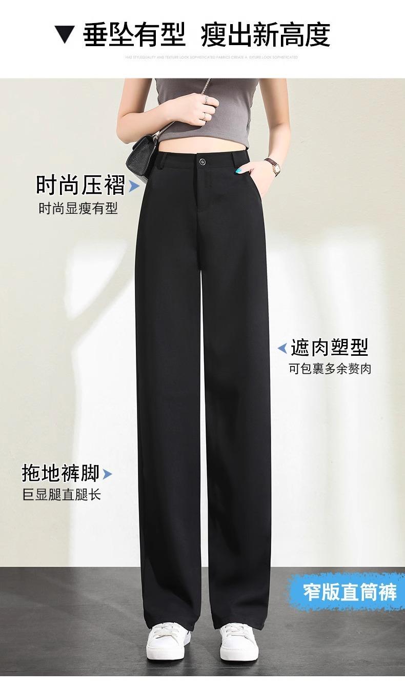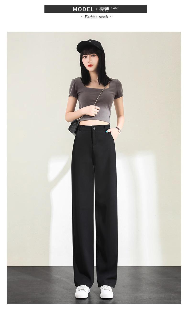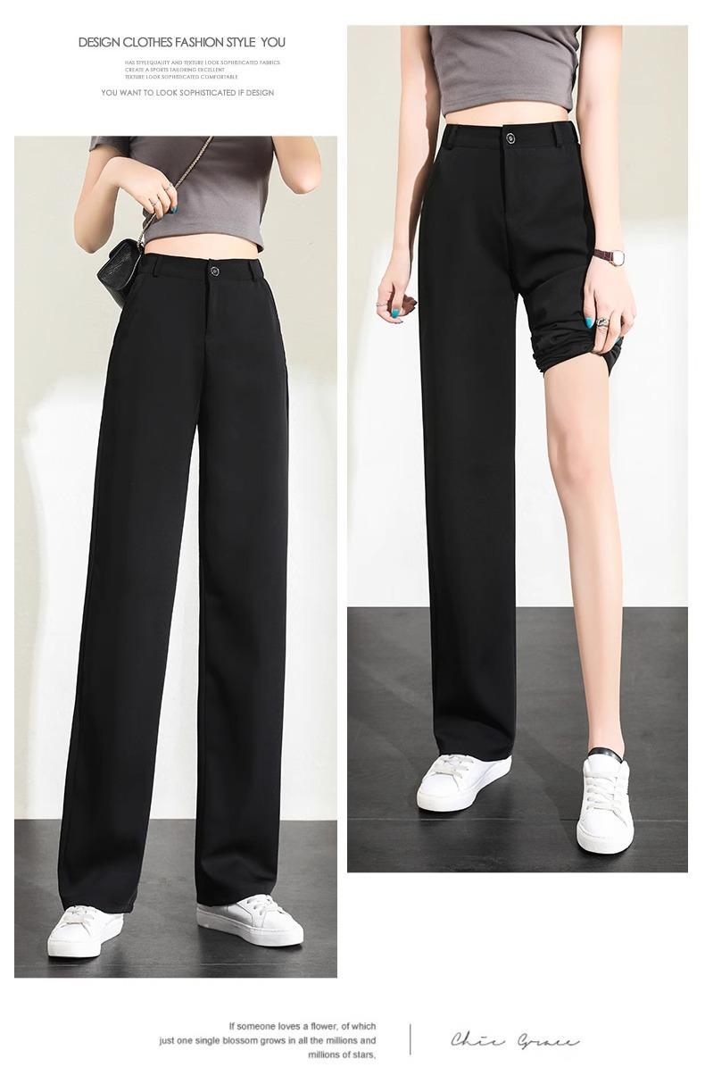 Pantalones de Pierna Estrecha Drapeados de Seda de Hielo para Mujer Primavera Verano Negro Pantalón de Traje Cintura Alta Adelgazantes Sueltos Casuales de Pierna Recta Pantalones Largos Delgados
