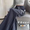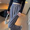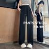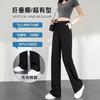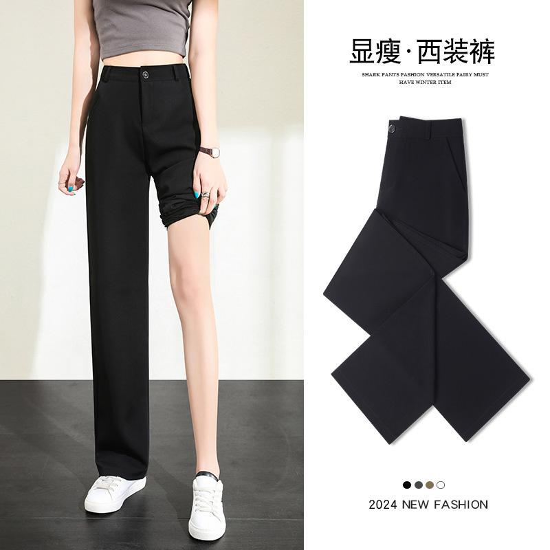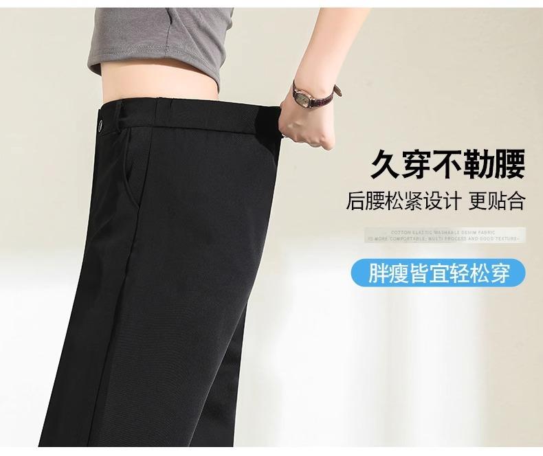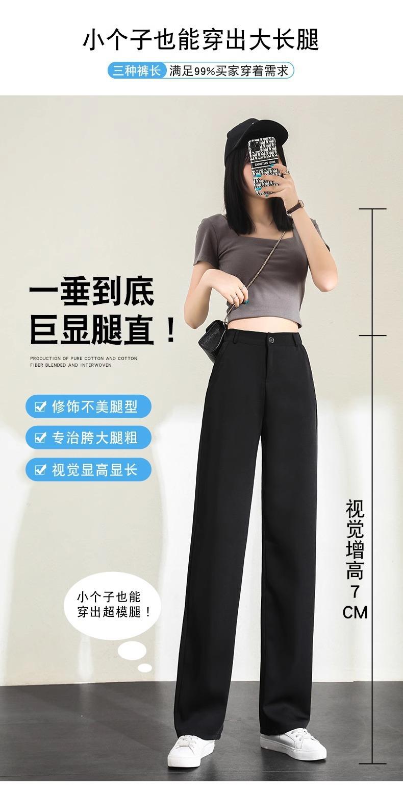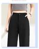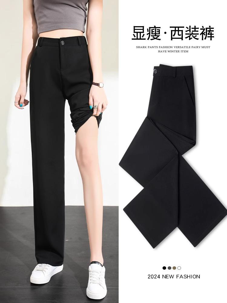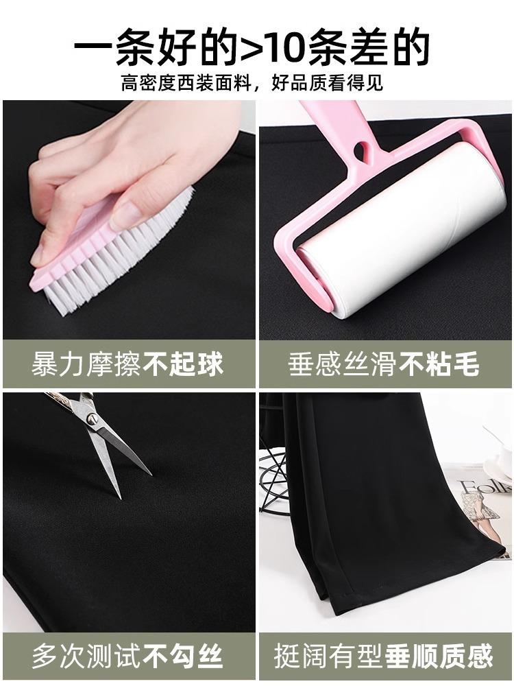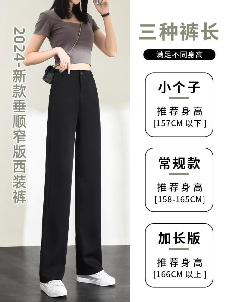 Pantalones de Pierna Estrecha Drapeados de Seda de Hielo para Mujer Primavera Verano Negro Pantalón de Traje Cintura Alta Adelgazantes Sueltos Casuales de Pierna Recta Pantalones Largos Delgados