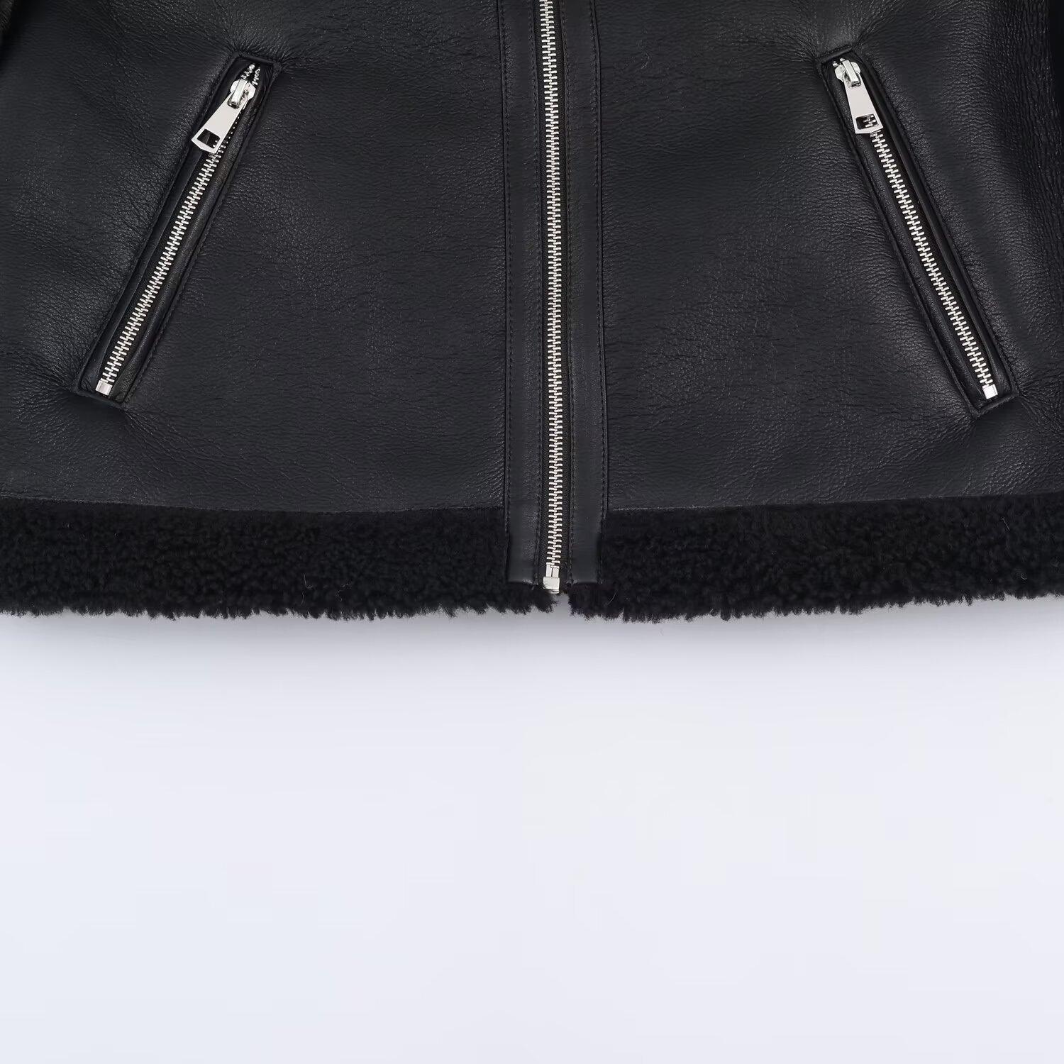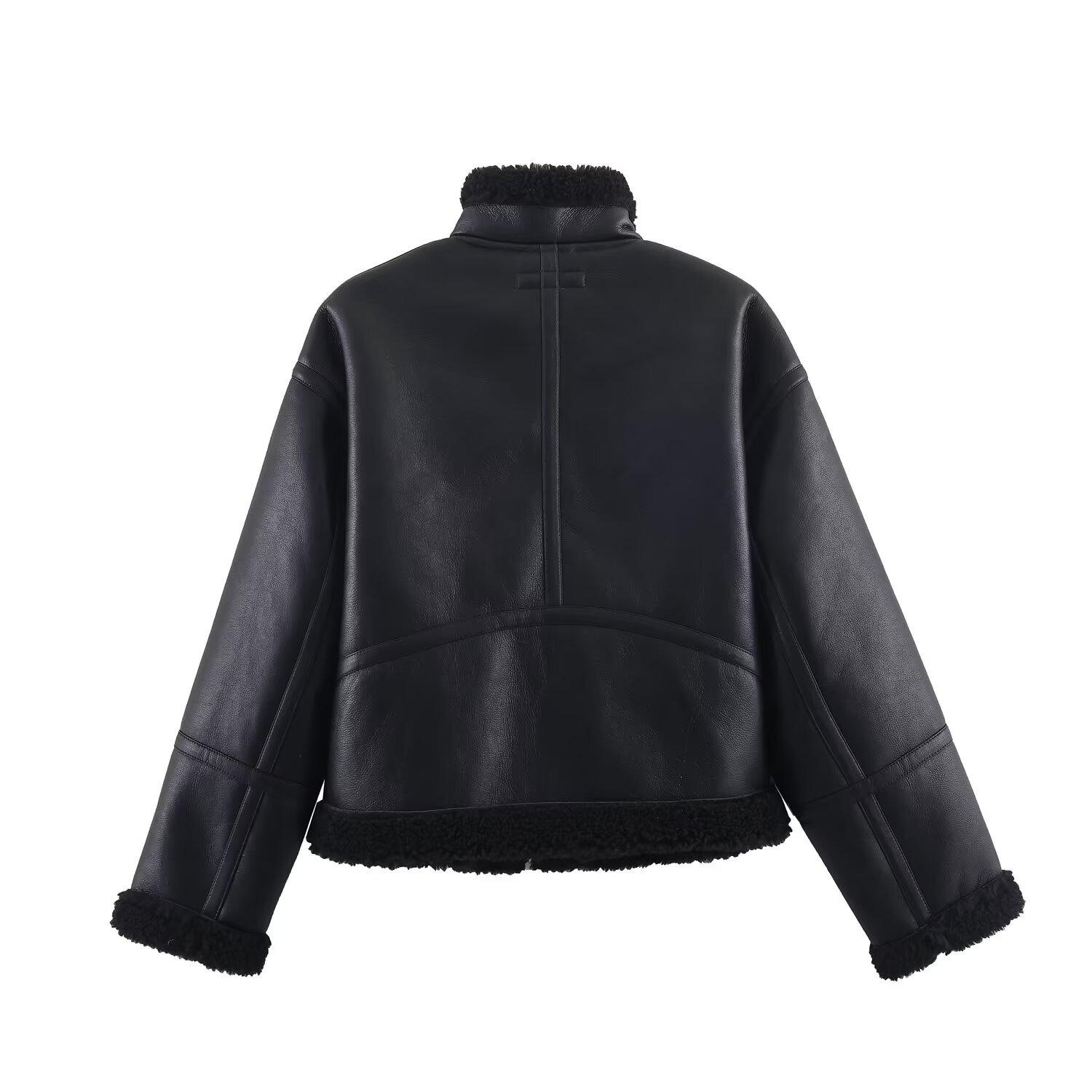Ropa de Mujer de Comercio Exterior Transfronterizo Otoño/Invierno 2025 Estilo Europeo y Americano Cuello Alto Manga Larga Chaqueta Reversible de PU Abrigo Tipo Uniforme de Béisbol para Mujer