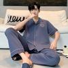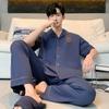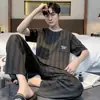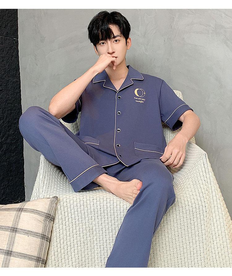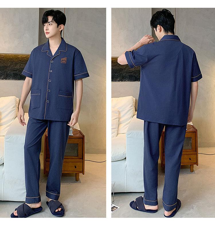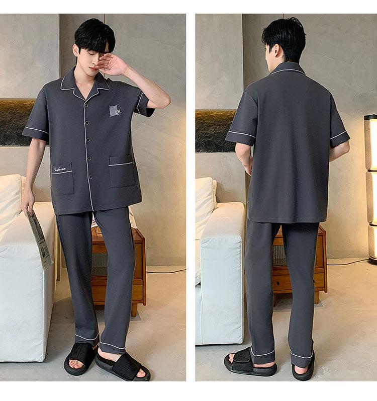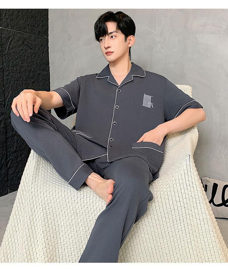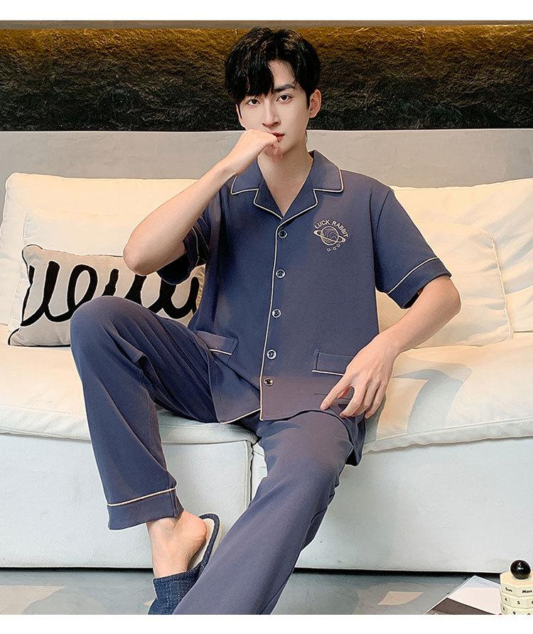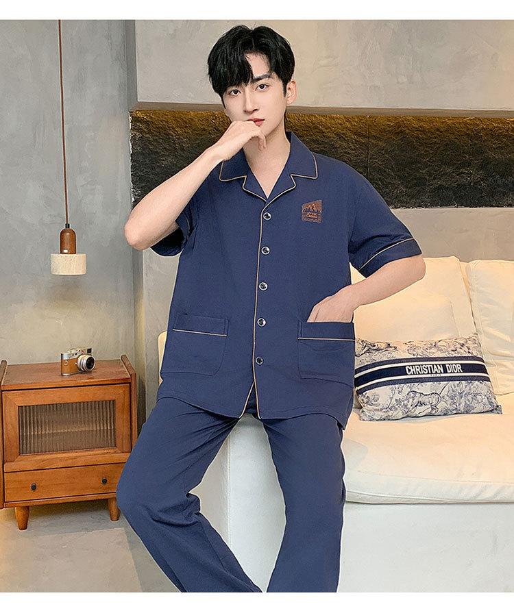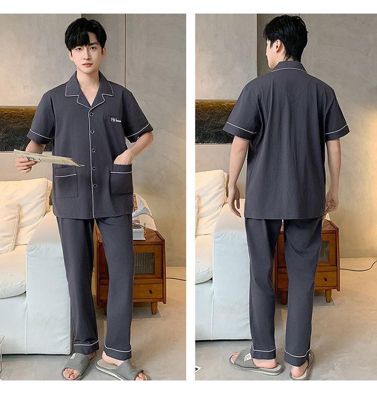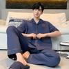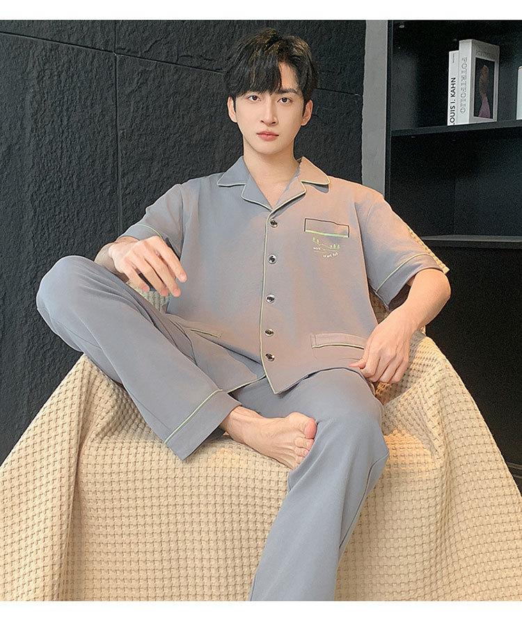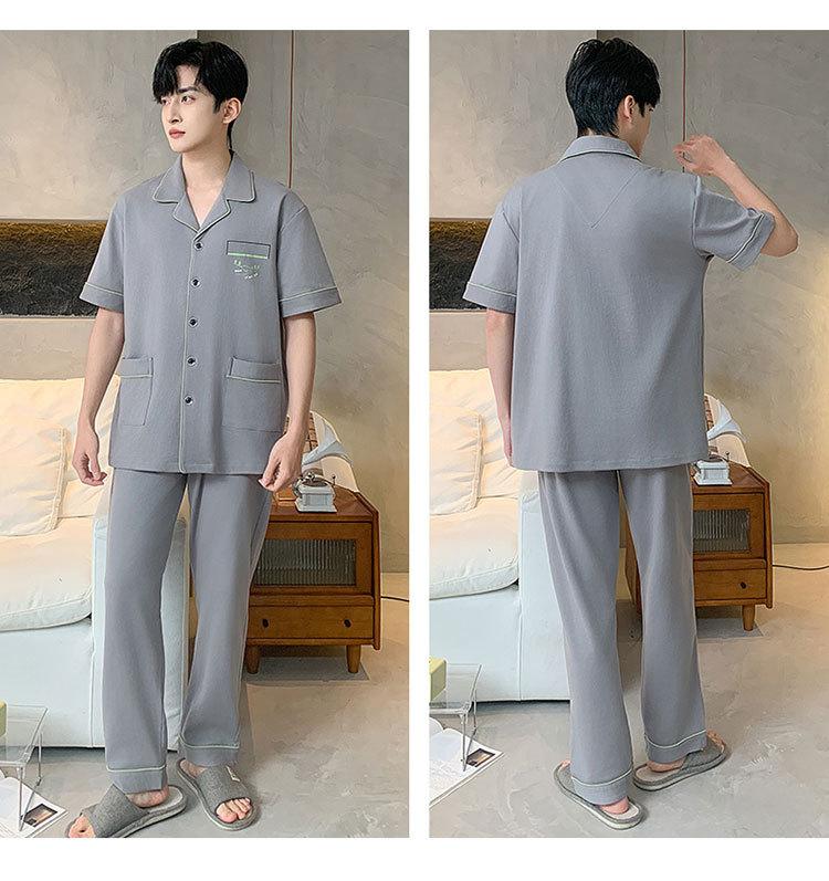 Pijamas de Primavera y Verano 100% Algodón para Hombre, Algodón Puro, Manga Corta, Pantalones, Holgados, Talla Extra, Traje de Ropa de Casa de Verano para Hombre