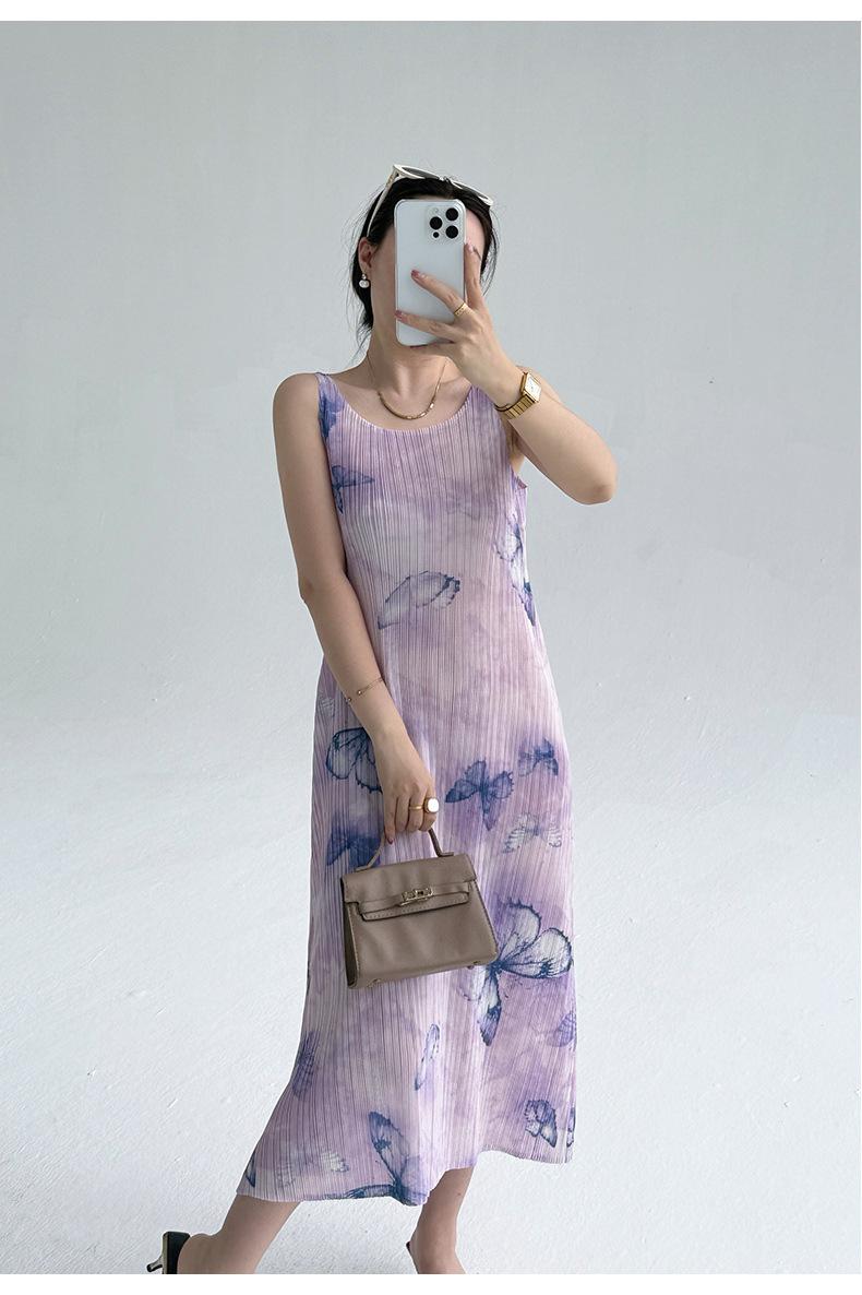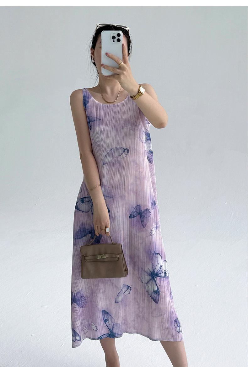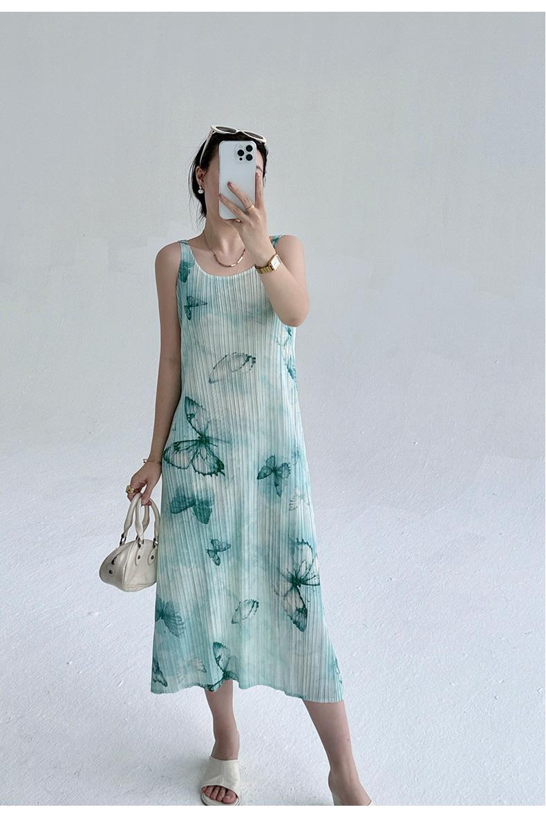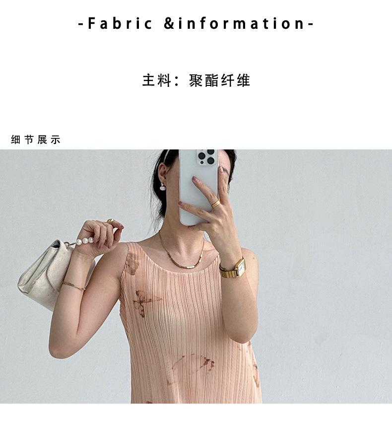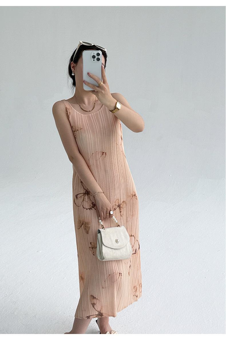 Verano 2025 Nuevo Miyake Vestido de Alta Gama Degradado Cuello Redondo Sin Mangas Nicho Francés Entallado con Pliegues Mujer