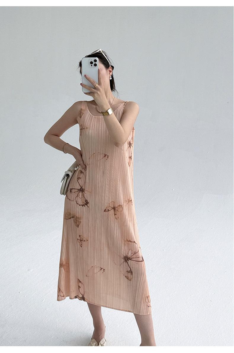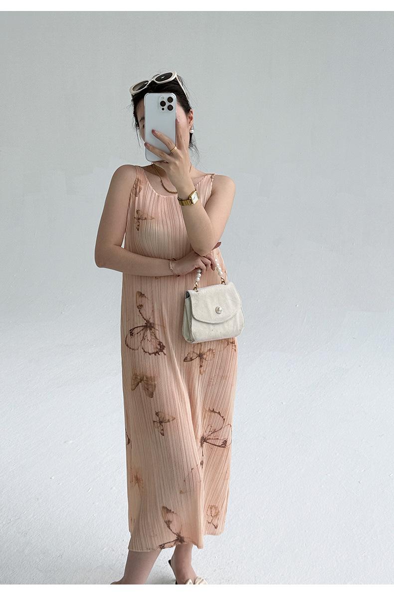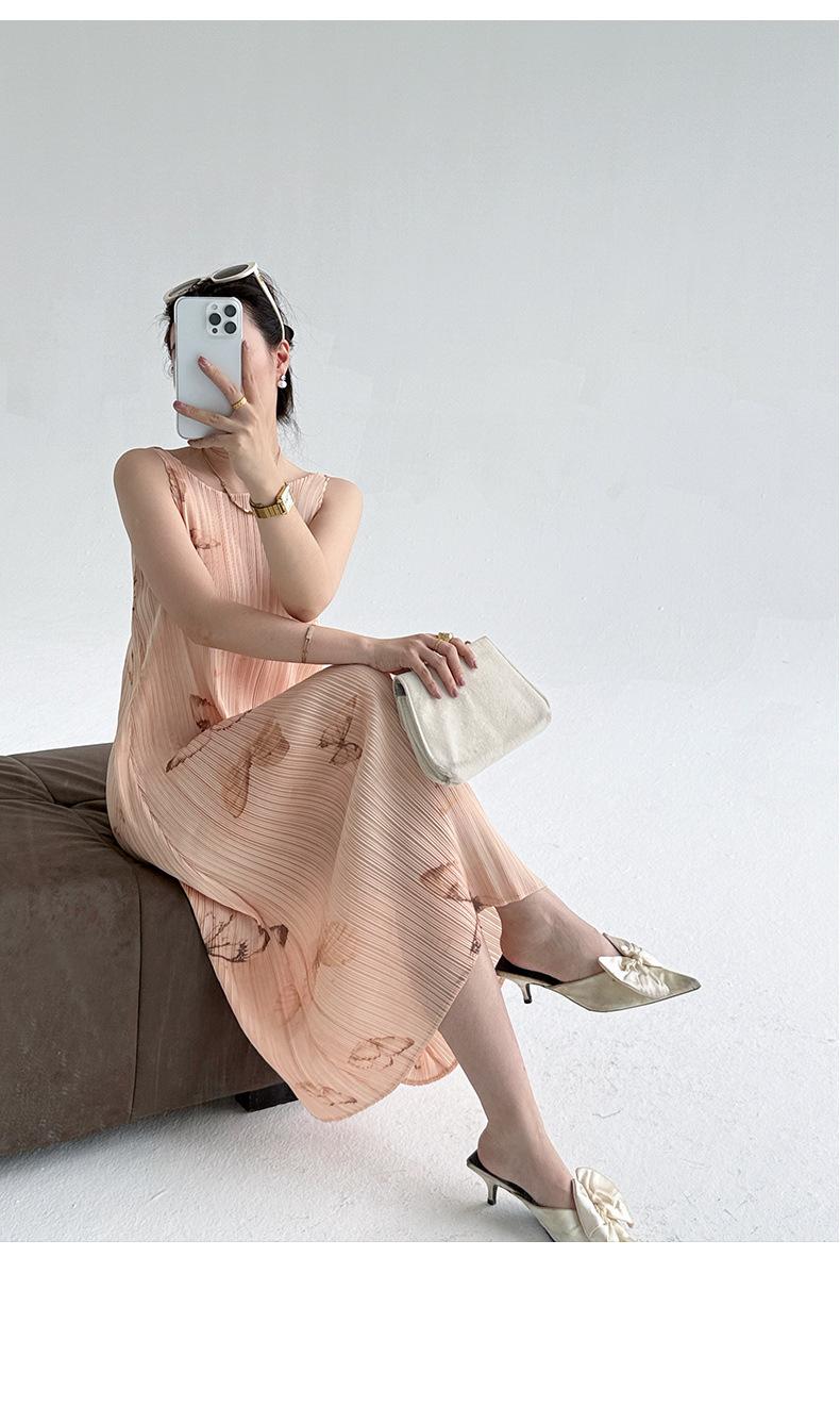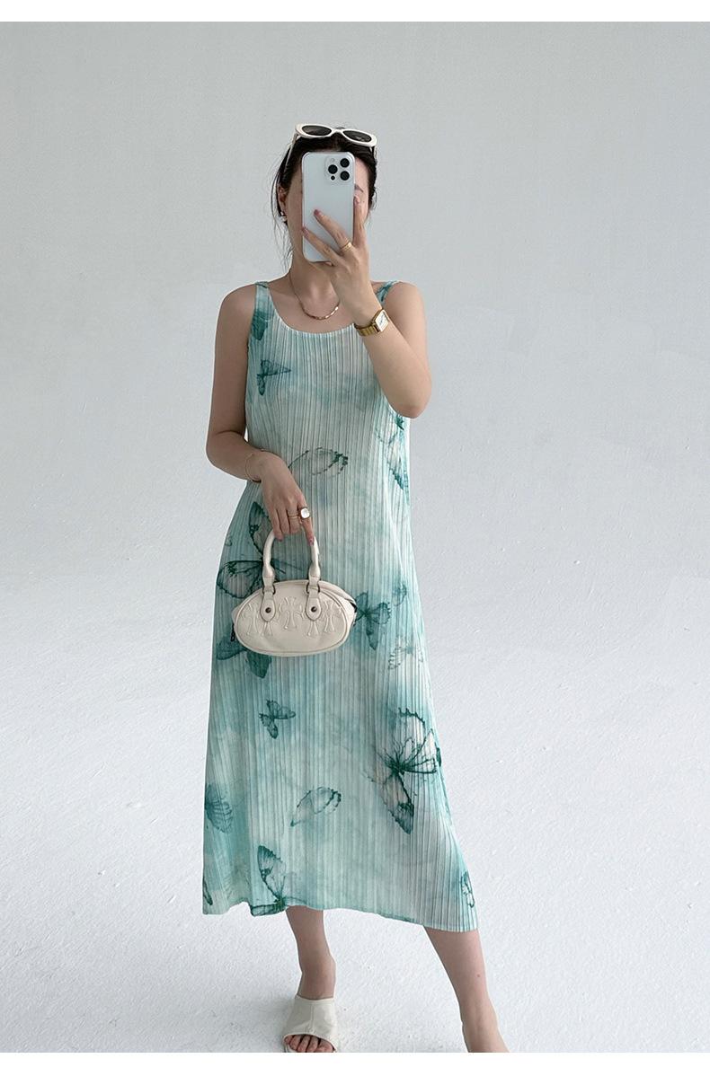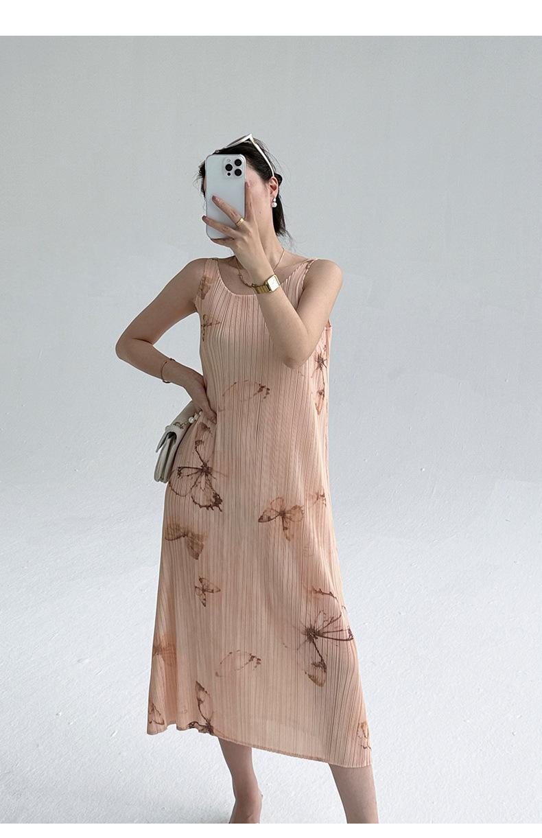 Verano 2025 Nuevo Miyake Vestido de Alta Gama Degradado Cuello Redondo Sin Mangas Nicho Francés Entallado con Pliegues Mujer