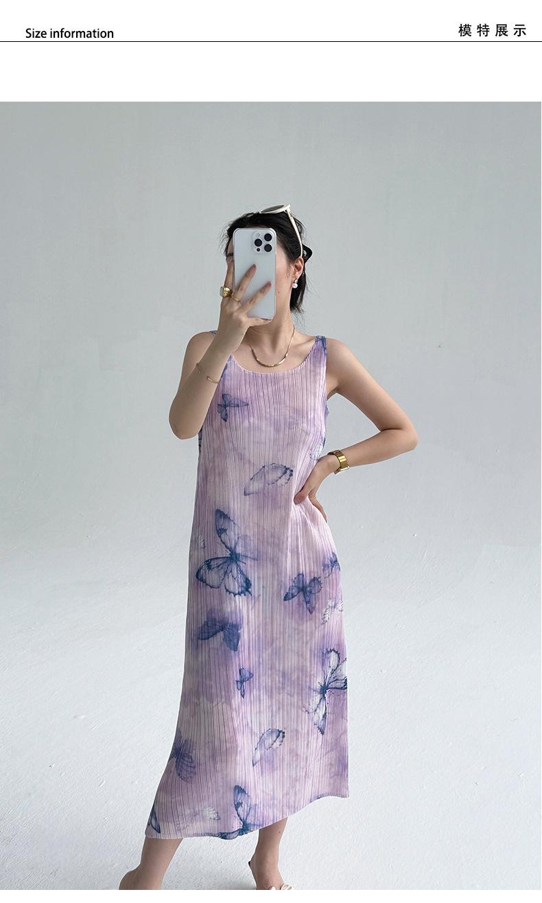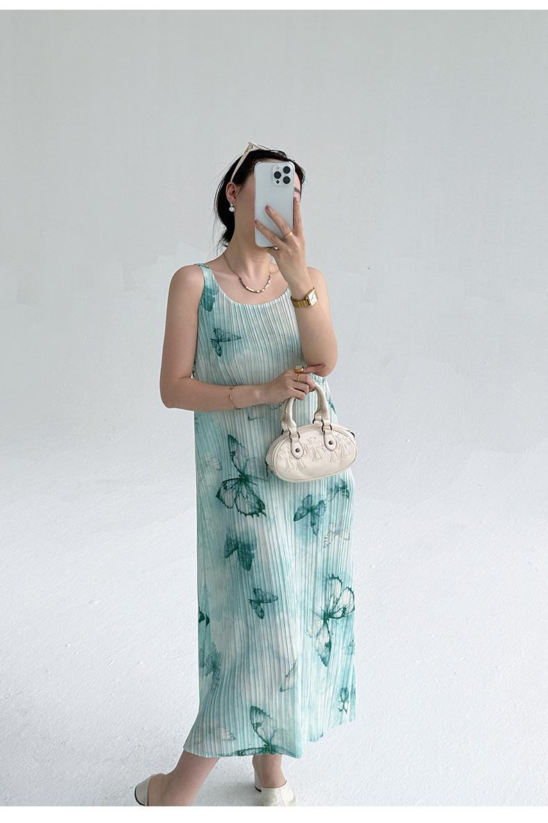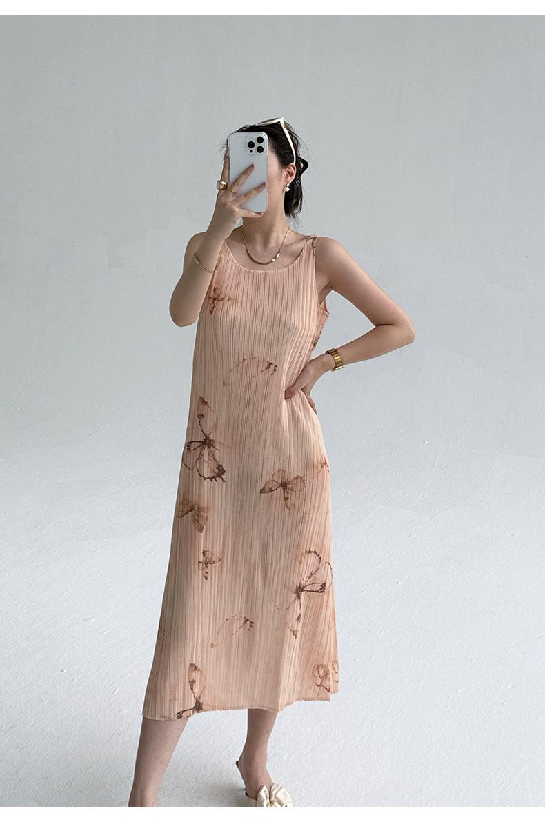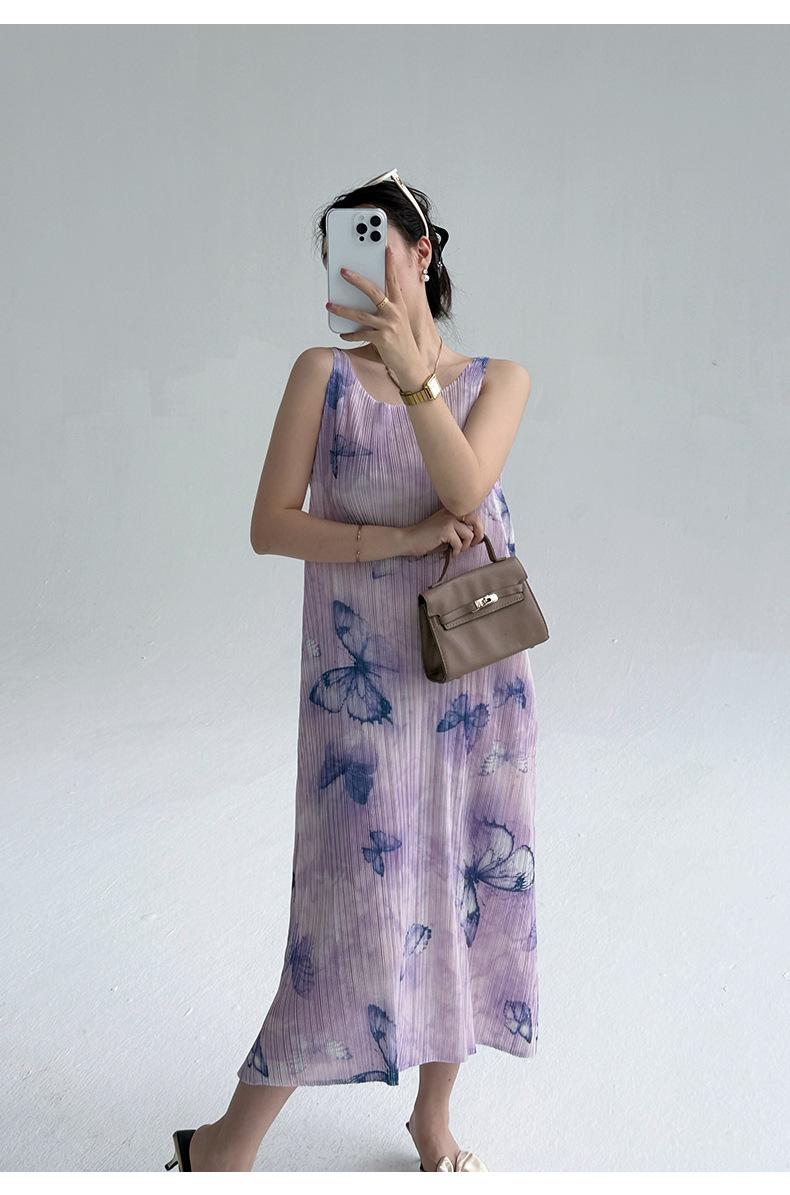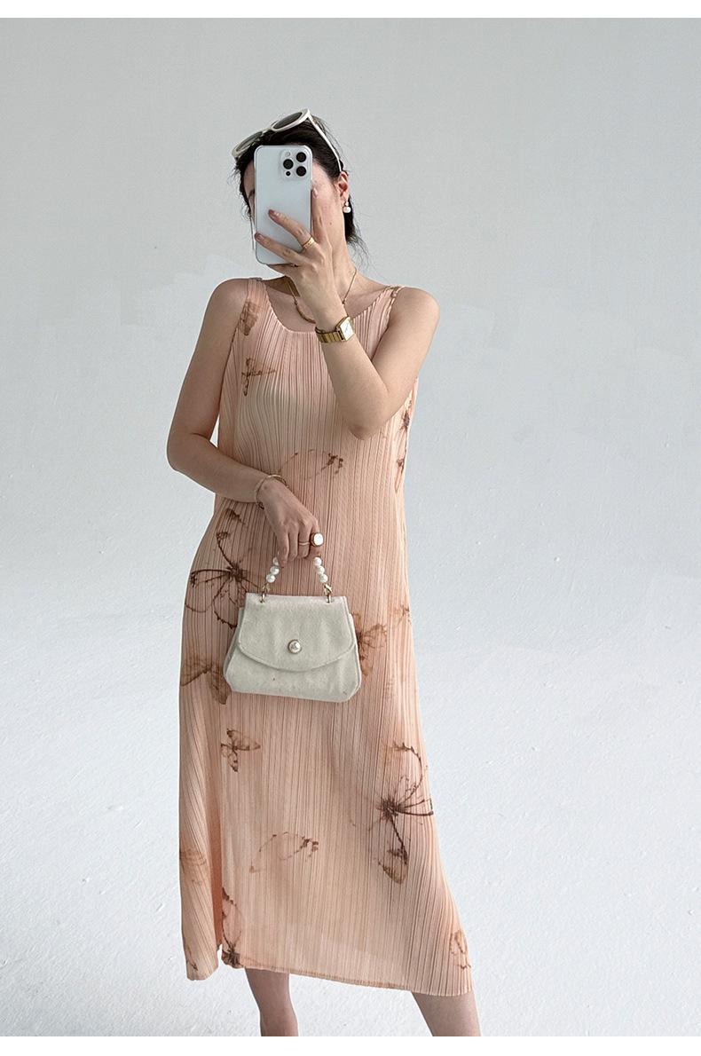 Verano 2025 Nuevo Miyake Vestido de Alta Gama Degradado Cuello Redondo Sin Mangas Nicho Francés Entallado con Pliegues Mujer