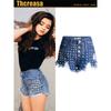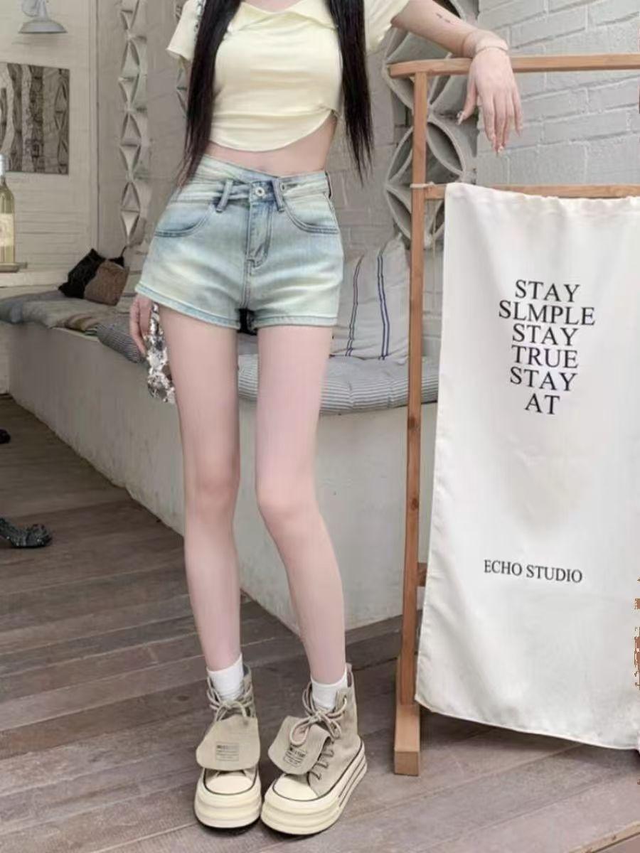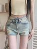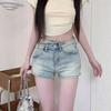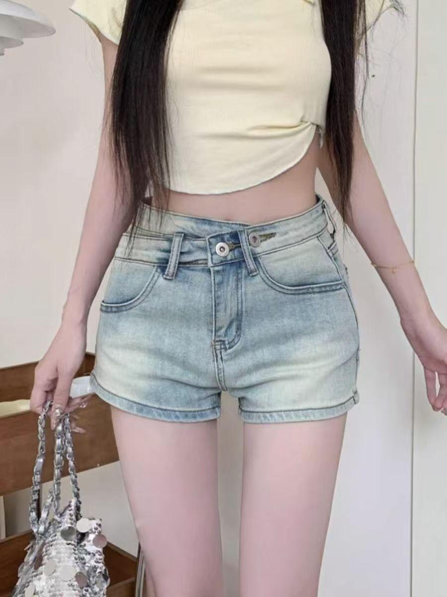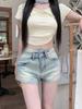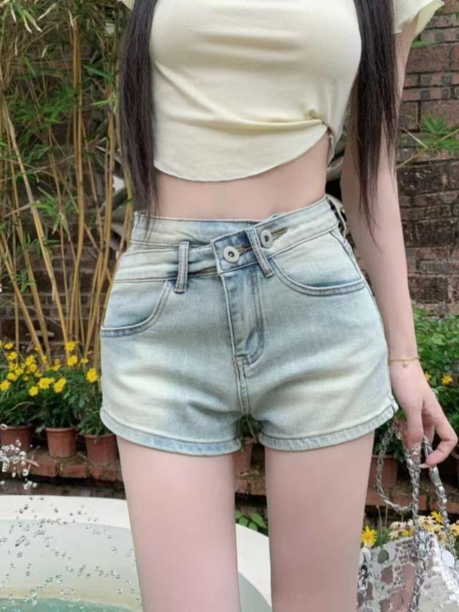 Shorts de mezclilla lavados y desgastados para mujer, pantalones de verano retro de talla grande, pantalones rectos de cintura alta, pantalones cortos sexys ajustados casuales
