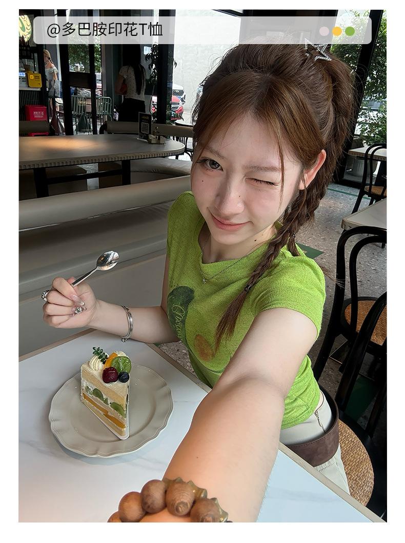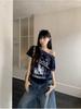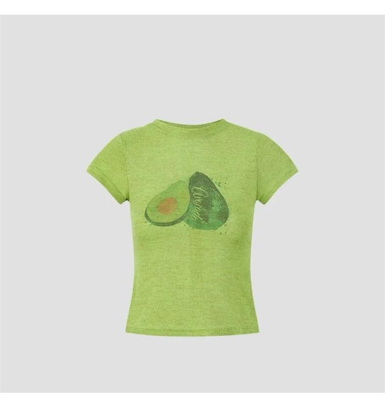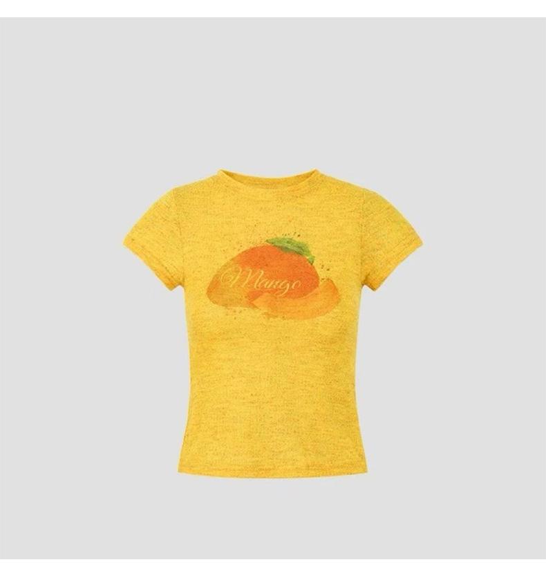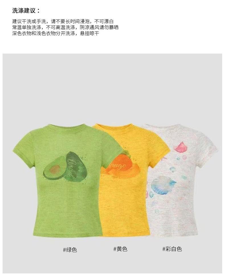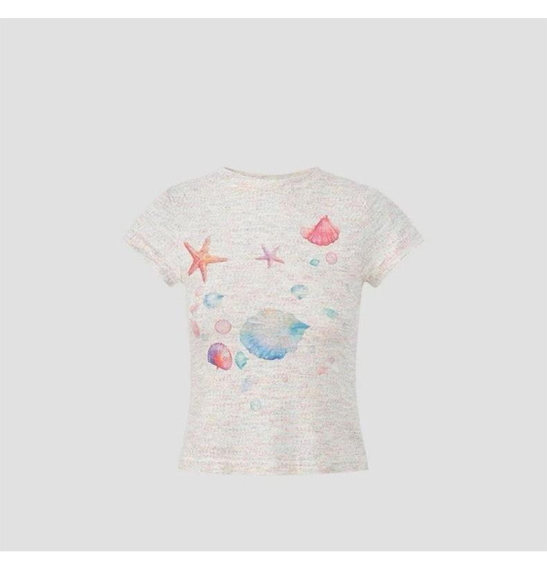 Camiseta Coreana Chic Única Estampada Cuello Redondo Hombro Regular Manga Corta para Mujer Verano Dopamina Ajuste Slim Versátil Top