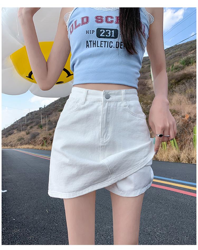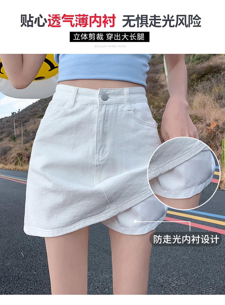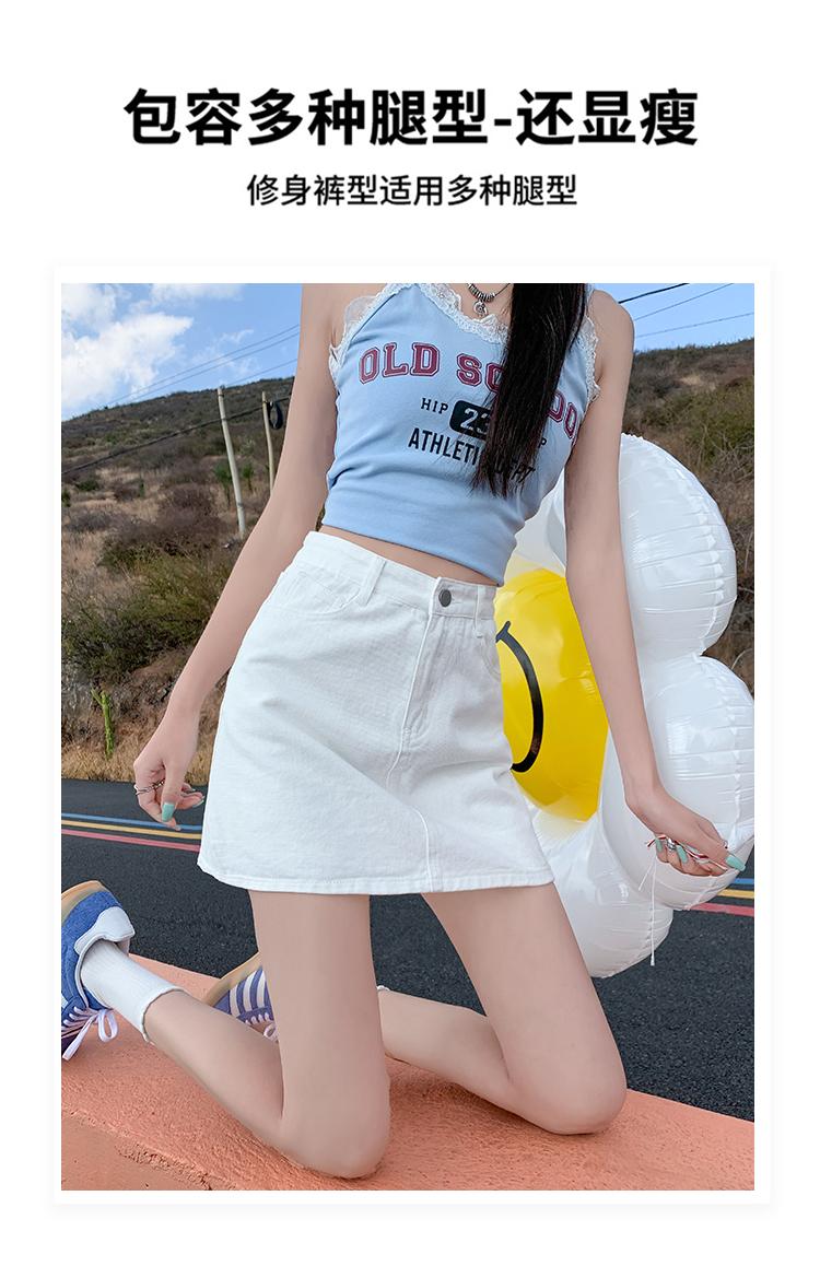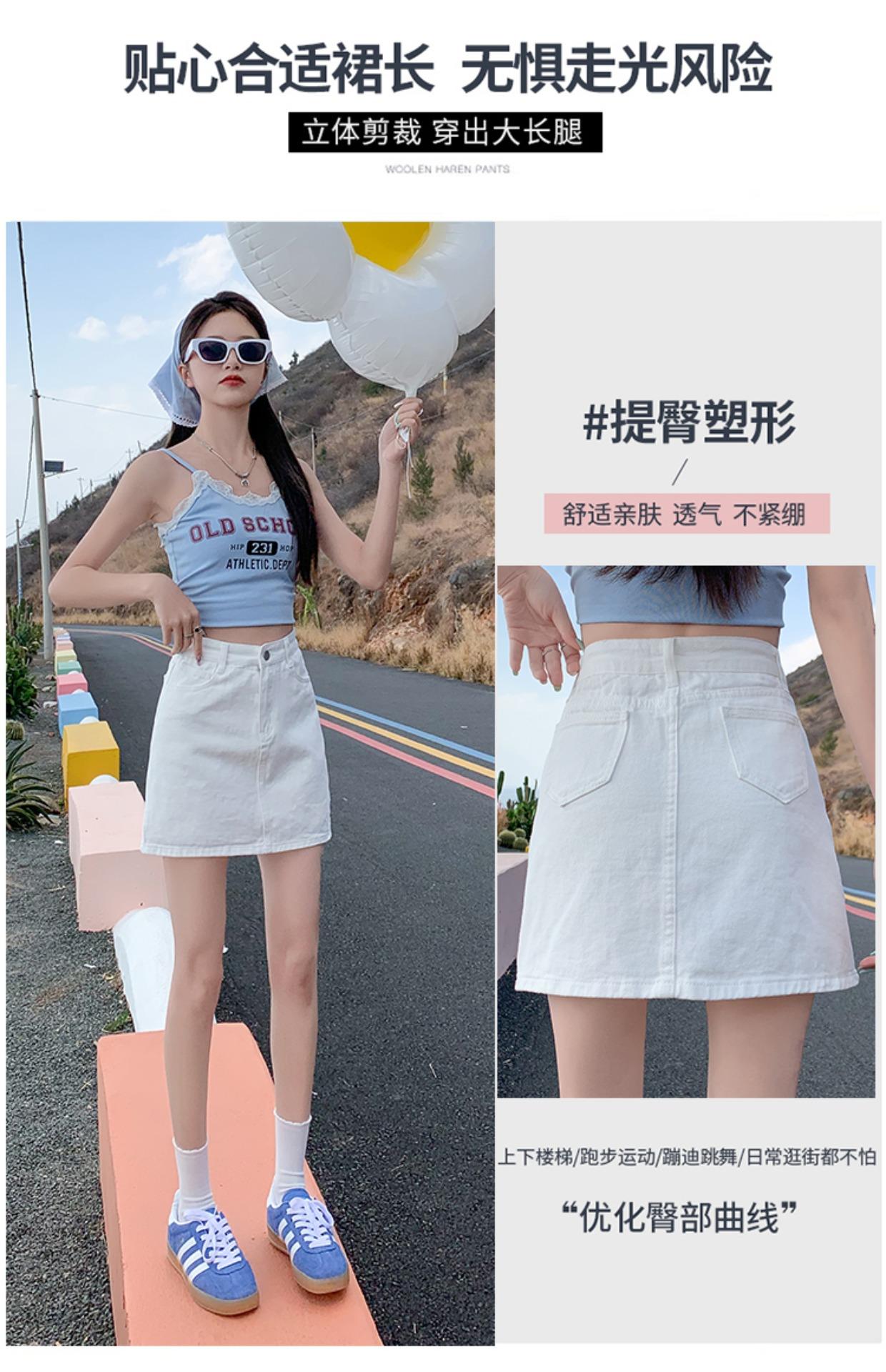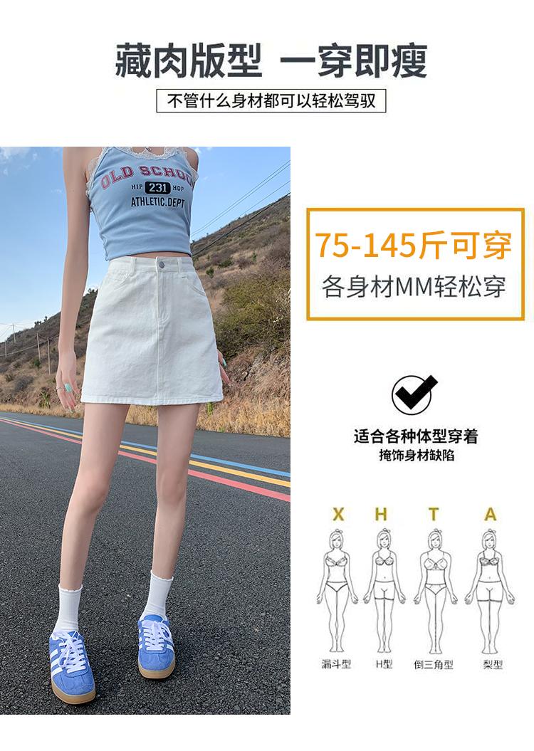 Falda Corta de Mezclilla Blanca Falda Corta para Mujer Verano 2025 Nueva Cintura Alta Look Adelgazante Antiexposición Falda Línea A Pantalón Cubre Caderas