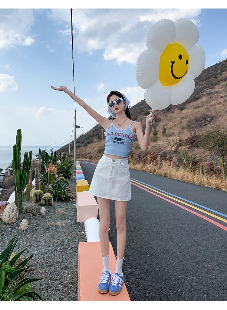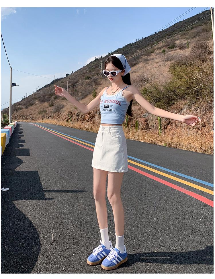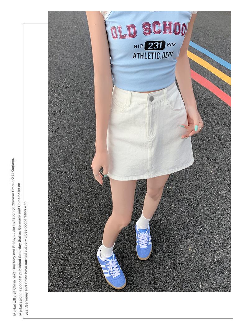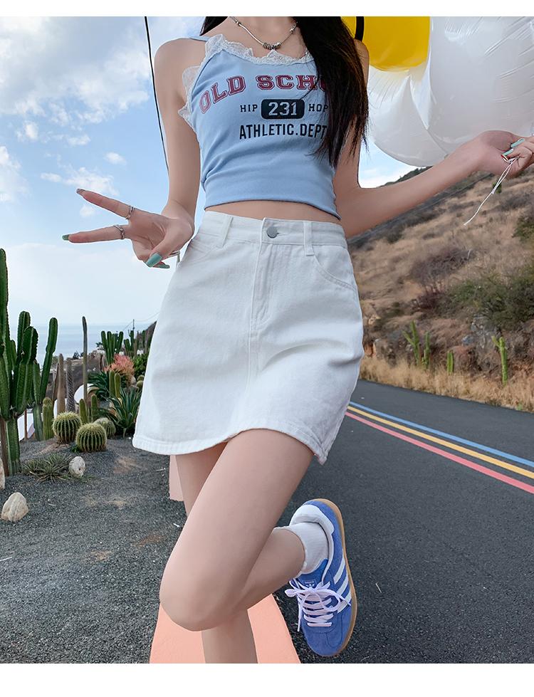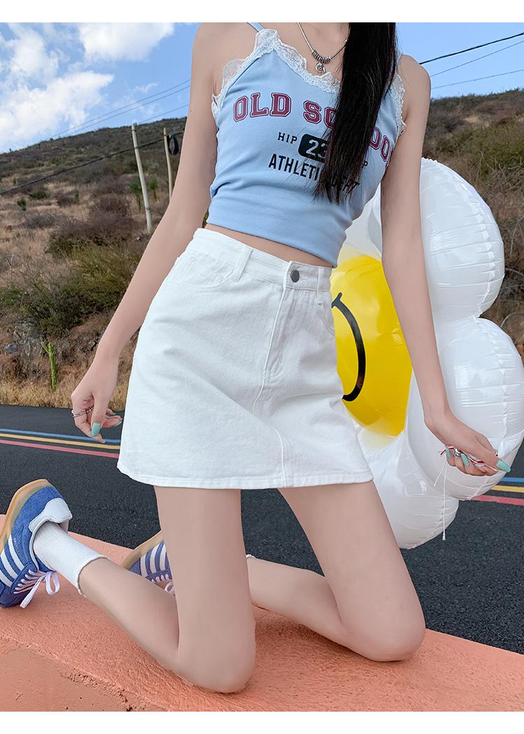 Falda Corta de Mezclilla Blanca Falda Corta para Mujer Verano 2025 Nueva Cintura Alta Look Adelgazante Antiexposición Falda Línea A Pantalón Cubre Caderas