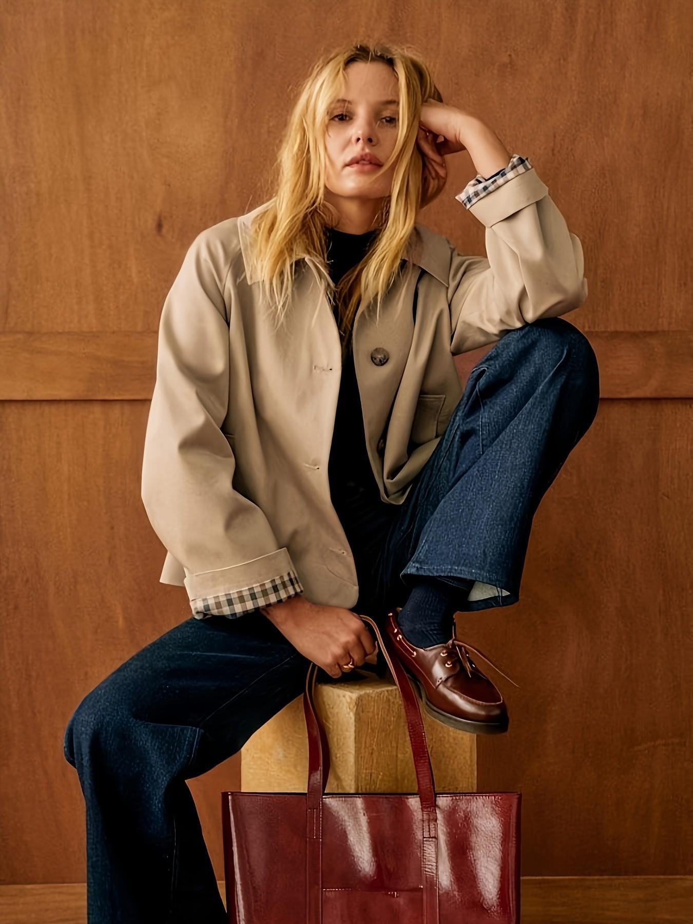 Europeo y Americano Transfronterizo Amazon para Mujer 2025 Casual Sencillo Abrigo Chaqueta Manga Larga Un Botón Otoño e Invierno Ropa Exterior