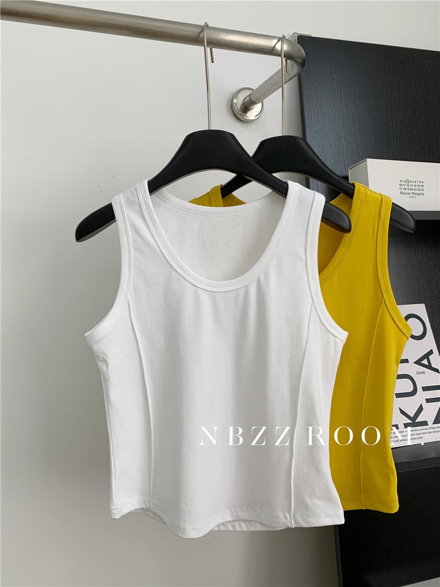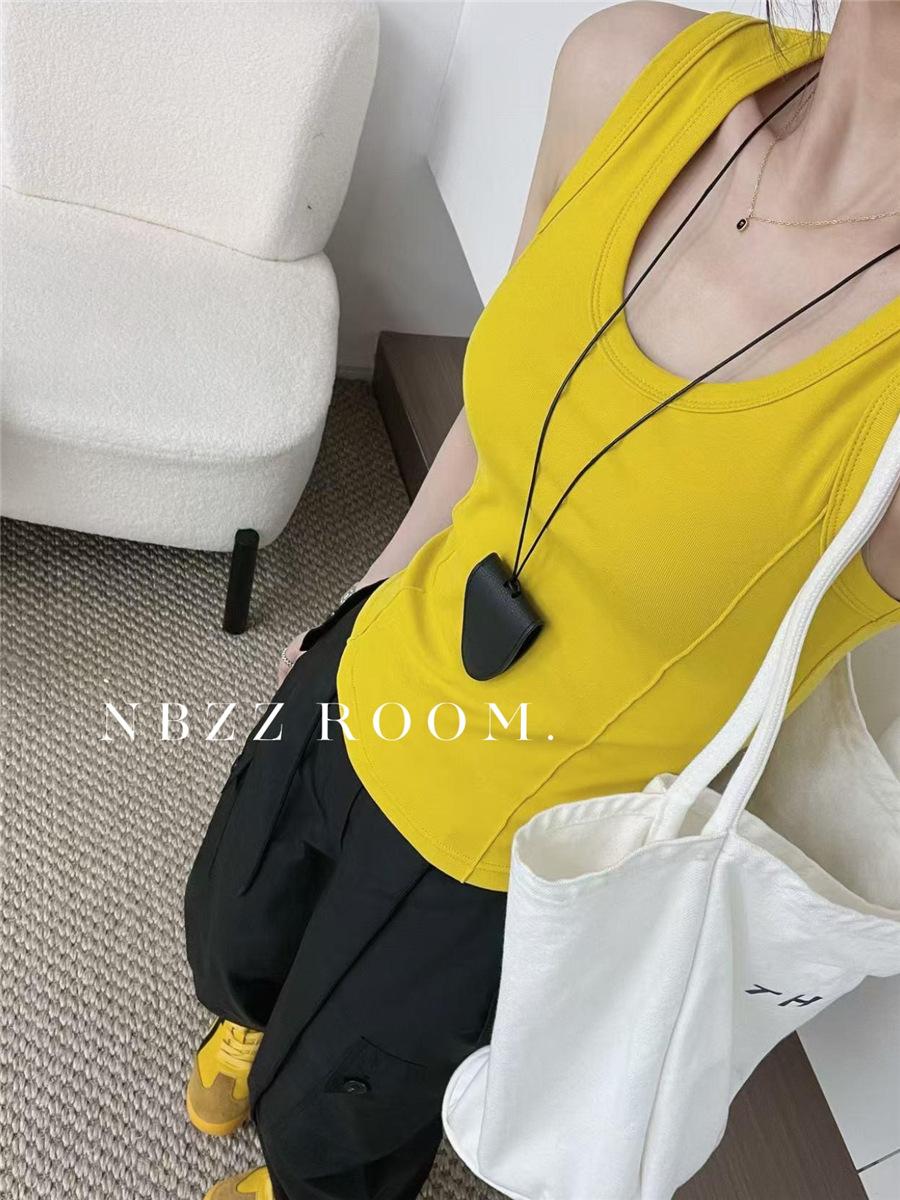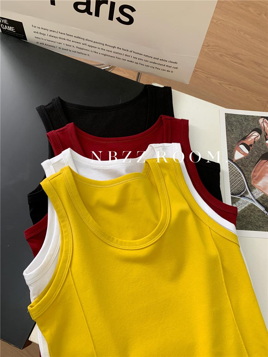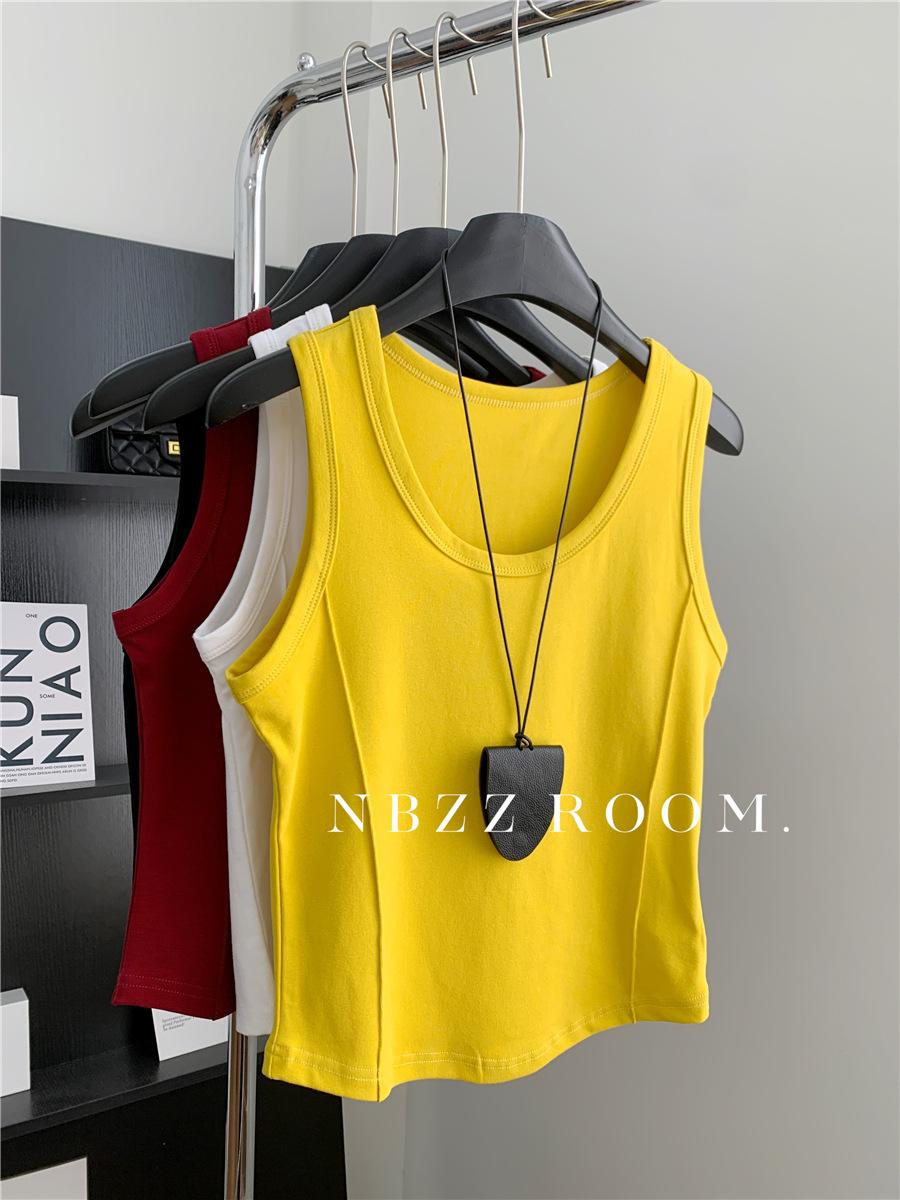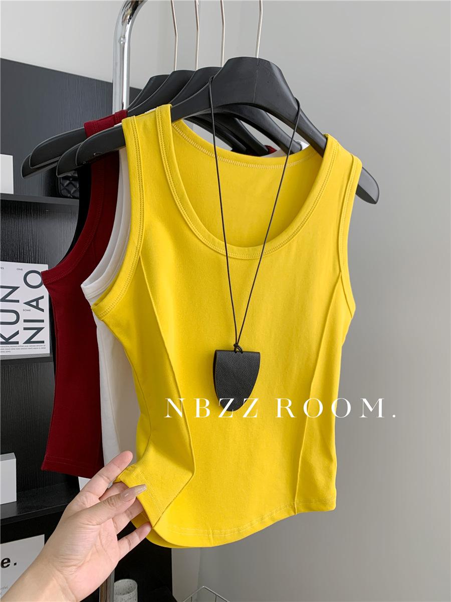 Verano 2025/Deseo Puro Ajustado Empalmado Espiga Chaleco Elástico Moda Femenina Top Interior Corto sin Mangas Trendy