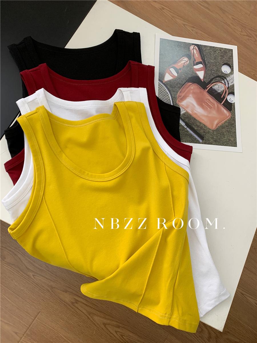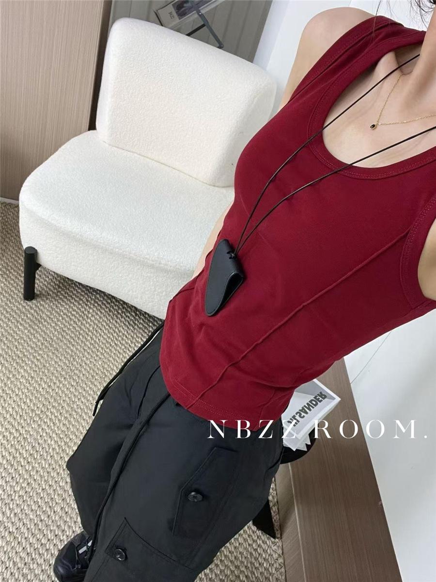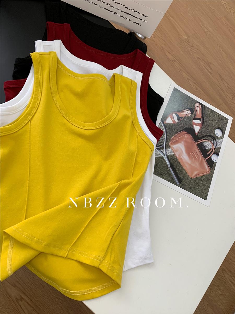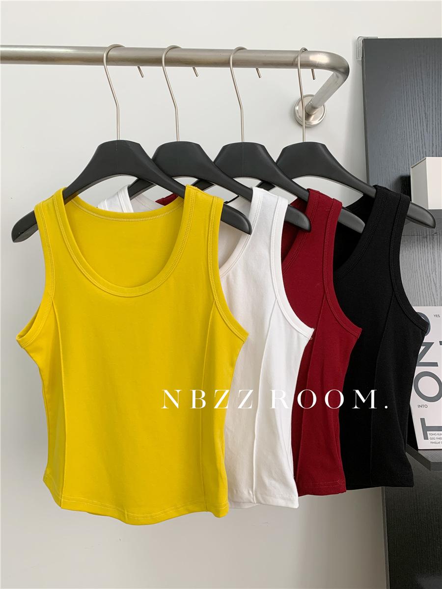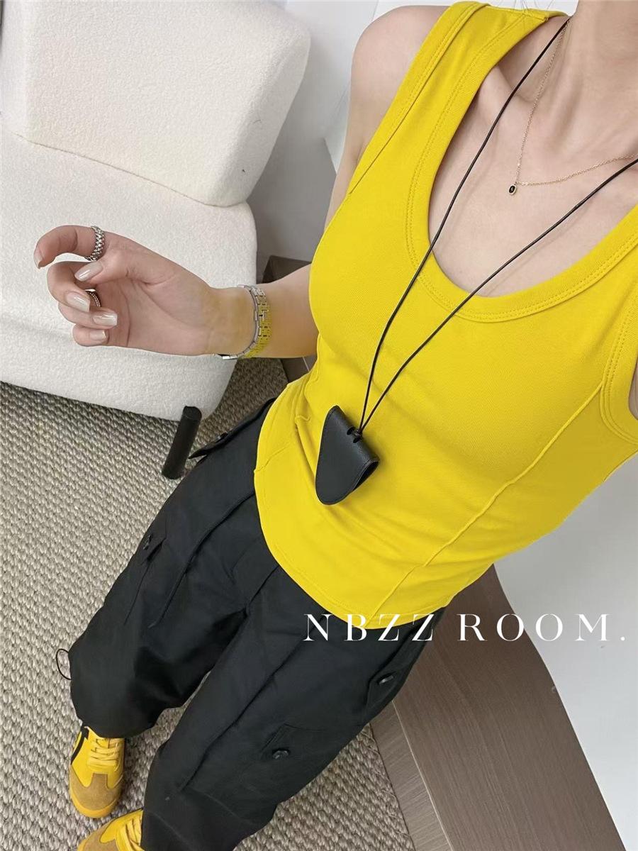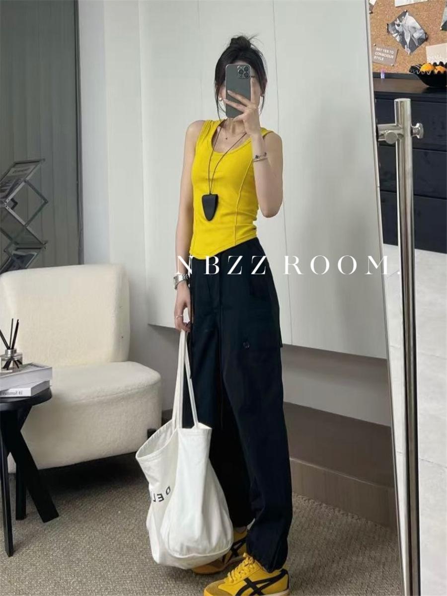 Verano 2025/Deseo Puro Ajustado Empalmado Espiga Chaleco Elástico Moda Femenina Top Interior Corto sin Mangas Trendy