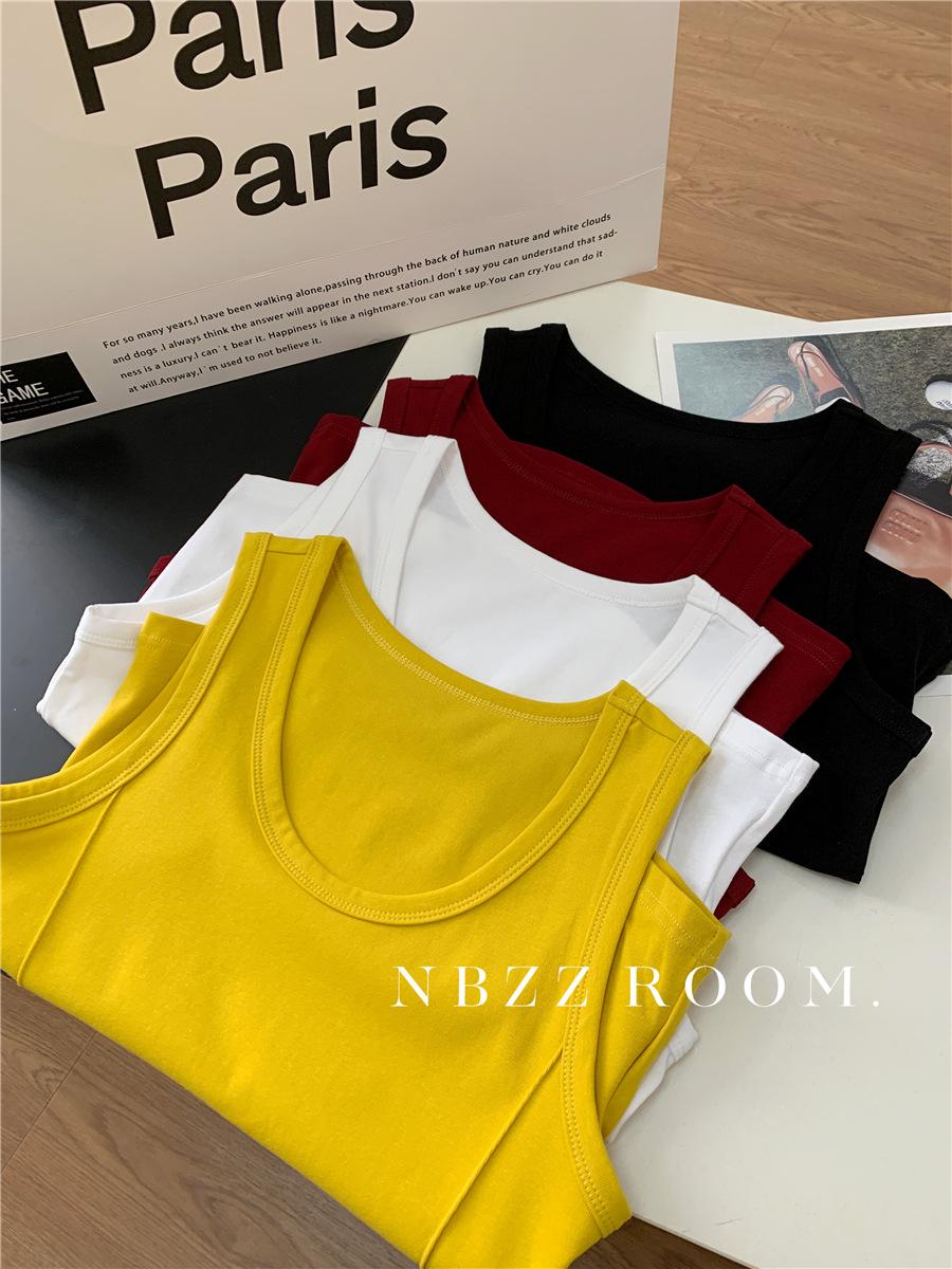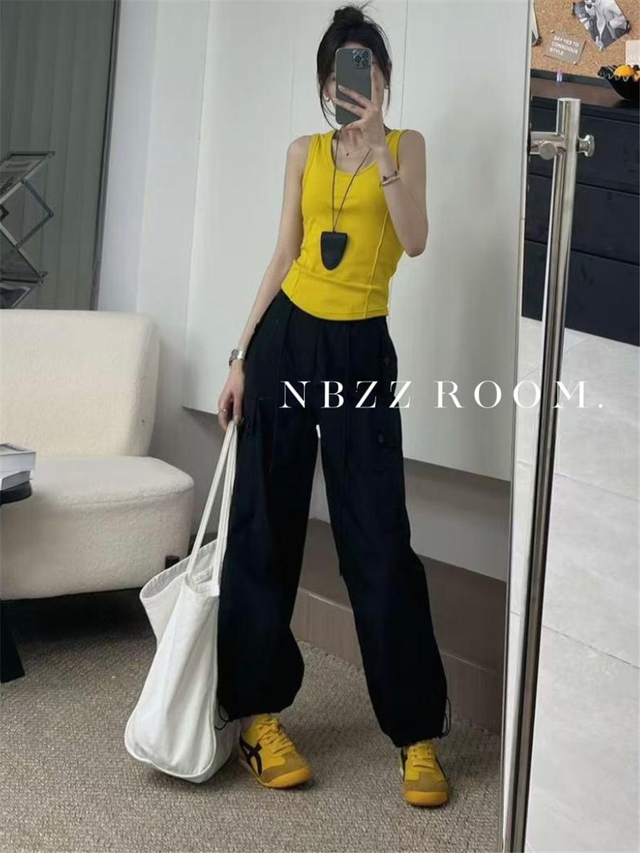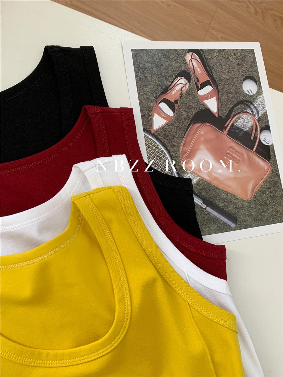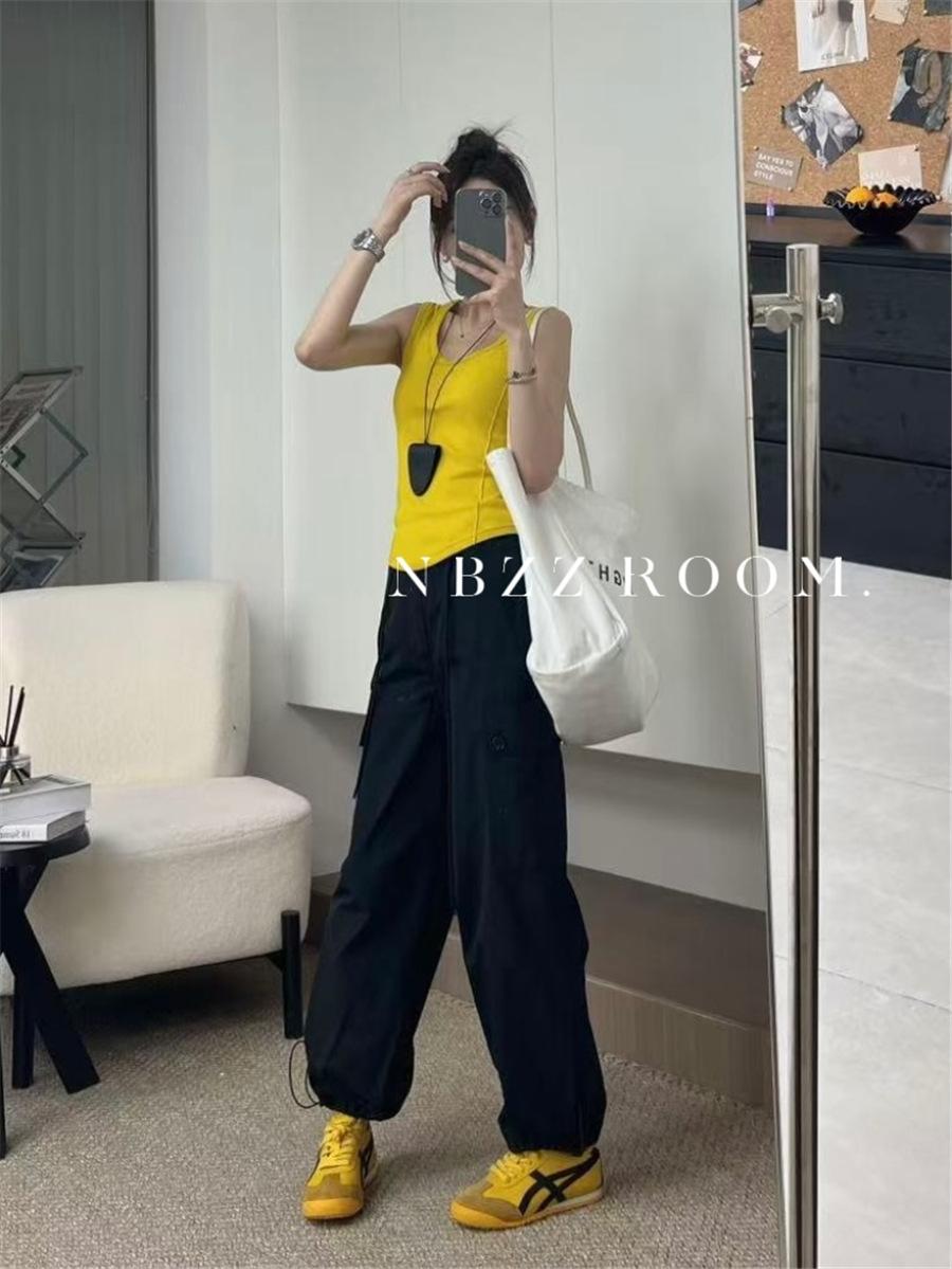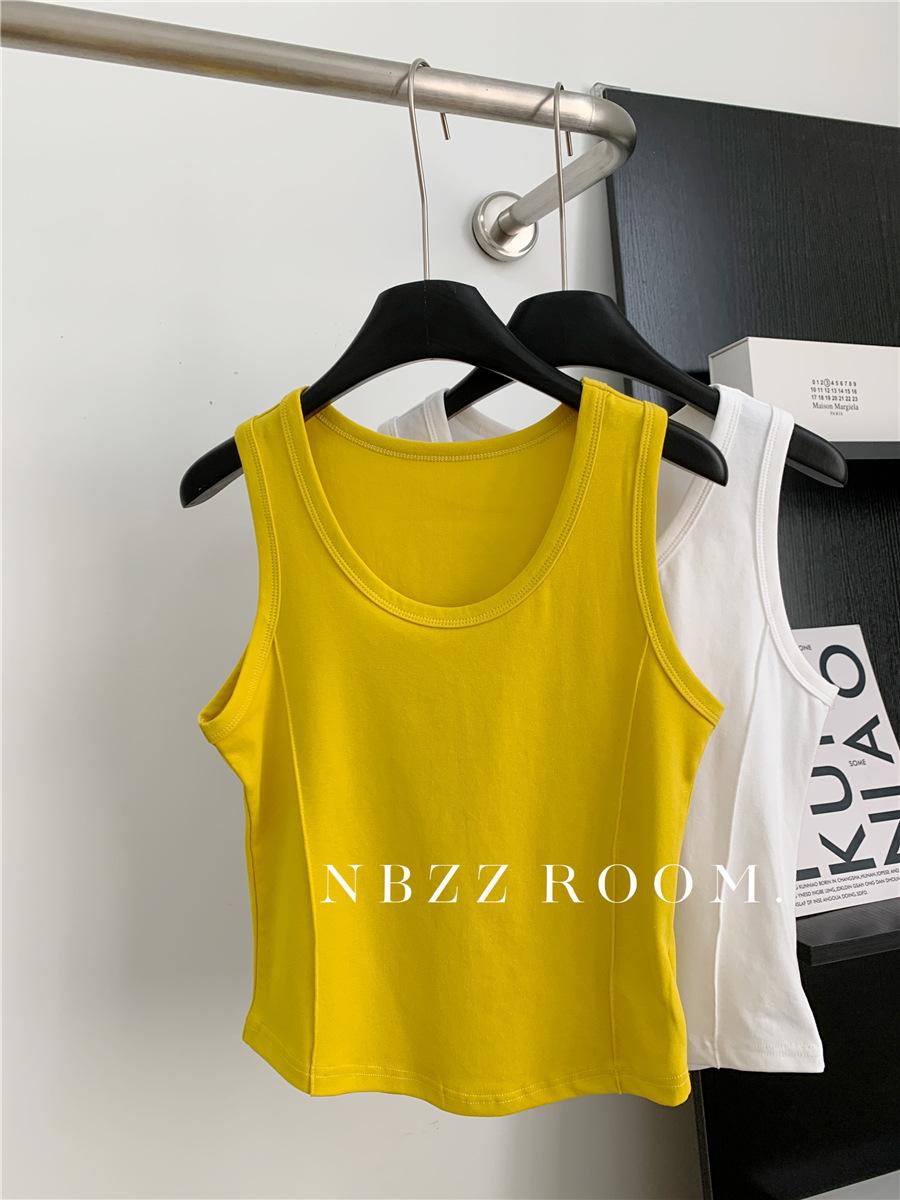 Verano 2025/Deseo Puro Ajustado Empalmado Espiga Chaleco Elástico Moda Femenina Top Interior Corto sin Mangas Trendy