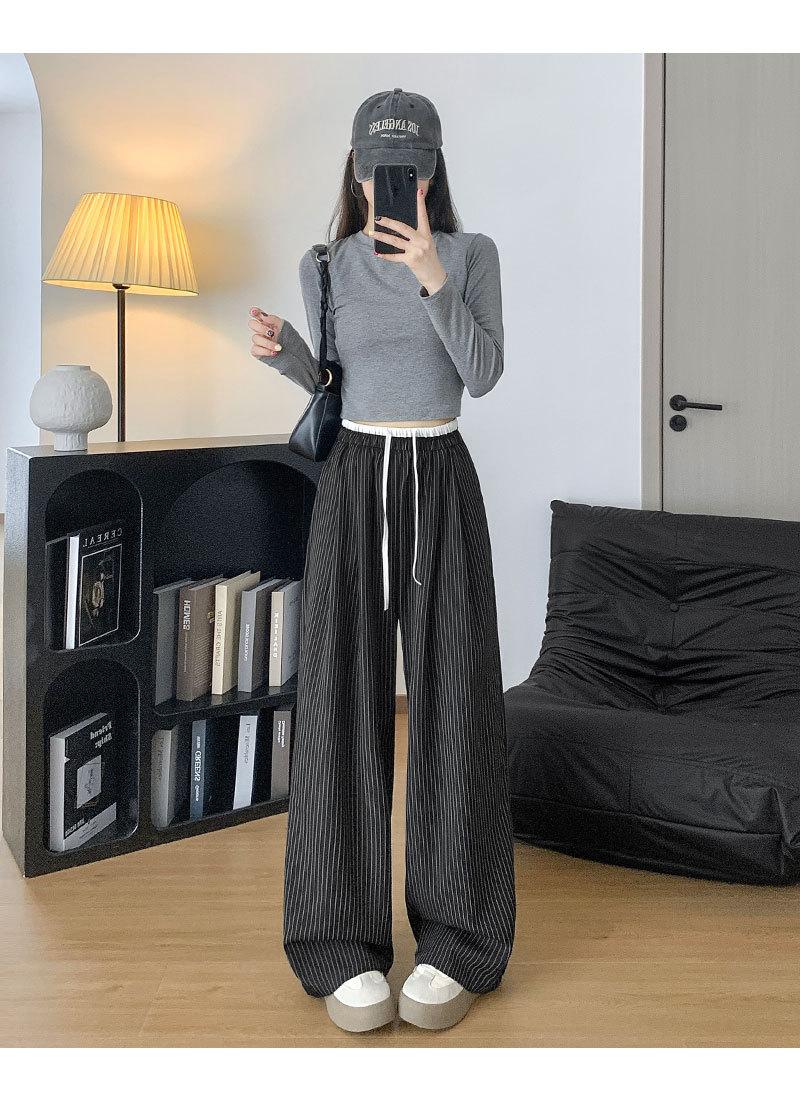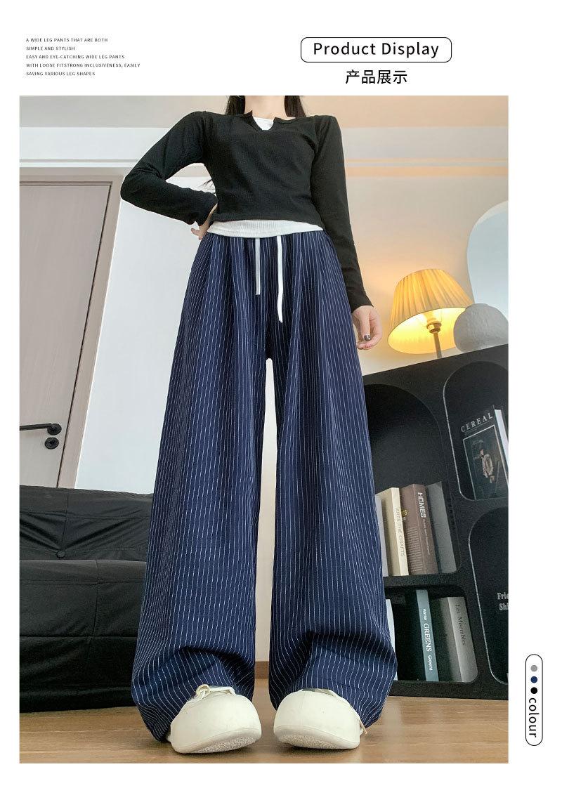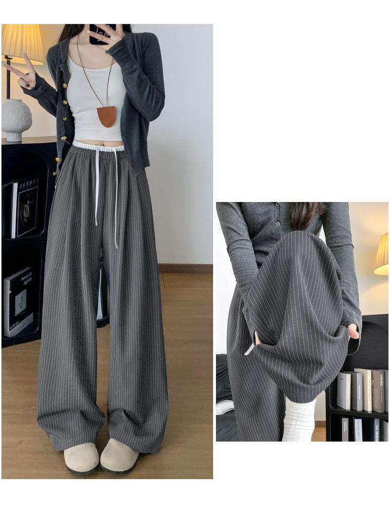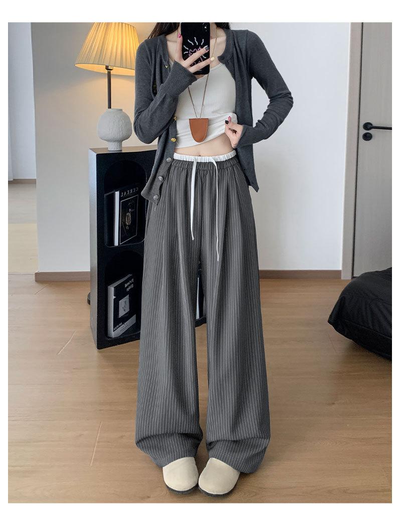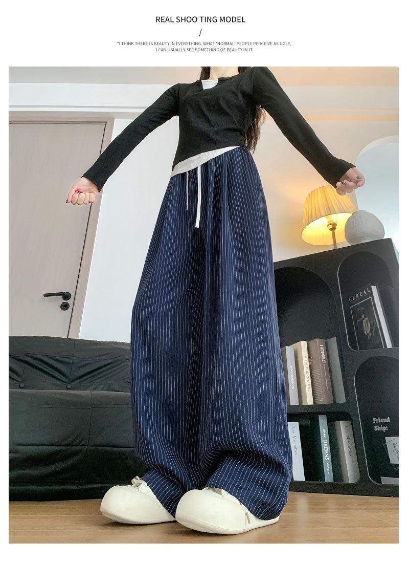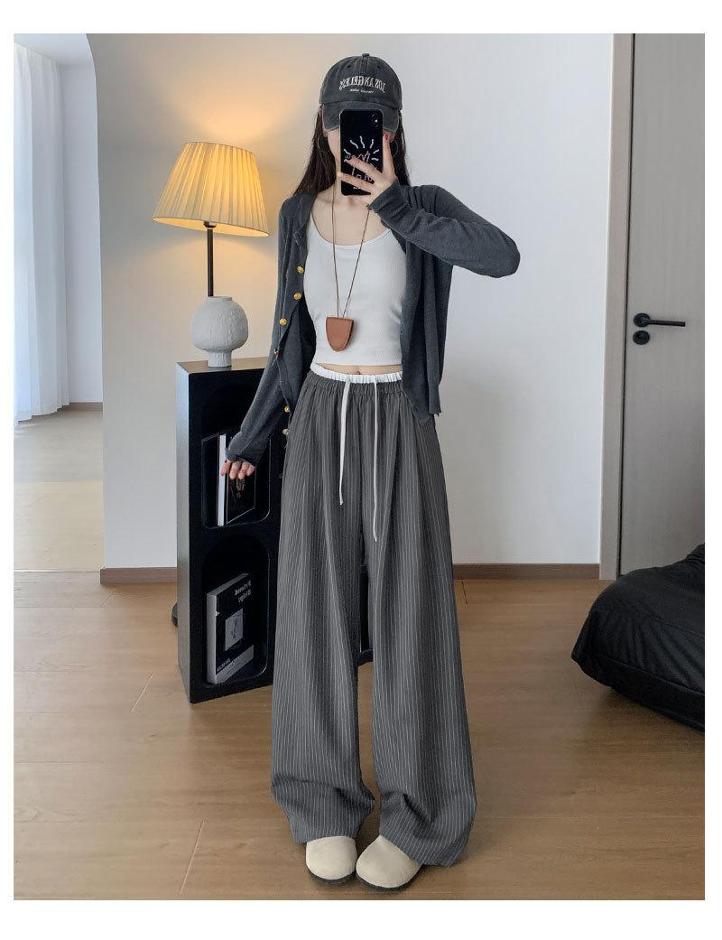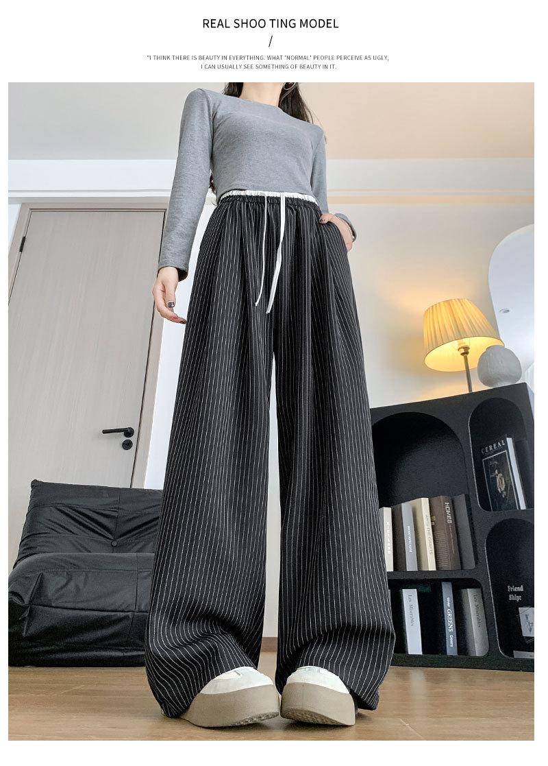 Pantalones Casuales de Pierna Ancha con Rayas y Cintura Color Block Retro Americano para Mujer Primavera Otoño Cintura Alta Drapeados Sueltos Adelgazantes Hasta el Piso