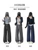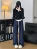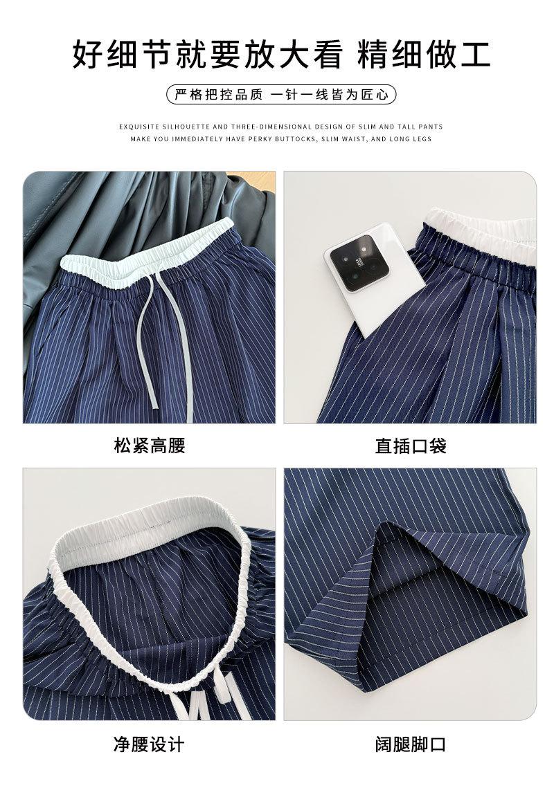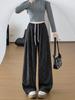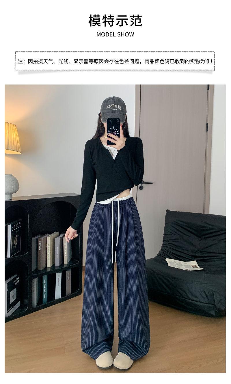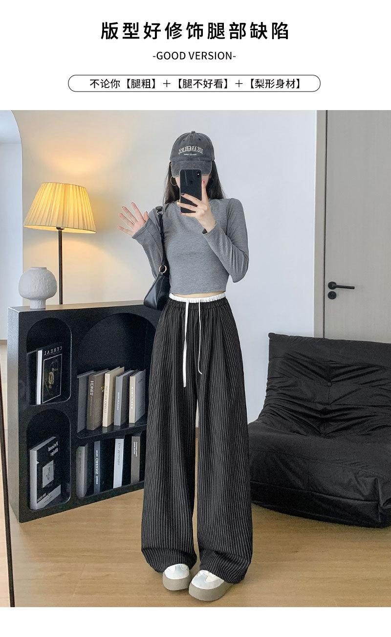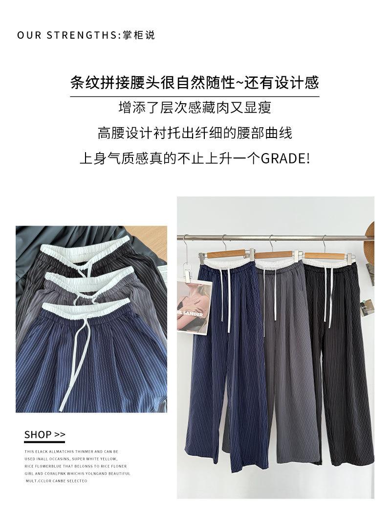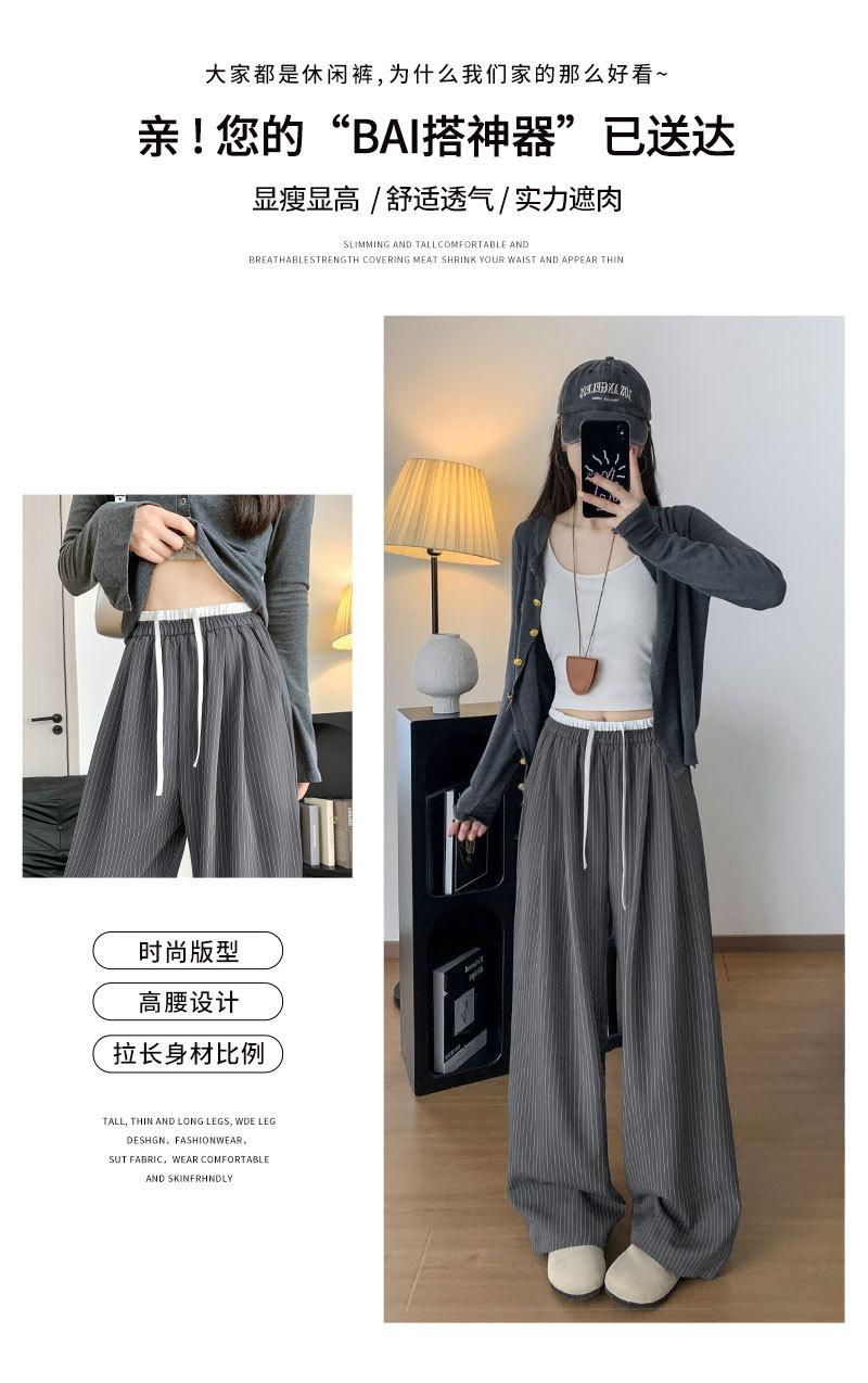 Pantalones Casuales de Pierna Ancha con Rayas y Cintura Color Block Retro Americano para Mujer Primavera Otoño Cintura Alta Drapeados Sueltos Adelgazantes Hasta el Piso