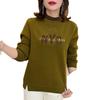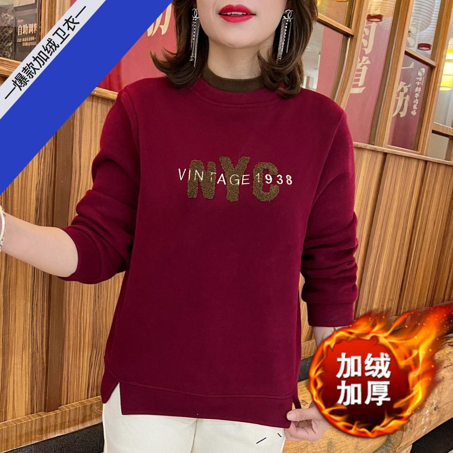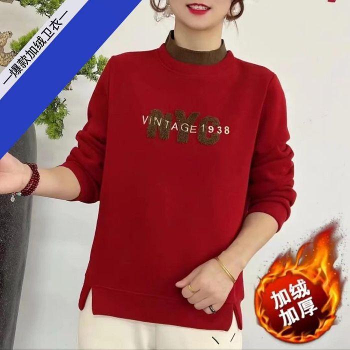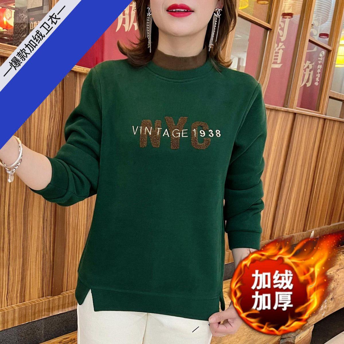 Sudadera de otoño e invierno para mujer con forro polar y engrosada, cálida, a la moda, con letras, cuello alto, estampada, cuello redondo, versátil, de manga larga para mujer