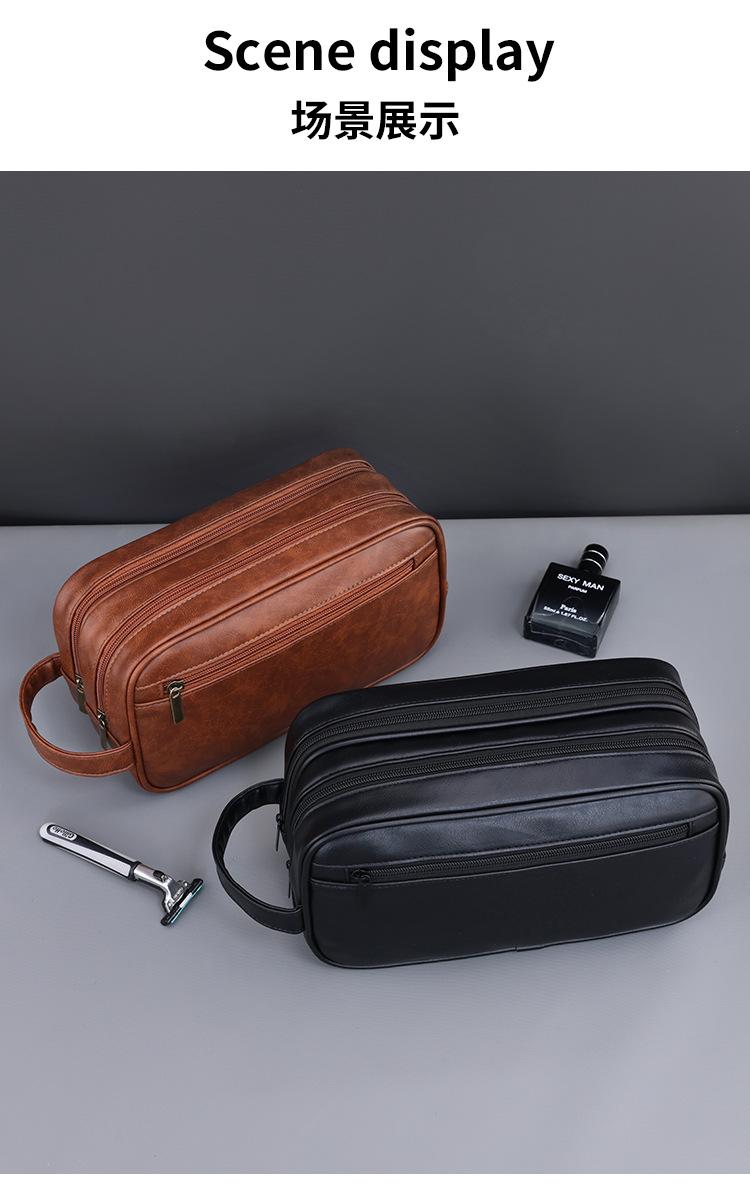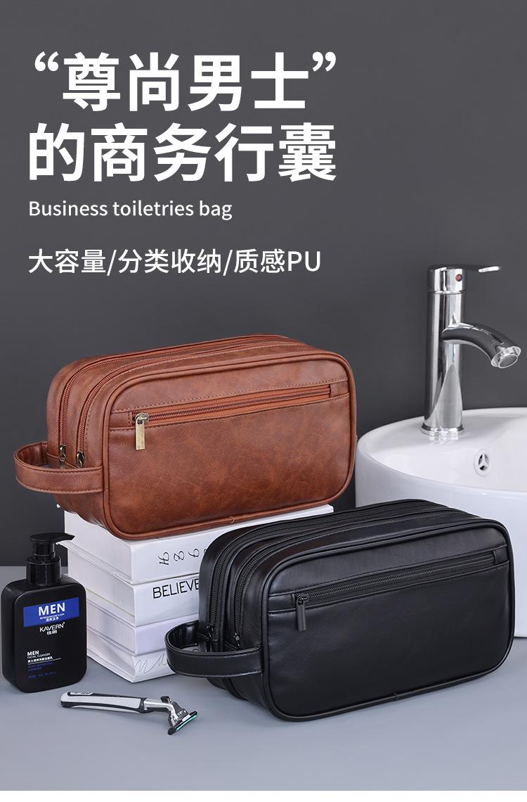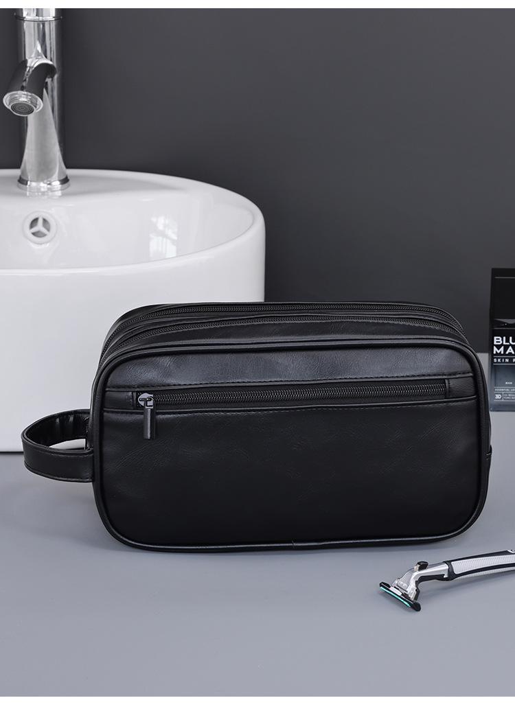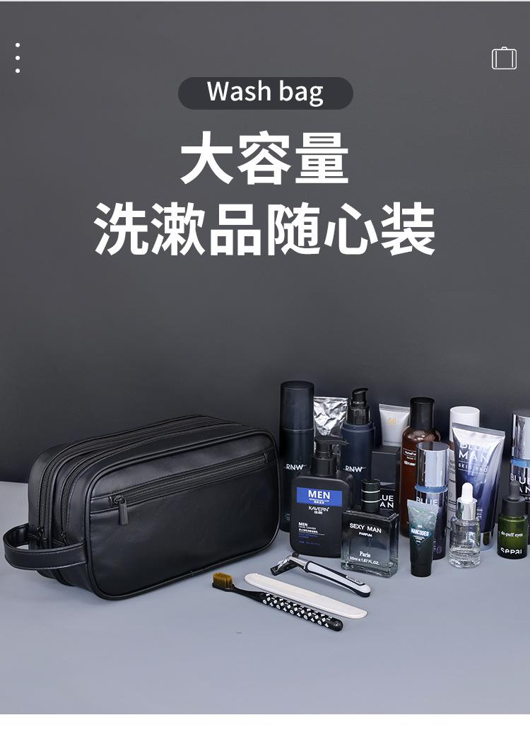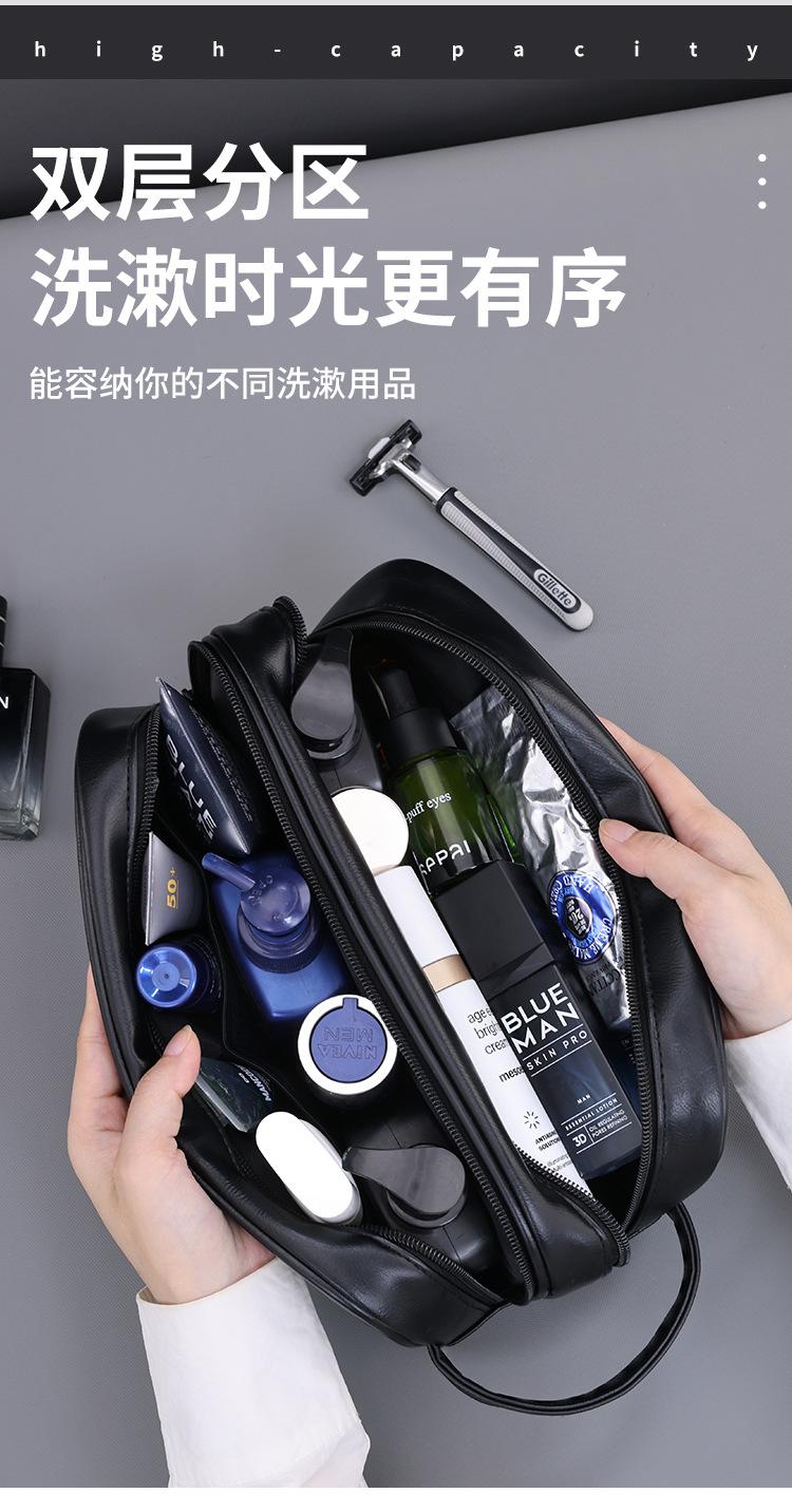 Viajes de negocios transfronterizos bolsa de aseo portátil de doble capa para hombre impermeable PU bolsa de maquillaje gran capacidad sentido de alta gama bolsa de lavado