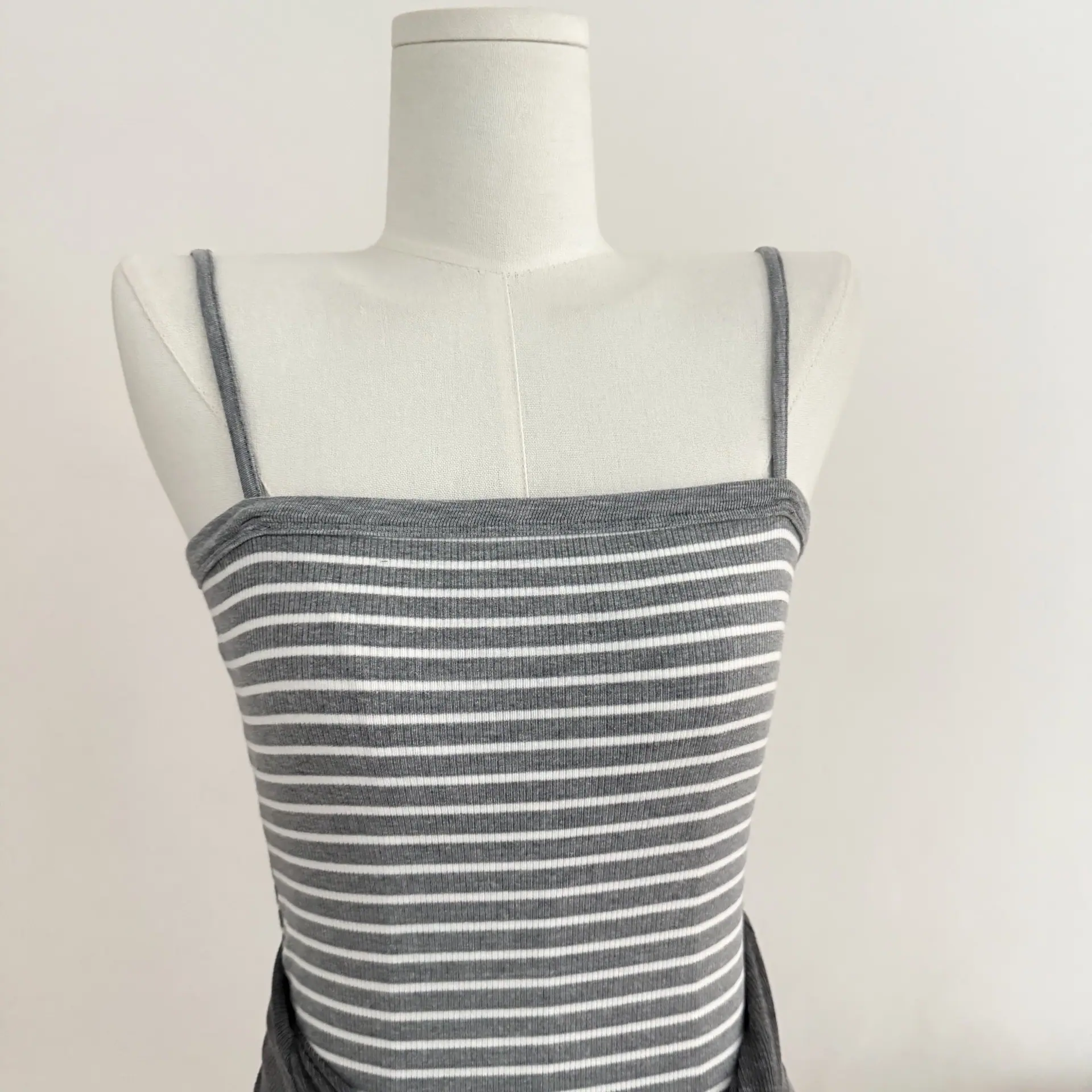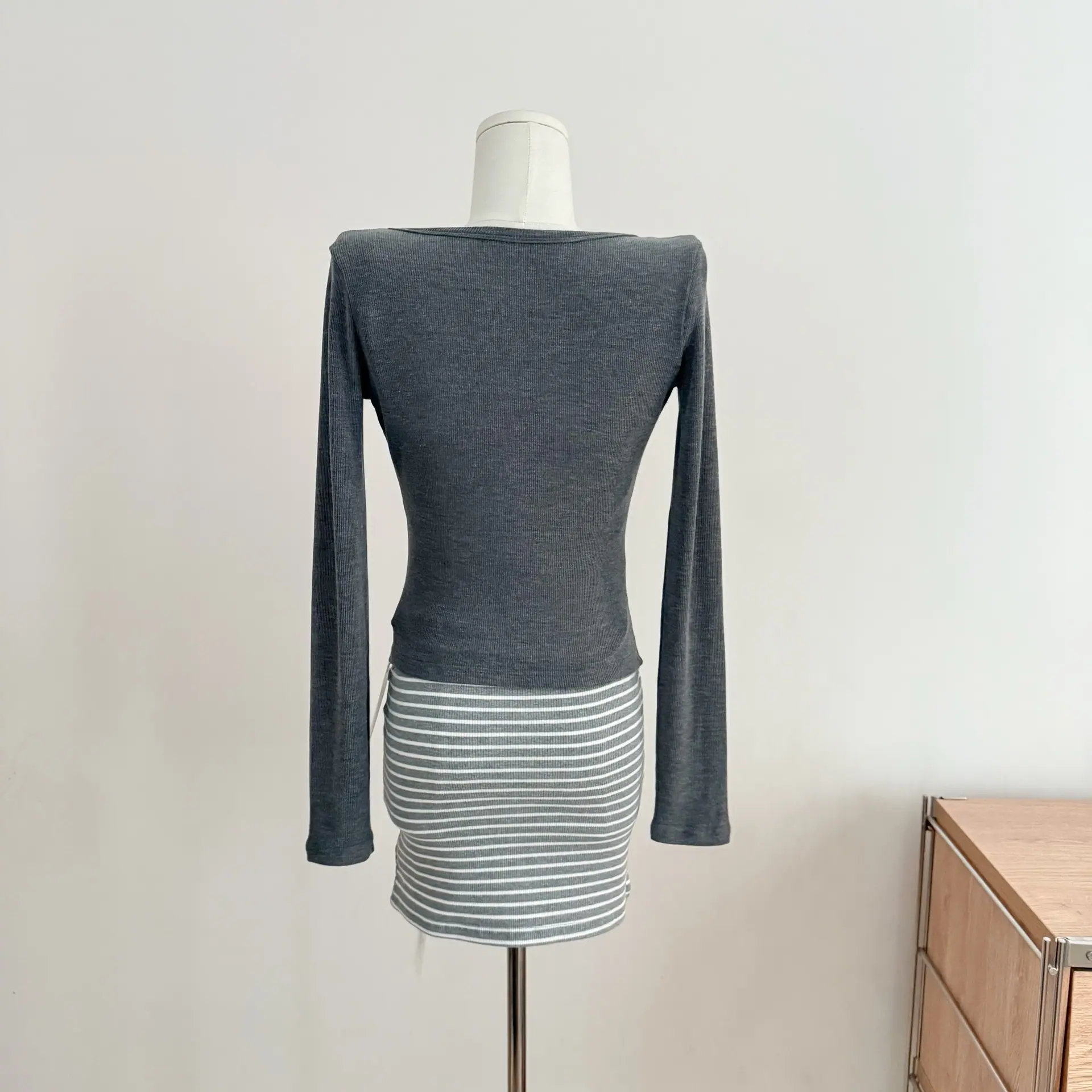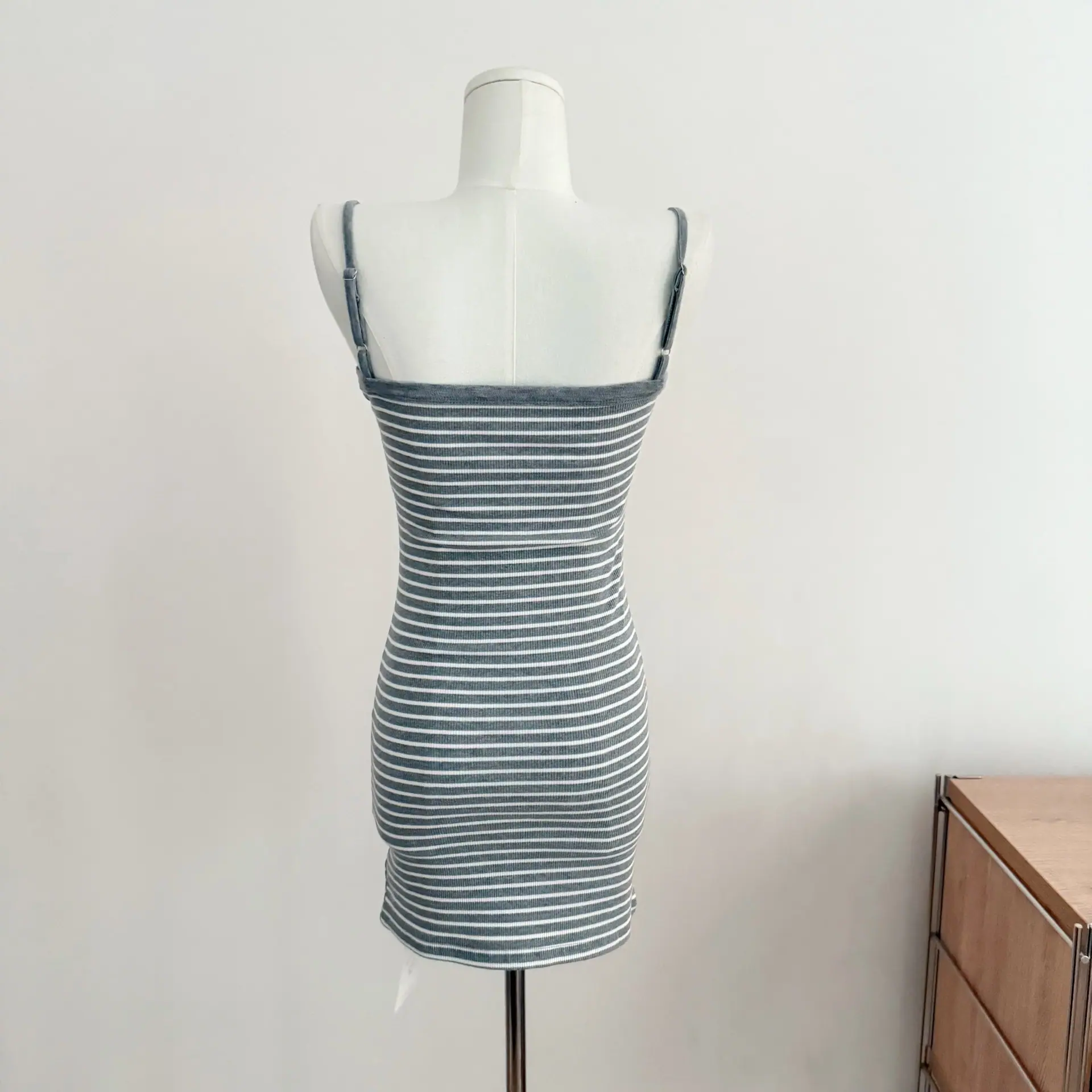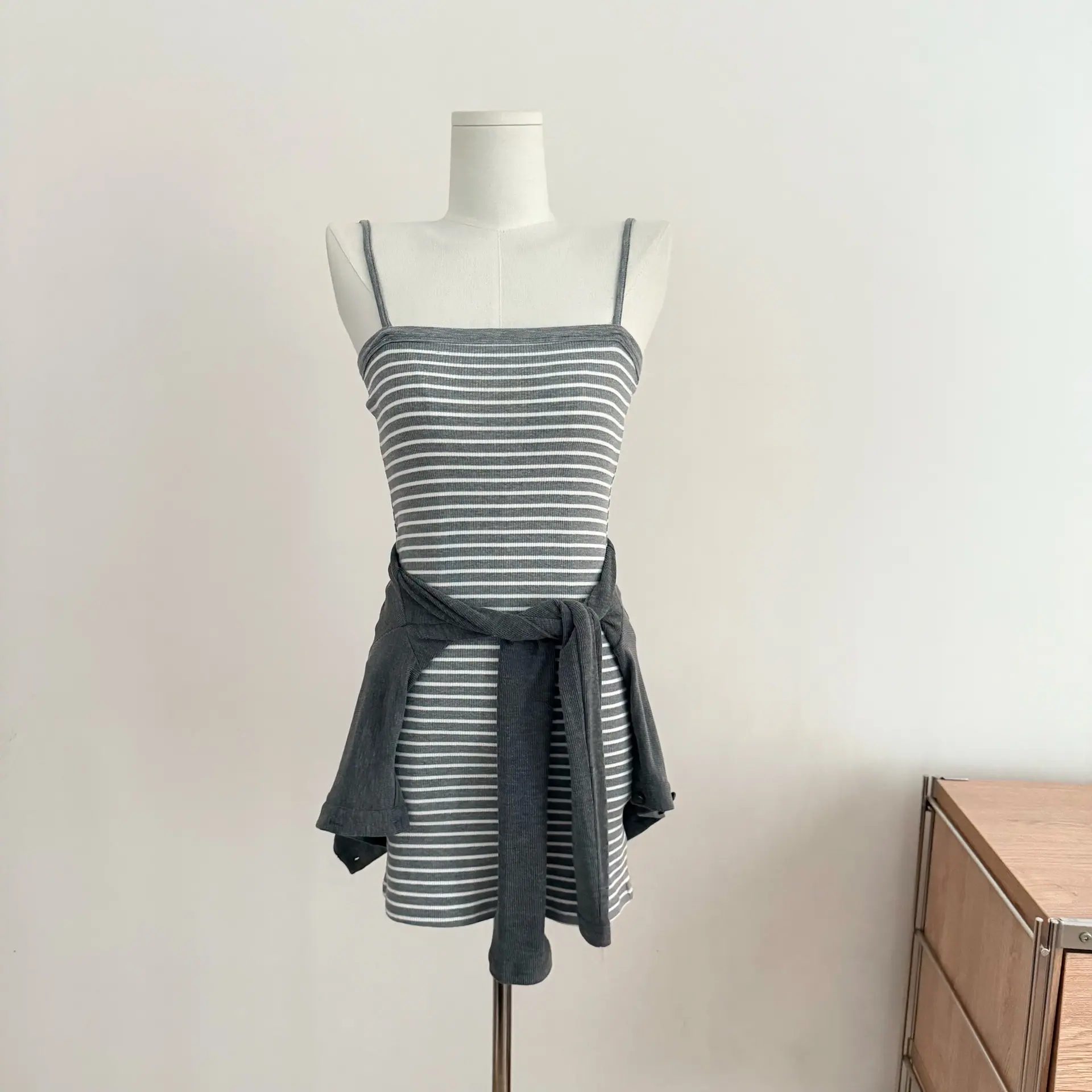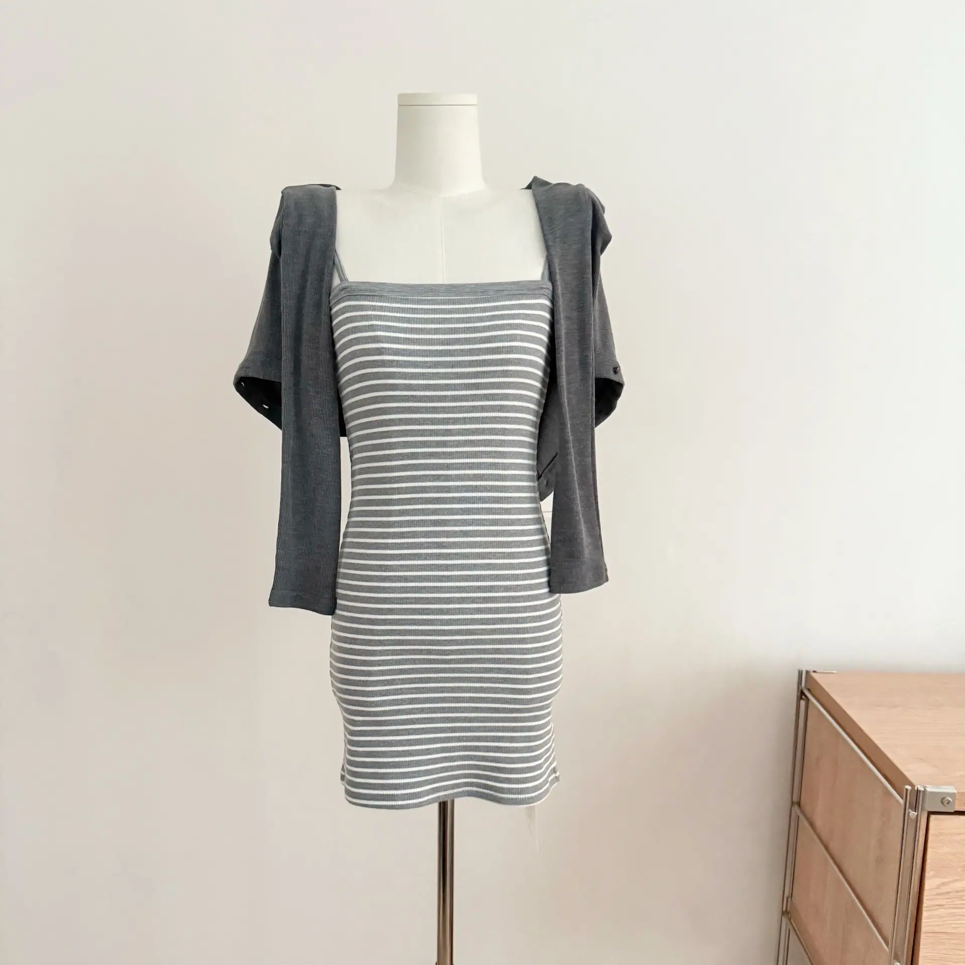 Grey cardigan, Striped Dress