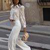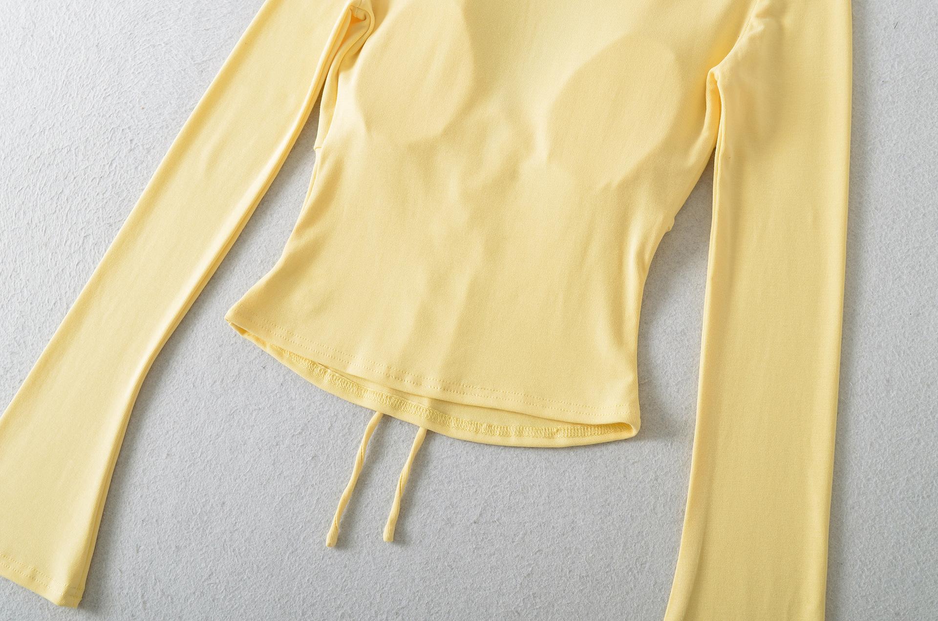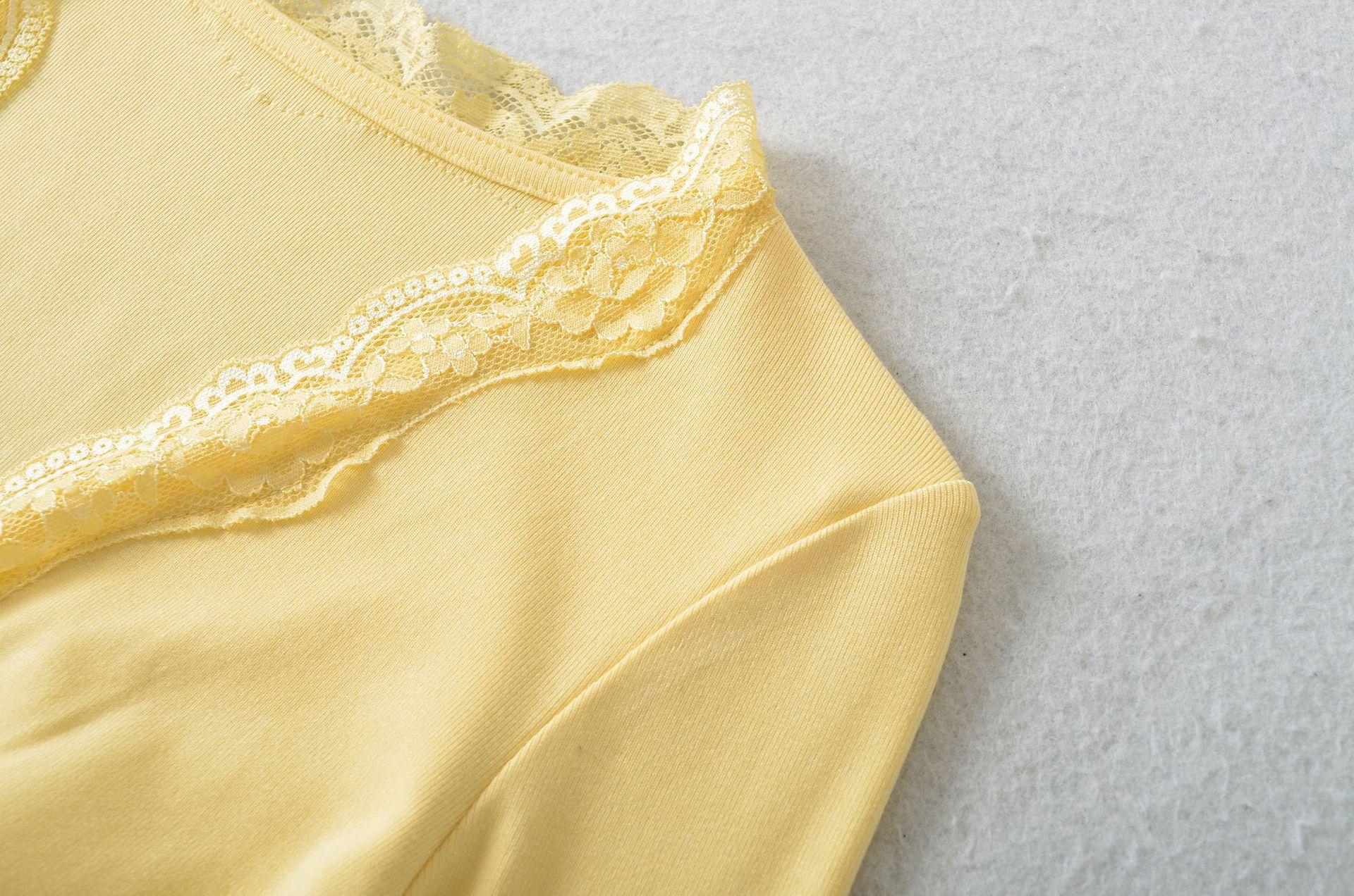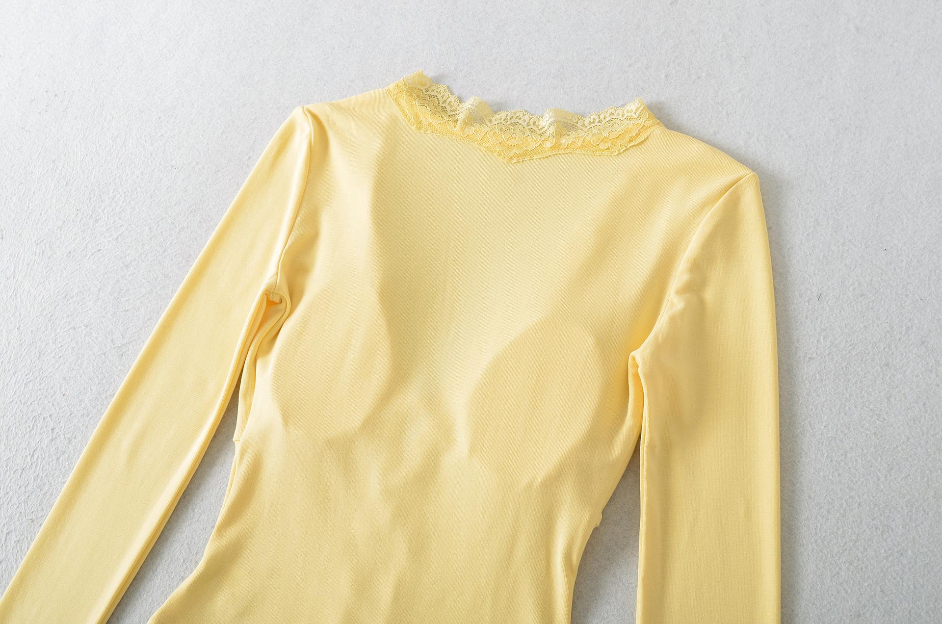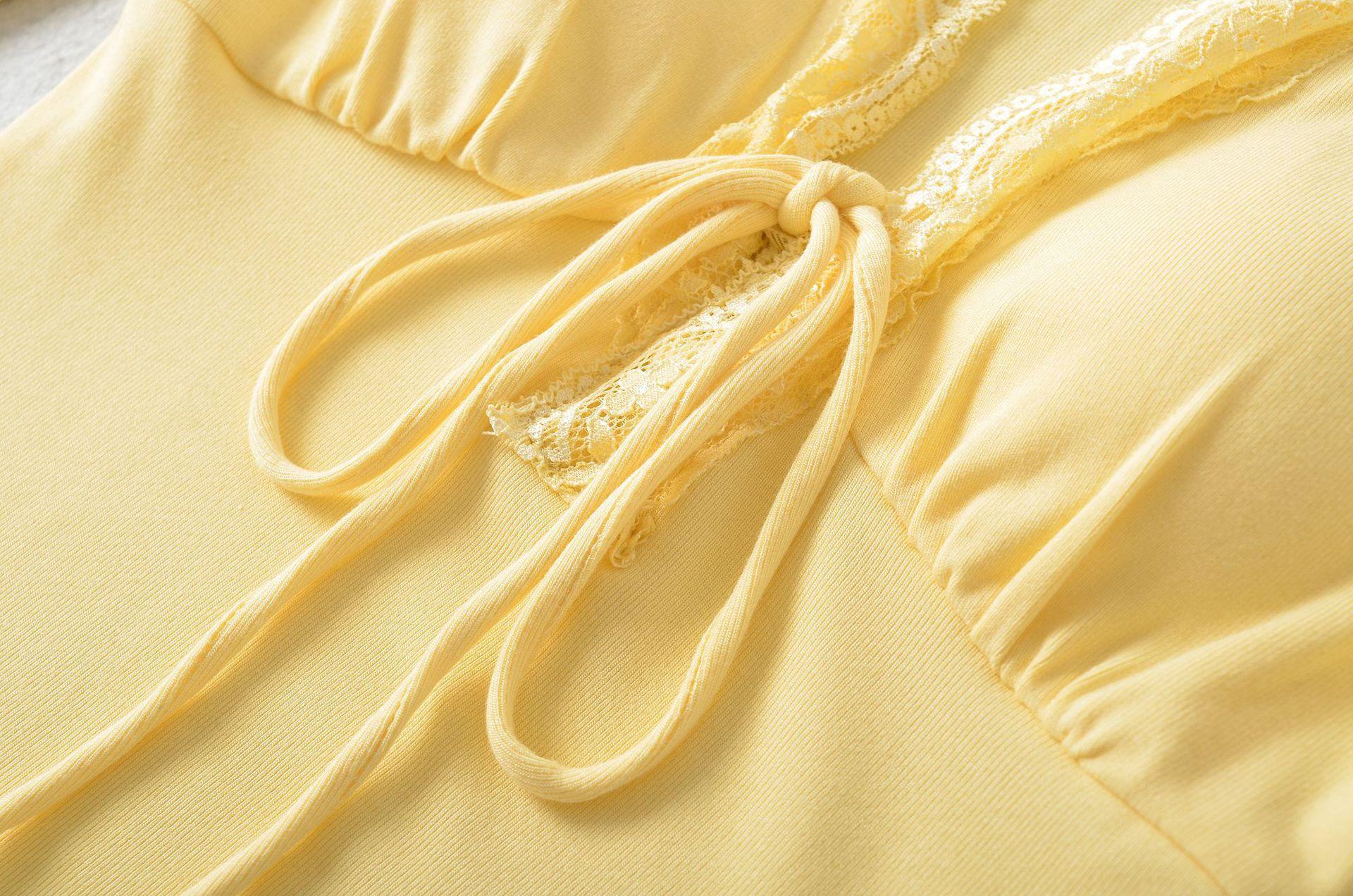 25 Otoño Nuevo Encaje Cuello en V Atado Manga Larga Acampanada Camiseta Corta Estilo Deseo Puro Americano Encaje