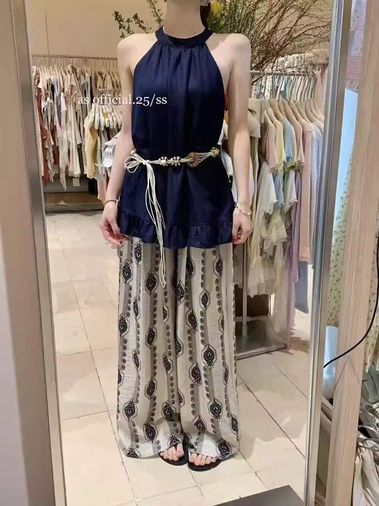 2025 Pantalones Casuales de Estilo Bohemio Nuevo Pantalones de Pierna Ancha para Mujer Verano Cintura Alta Estilo Vacacional Pantalones Versátiles