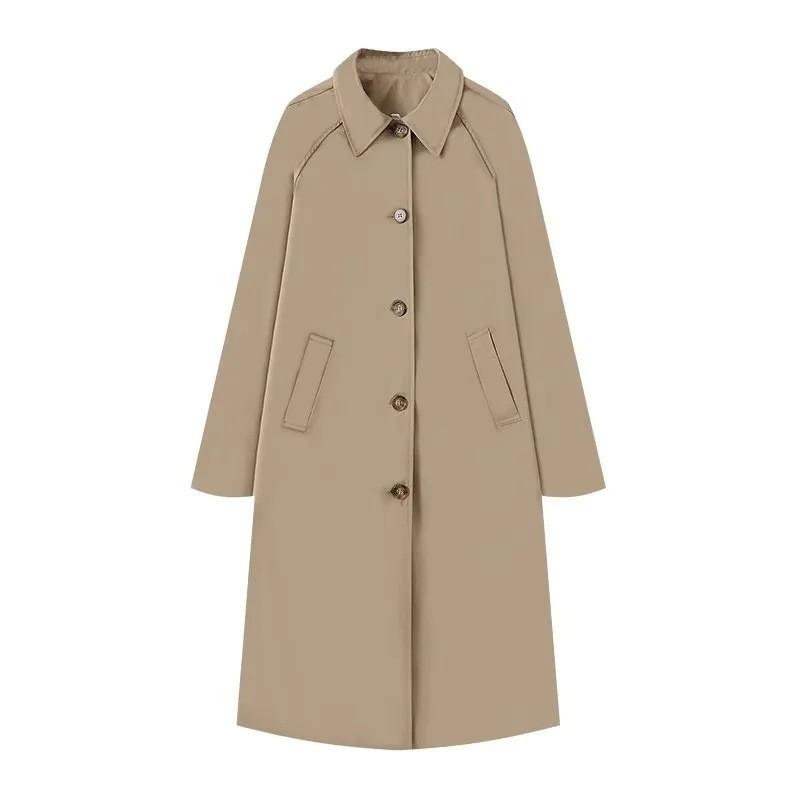 Estilo Europeo y Americano Amazon AliExpress Más Vendido Tendencia de Moda Temperamento Cuello Vuelto Estilo Ropa de Trabajo Abrigo Trench de un Solo Botón