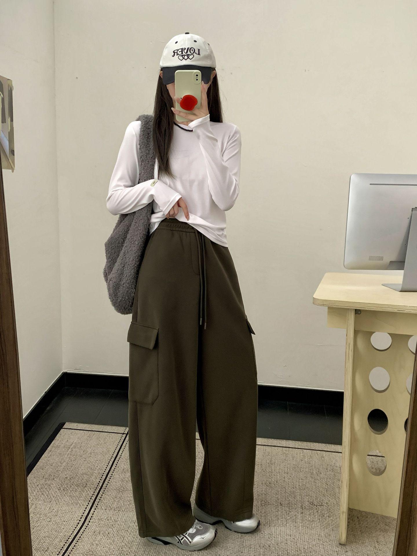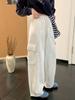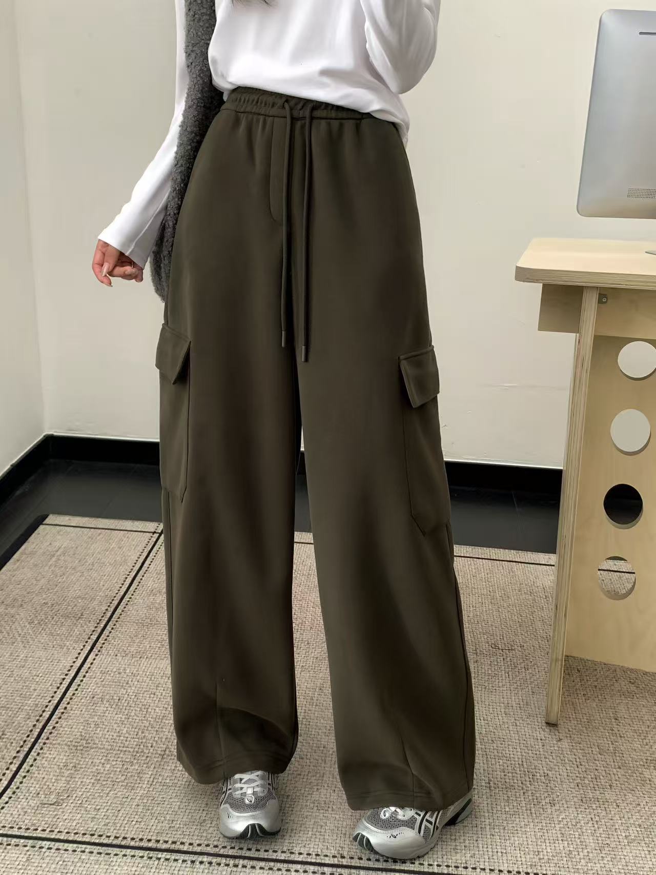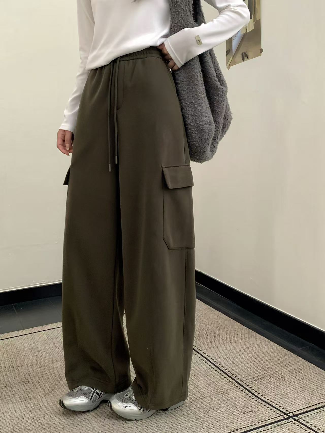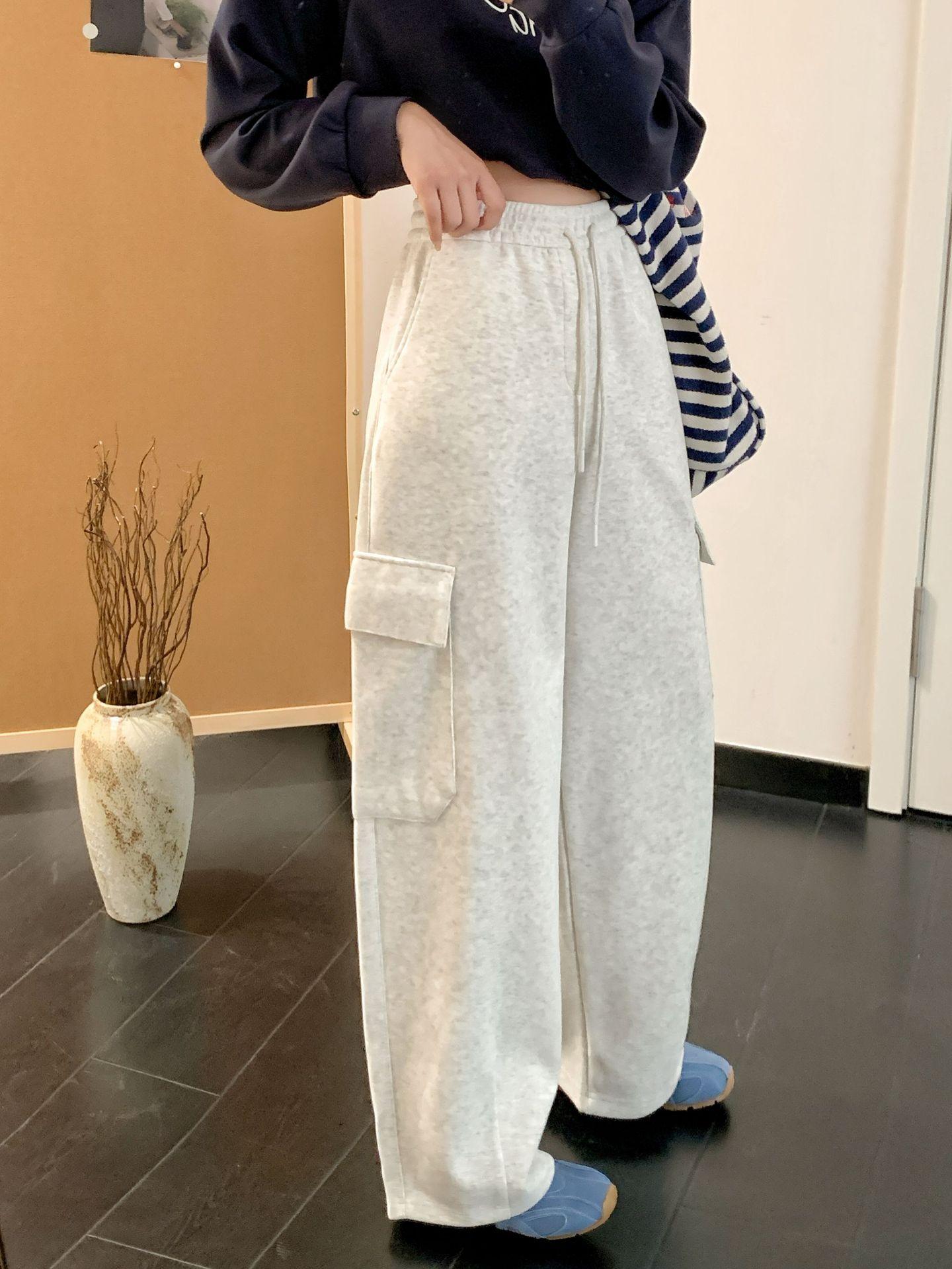 Pantalones cargo americanos de pierna ancha para mujer, estilo primavera y otoño, holgados, de pierna recta, con cordón ajustable en el tobillo, dos formas de uso, múltiples bolsillos, pantalones largos casuales al por mayor