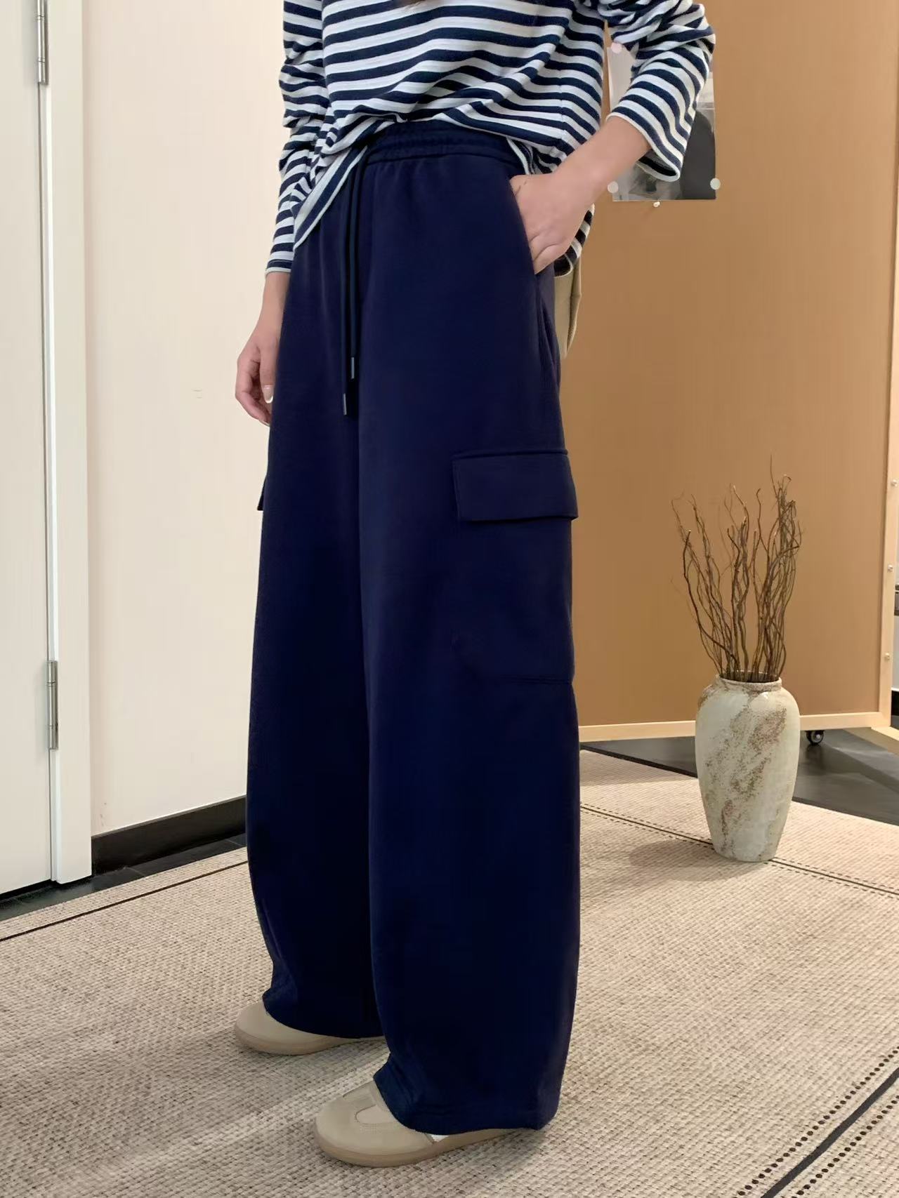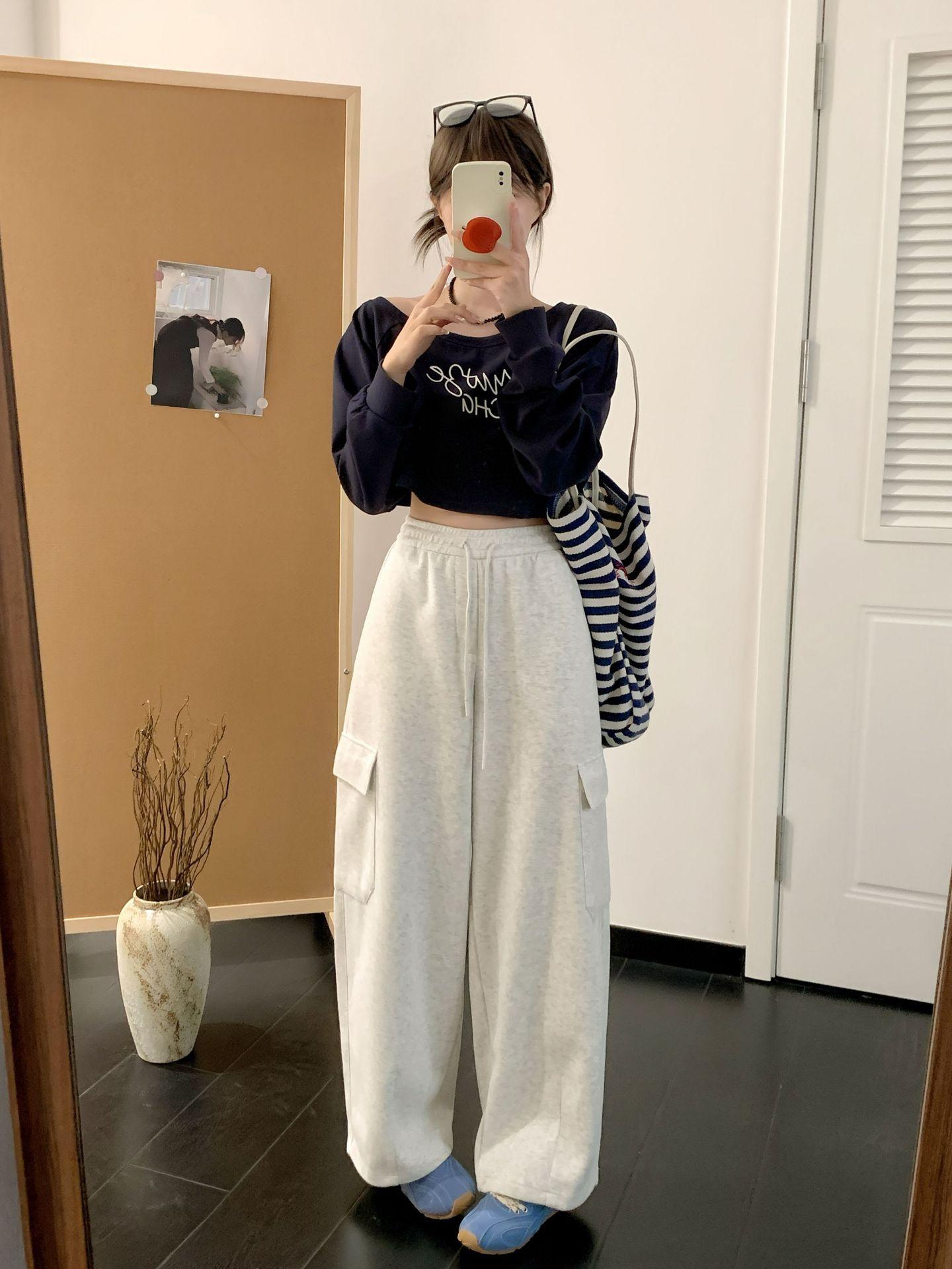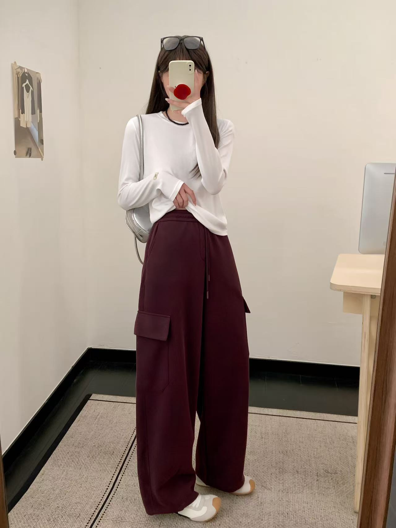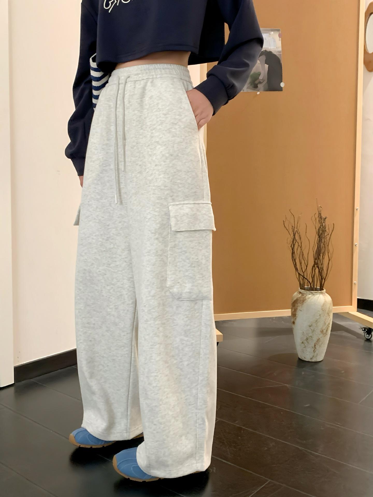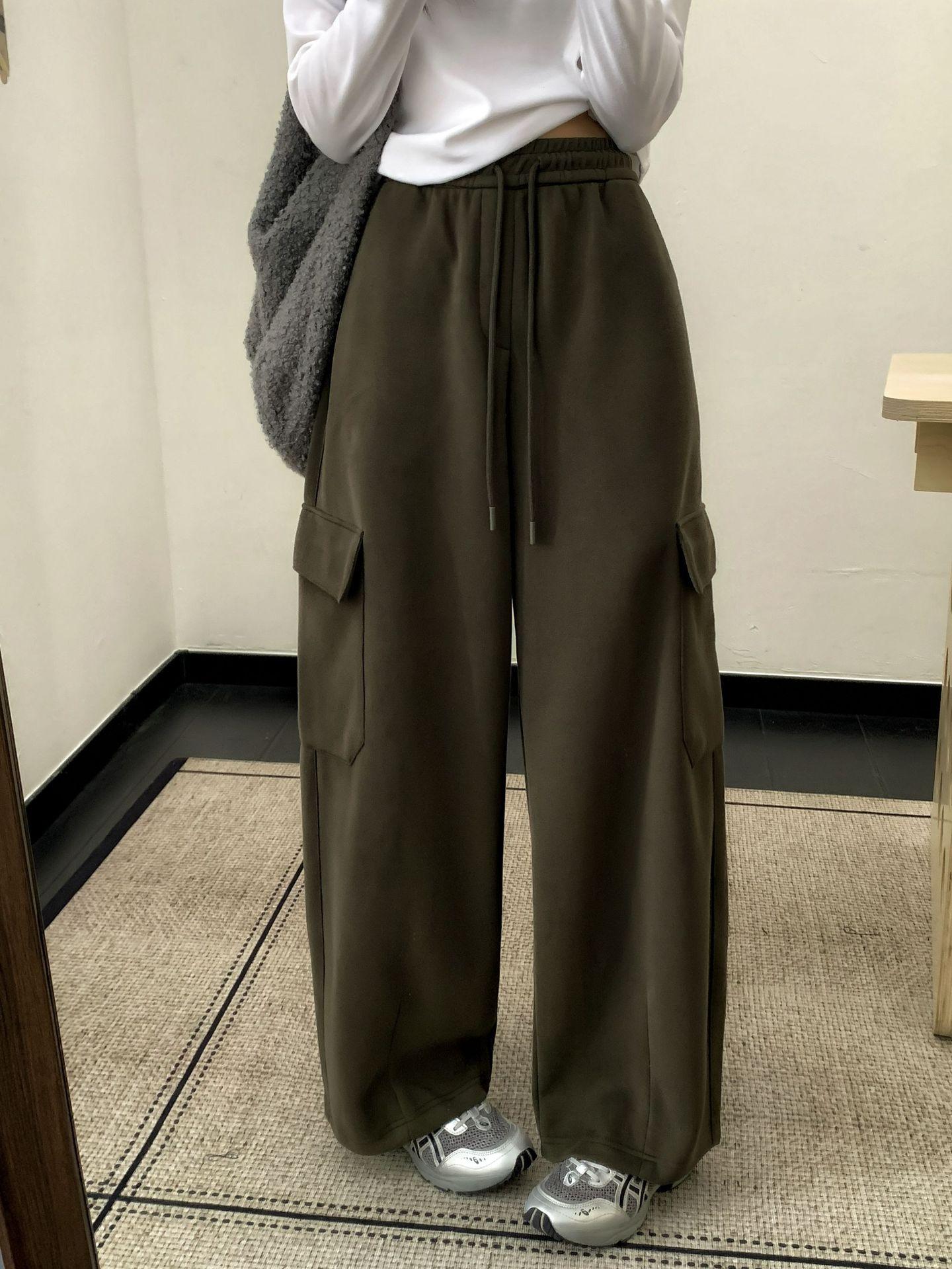 Pantalones cargo americanos de pierna ancha para mujer, estilo primavera y otoño, holgados, de pierna recta, con cordón ajustable en el tobillo, dos formas de uso, múltiples bolsillos, pantalones largos casuales al por mayor