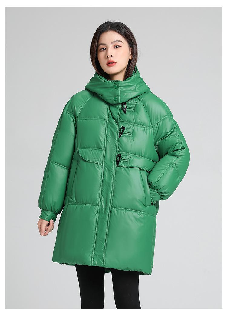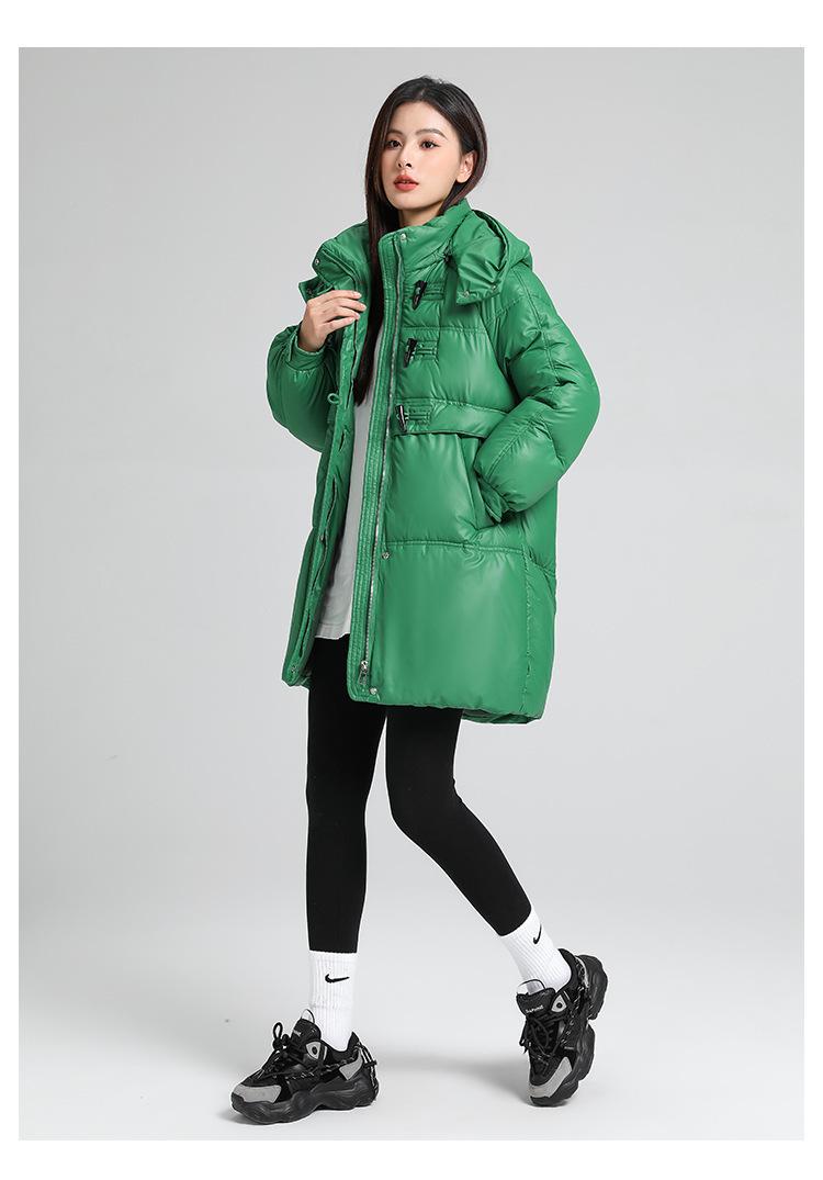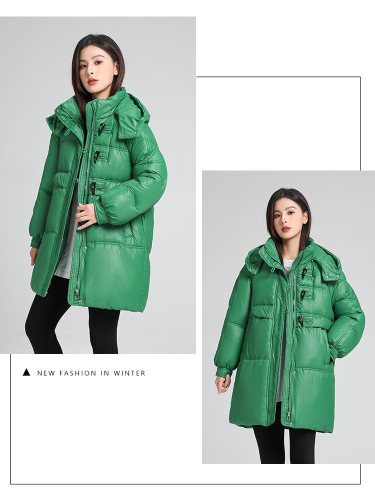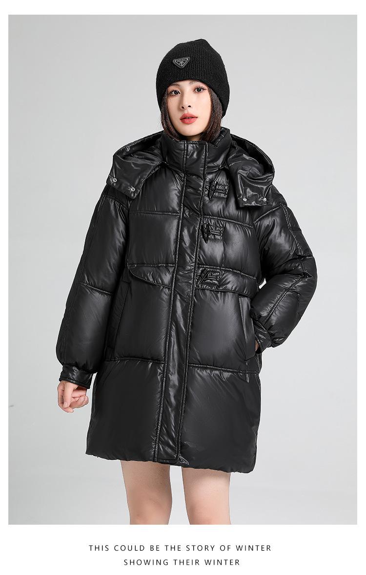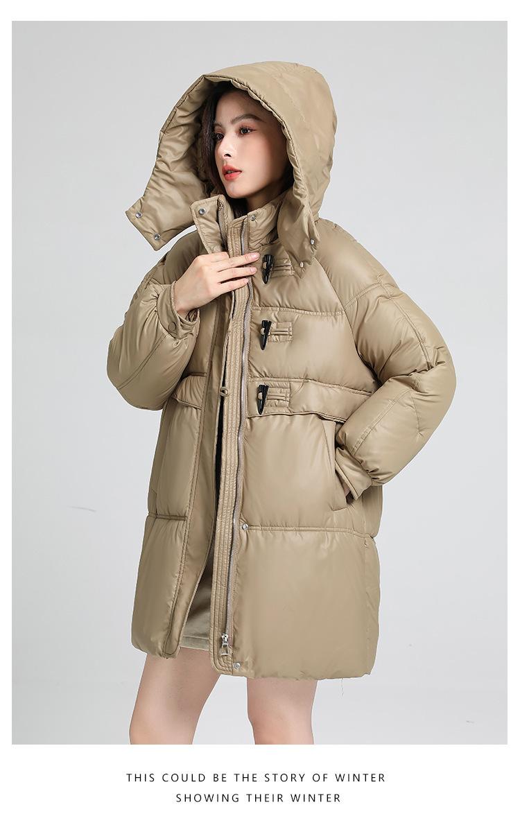 Abrigo de algodón estilo coreano para mujer invierno nuevo abrigo de algodón plumón para mujer largo medio con capucha holgado por encima de la rodilla grueso abrigo de algodón chaqueta de mujer