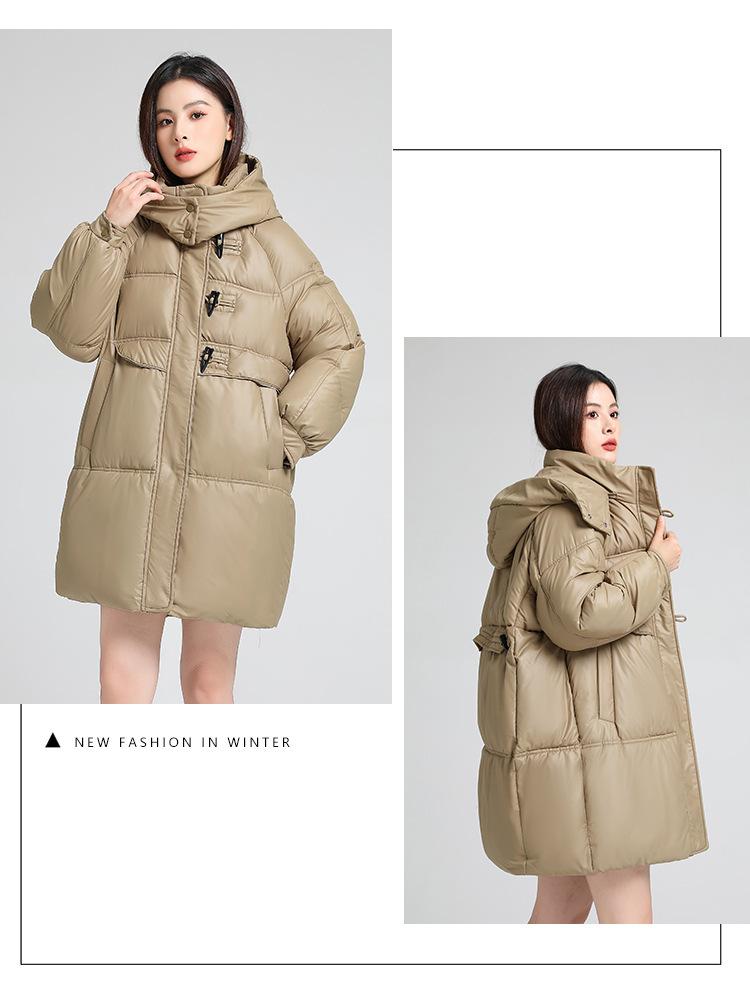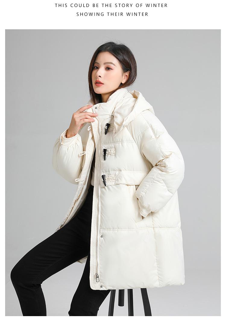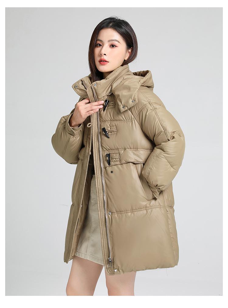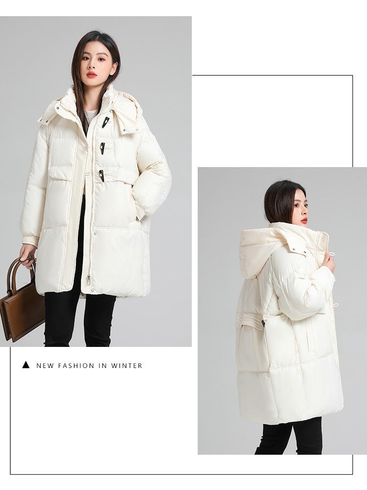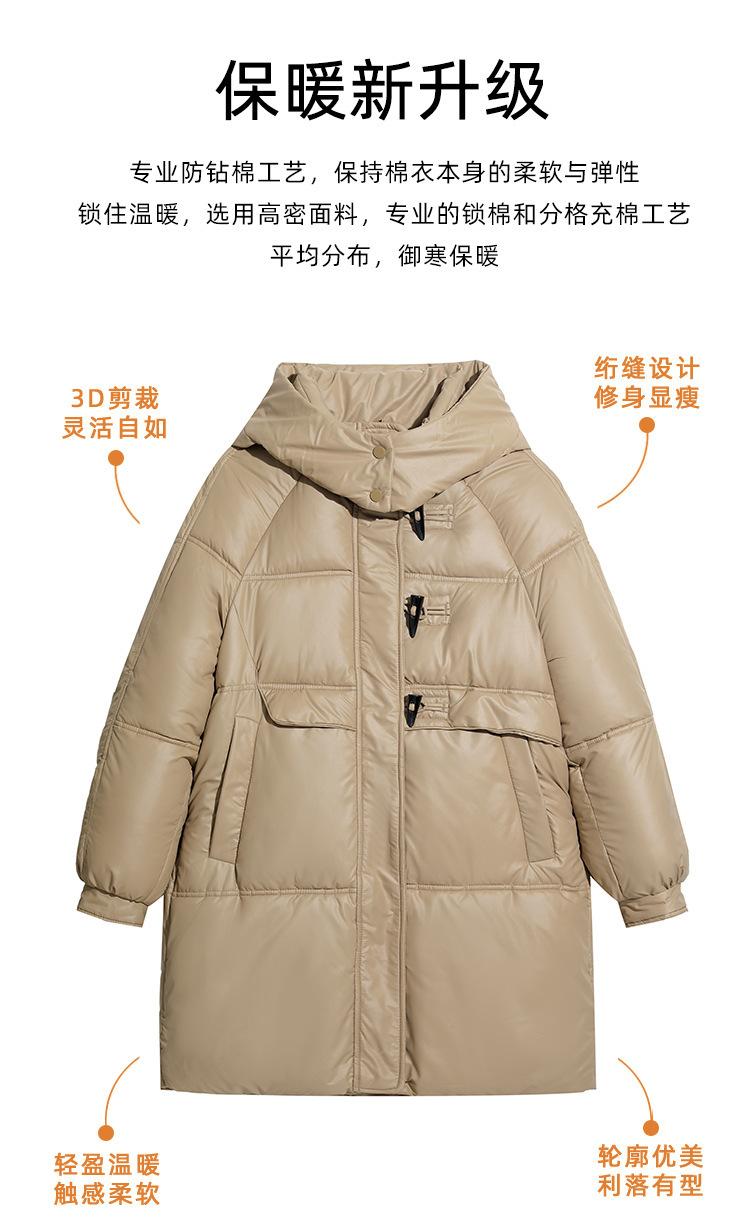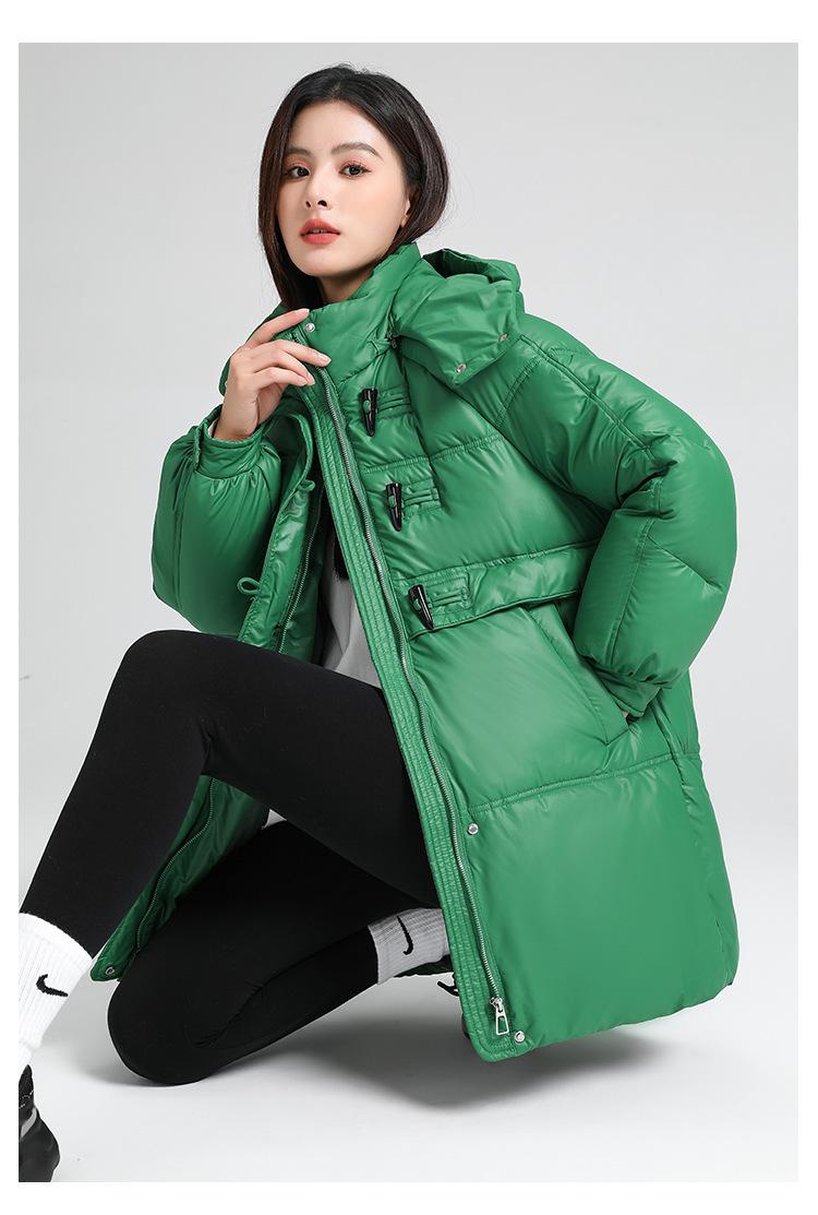 Abrigo de algodón estilo coreano para mujer invierno nuevo abrigo de algodón plumón para mujer largo medio con capucha holgado por encima de la rodilla grueso abrigo de algodón chaqueta de mujer