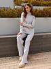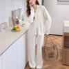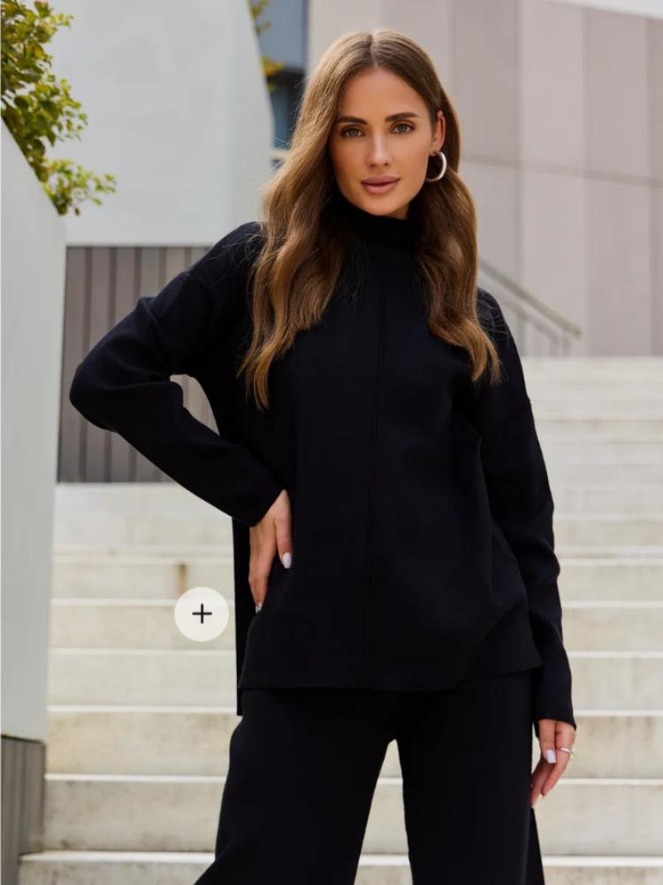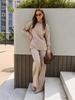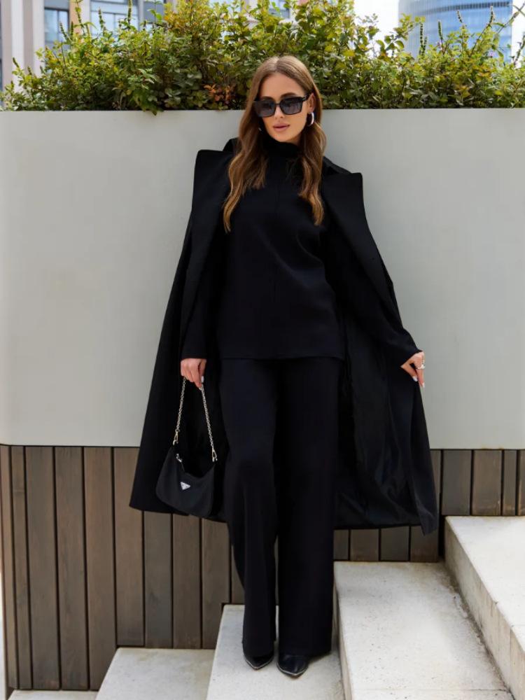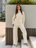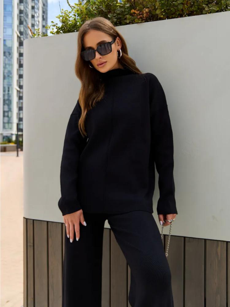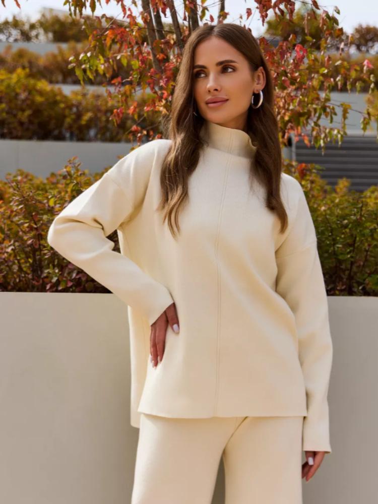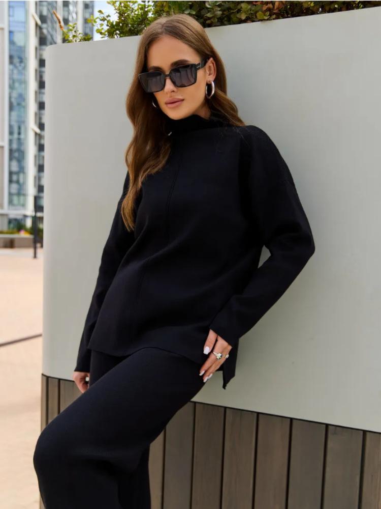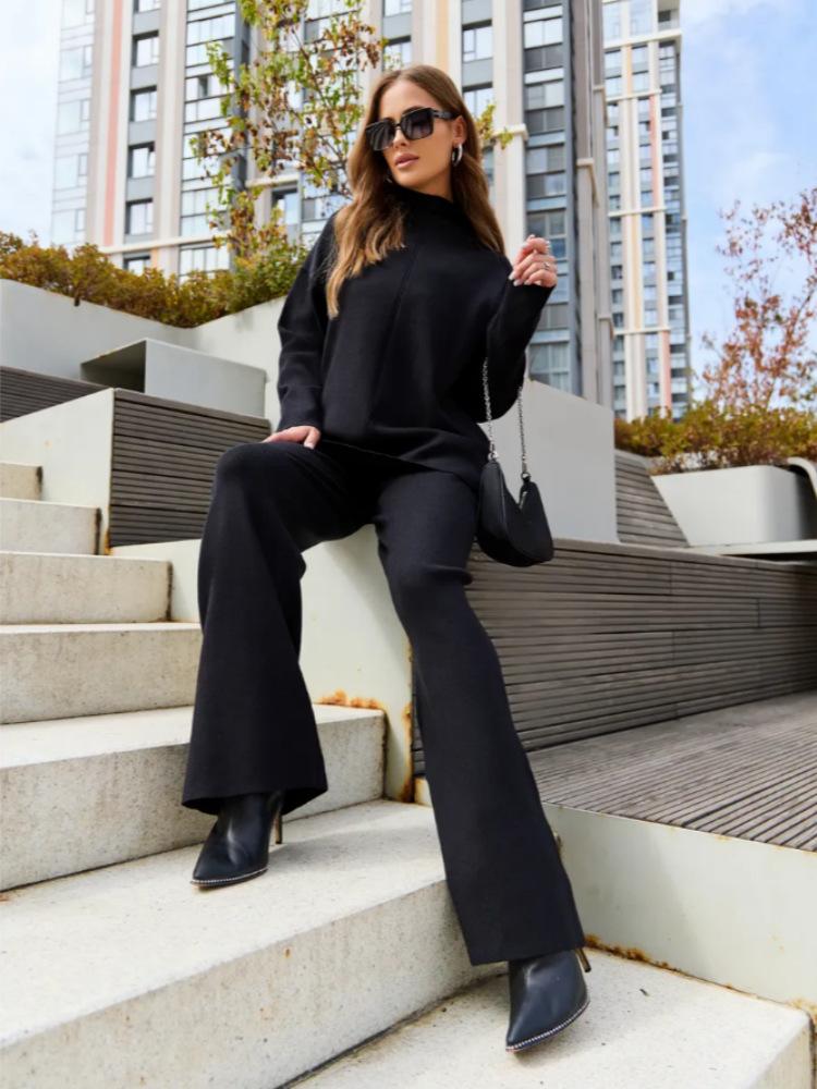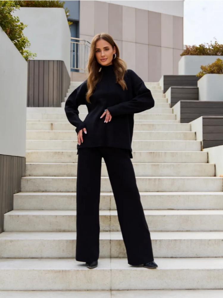 Nuevo Otoño/Invierno Comercio Exterior Transfronterizo Moda Sentido de Alta Gama Abrigo Suéter Pantalones Largos de Pierna Ancha Conjunto de Punto de Dos Piezas para Mujer