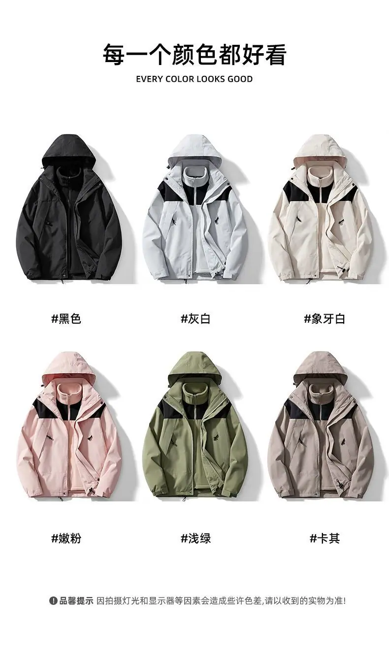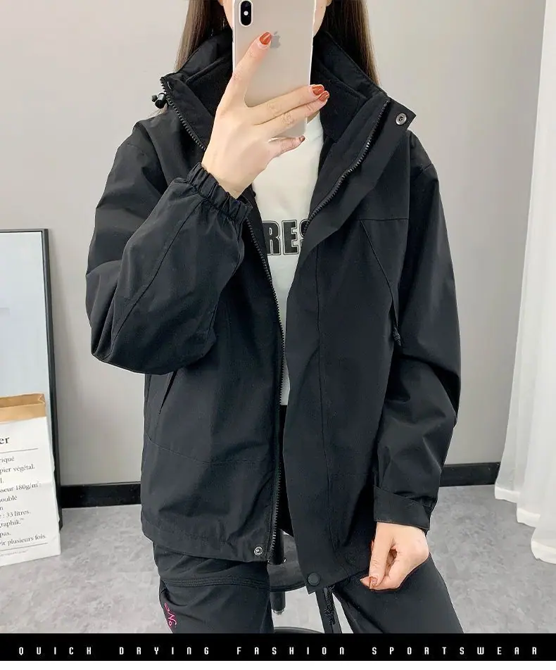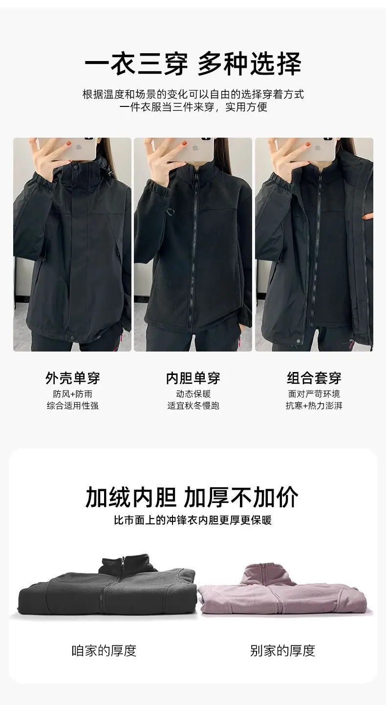 Cortavientos tres en uno para hombre y mujer, estilo pareja, chaqueta forrada de polar y gruesa, traje de esquí impermeable, top para senderismo y montañismo al aire libre