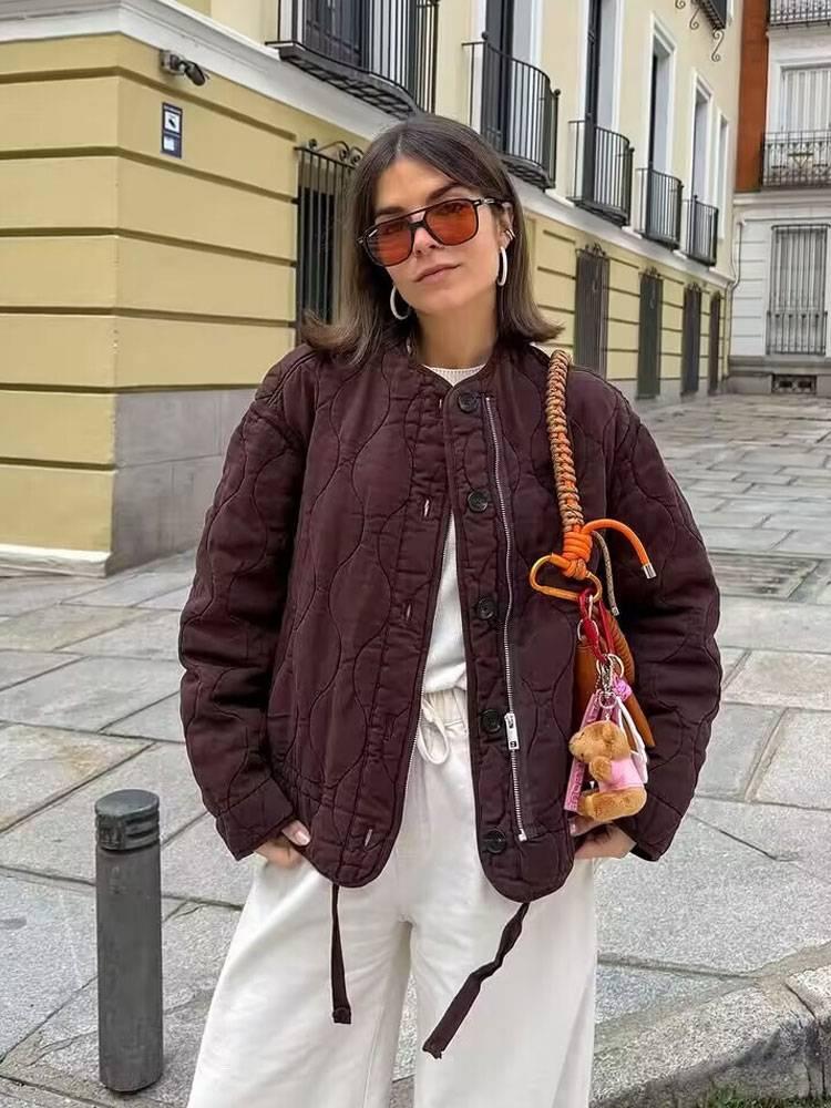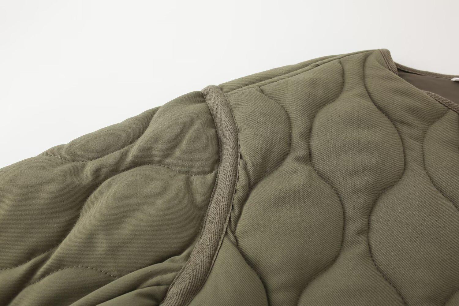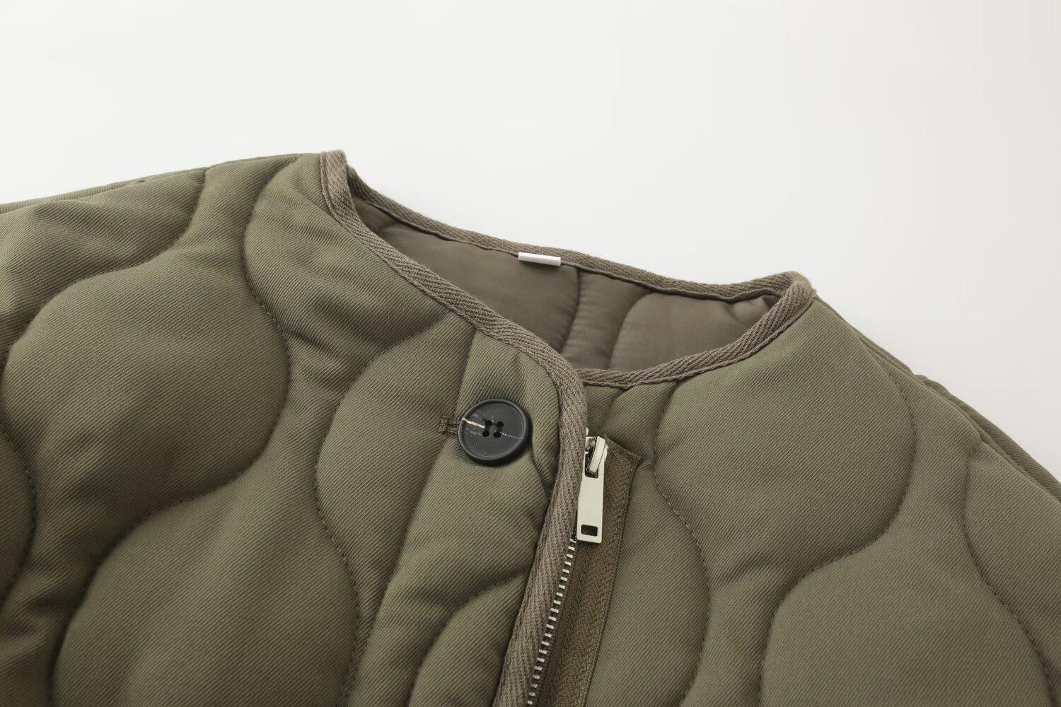 Ropa de mujer transfronteriza comercio exterior invierno nuevo estilo europeo y americano cuello redondo manga larga holgada casual decoración de bolsillo chaqueta de algodón