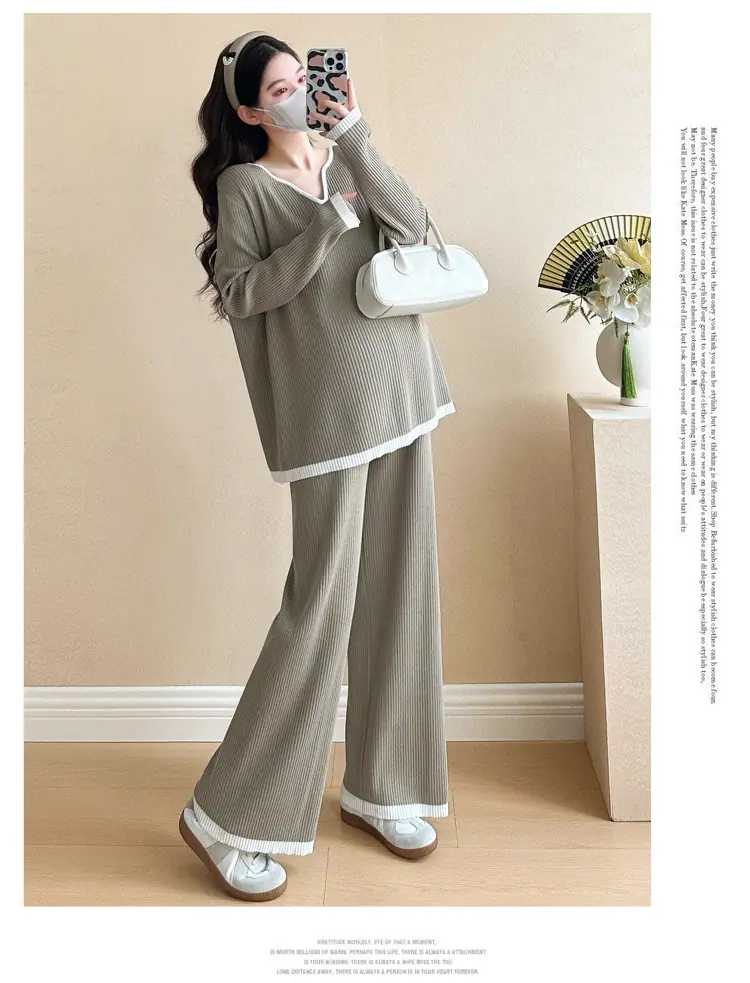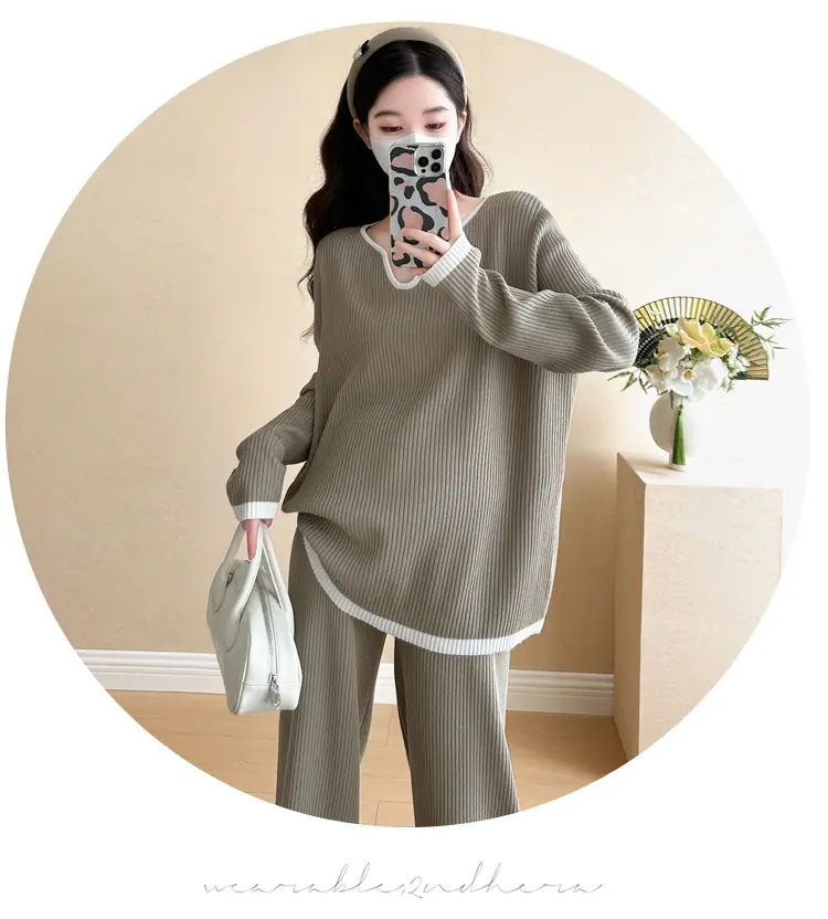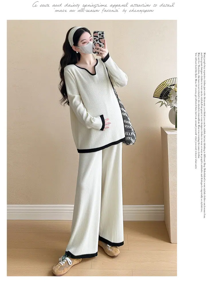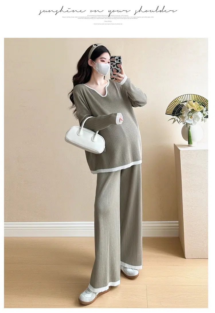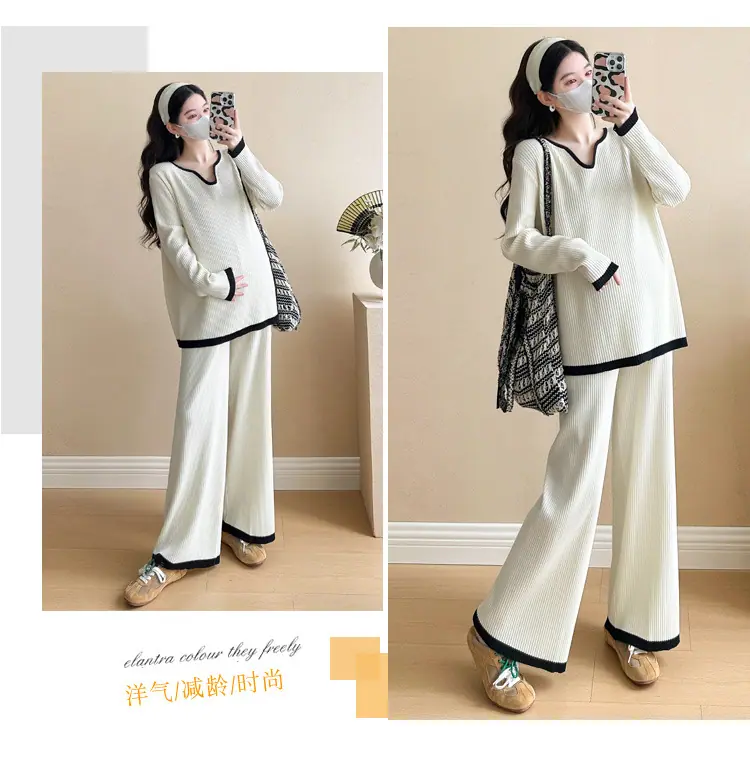 Conjunto de Moda Jingqi para Otoño e Invierno para Mujeres Embarazadas, Estilo Casual de Embarazo, Top Avanzado para Madres Embarazadas