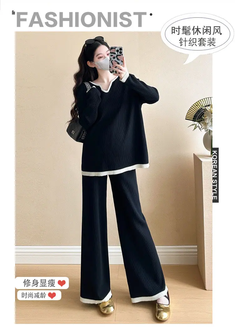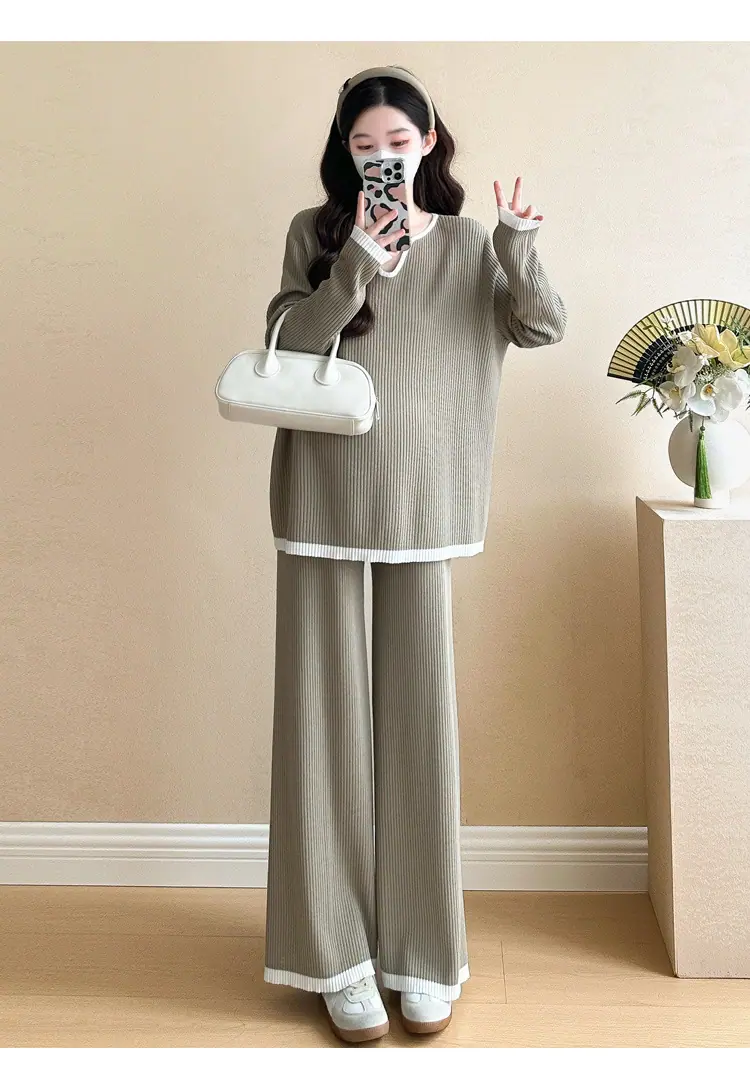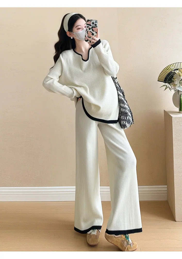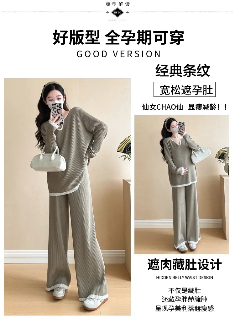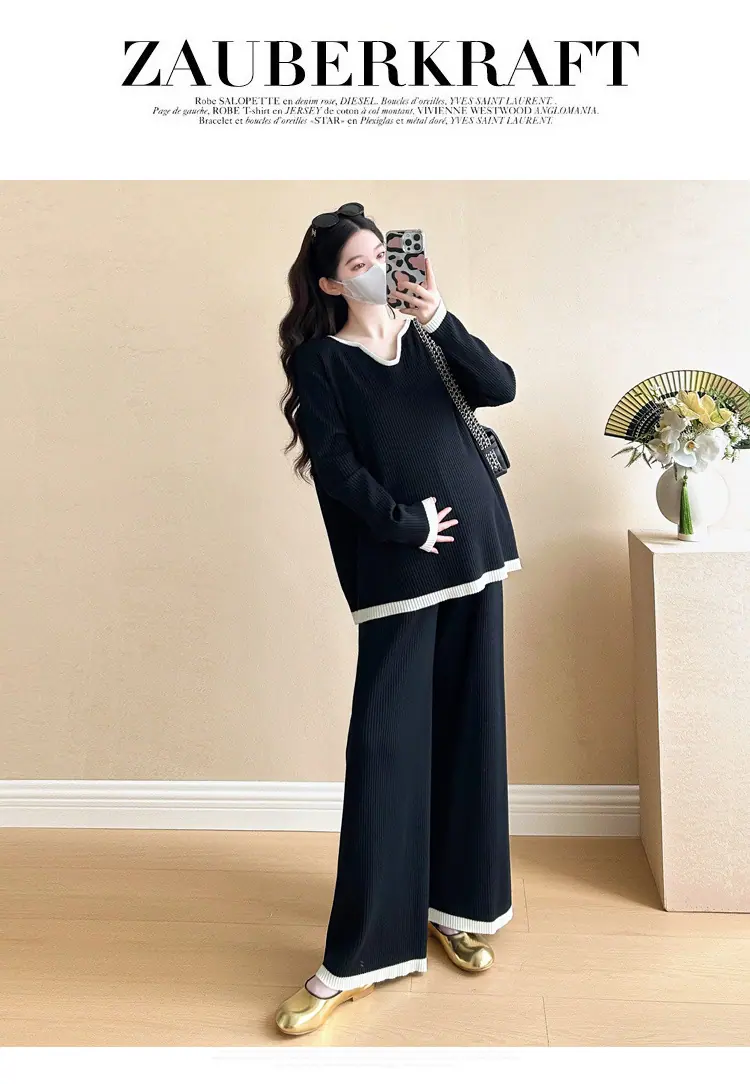 Conjunto de Moda Jingqi para Otoño e Invierno para Mujeres Embarazadas, Estilo Casual de Embarazo, Top Avanzado para Madres Embarazadas