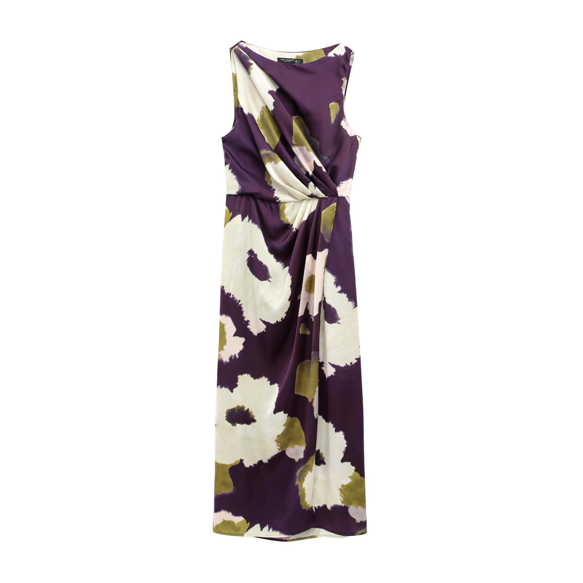 2025 Estilo Europeo y Americano Primavera Vestido Midi Nuevo para Mujer sin Mangas con Estampado Decorativo Plisado
