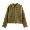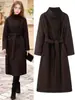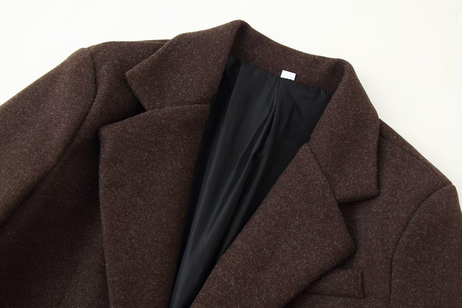 Ropa de mujer de comercio exterior transfronterizo 2025 otoño estilo europeo y americano solapa decoración de bolsillo abrigo largo de lana exterior para mujer M6329