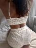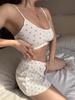 Nueva camisola tejida europea y americana, shorts sexy, pijamas cómodos, mujer, primavera, verano, estampado de corazón, ajuste ceñido, ropa de casa transfronteriza