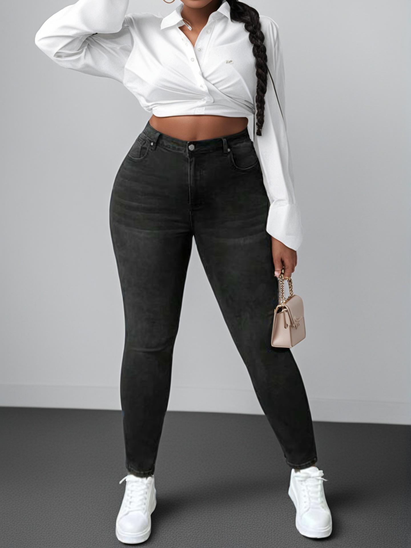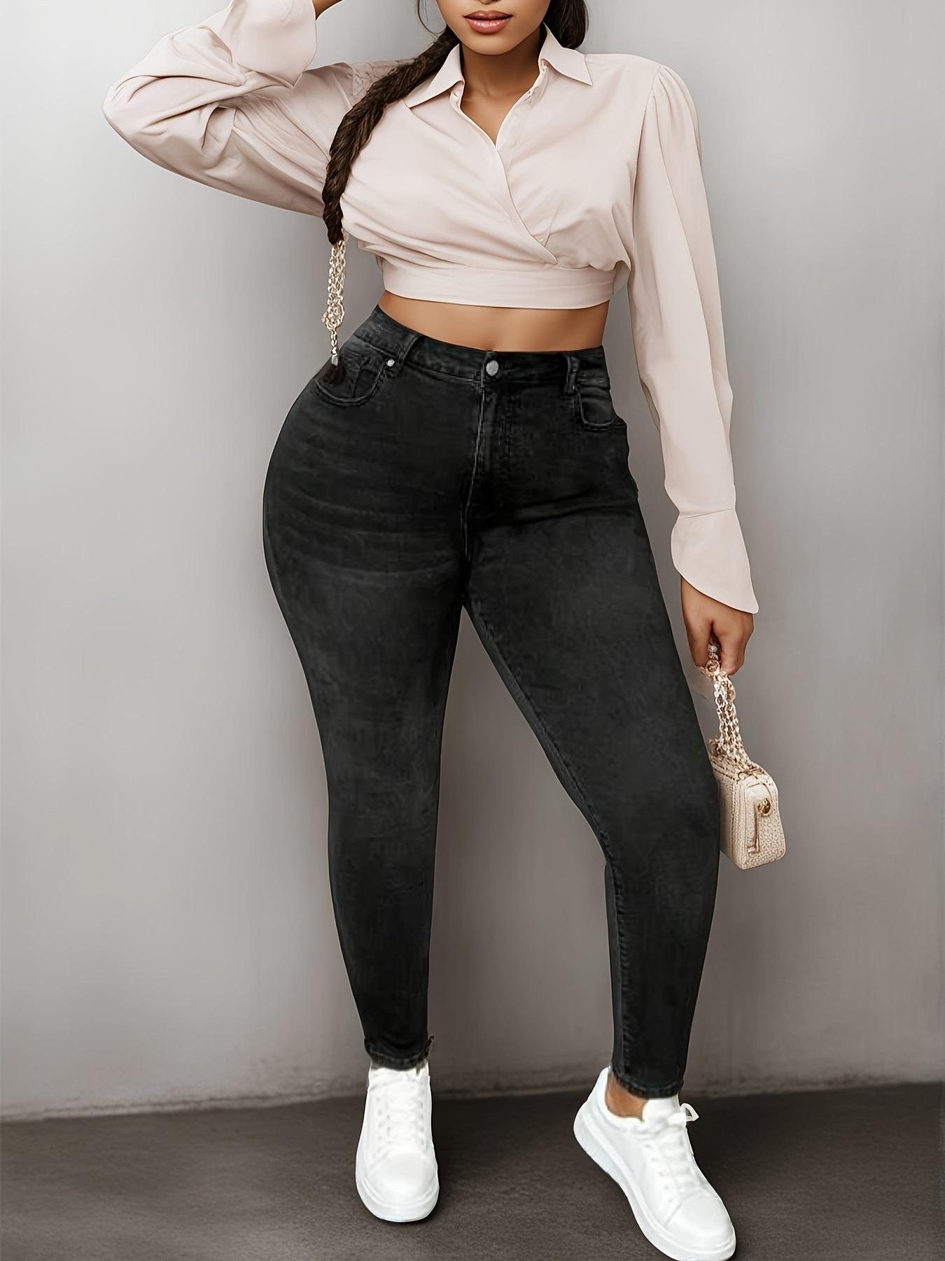 Amazon transfronterizo Nuevo Hip Slim Jeans para Mujer Cintura Alta Sexy Elástico Combinable Talla Extra y Más