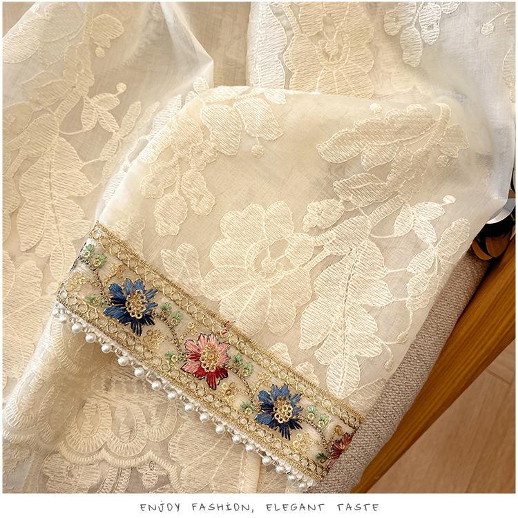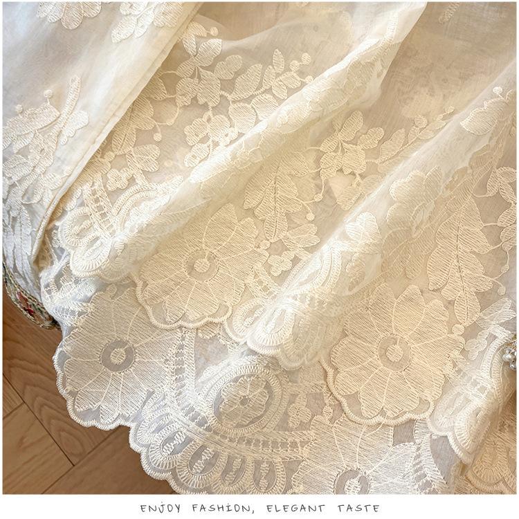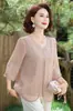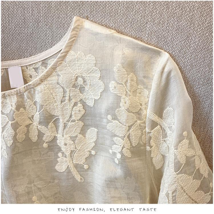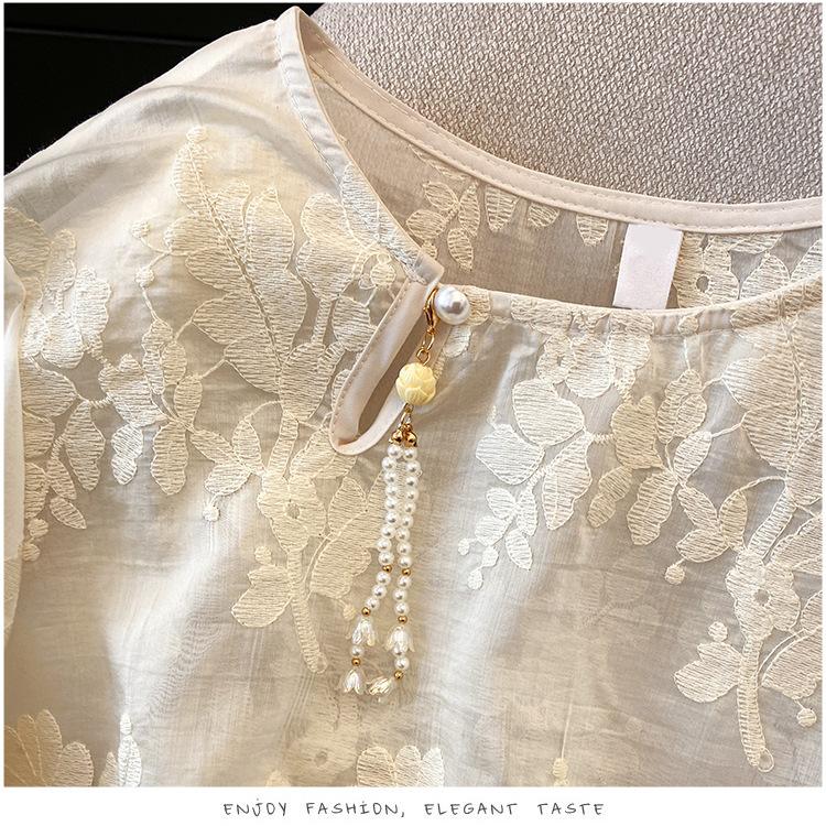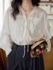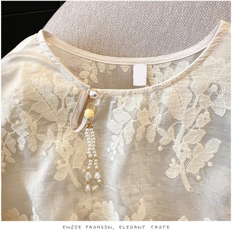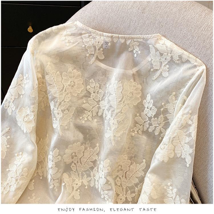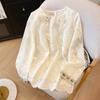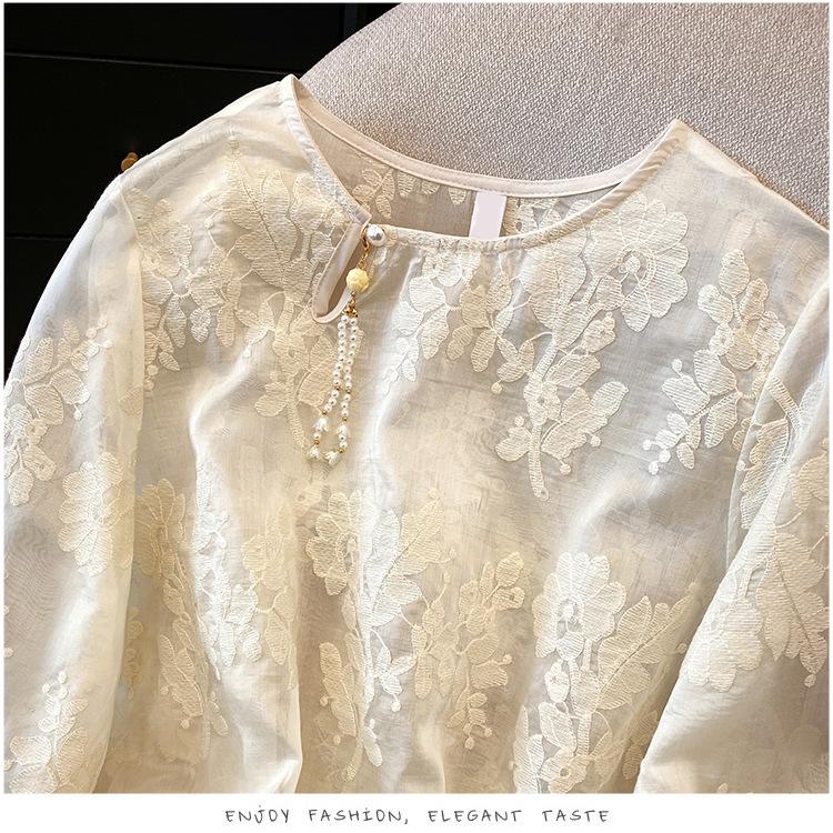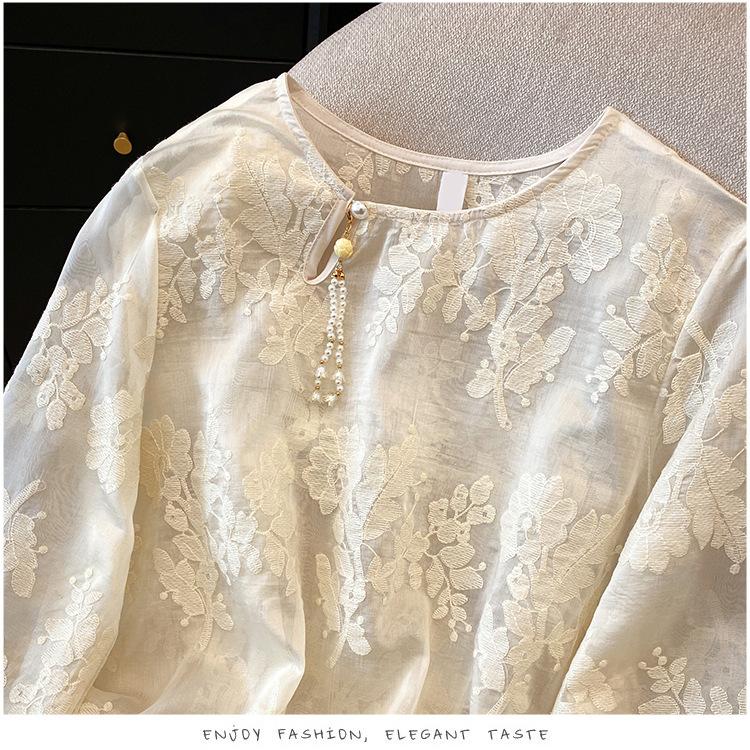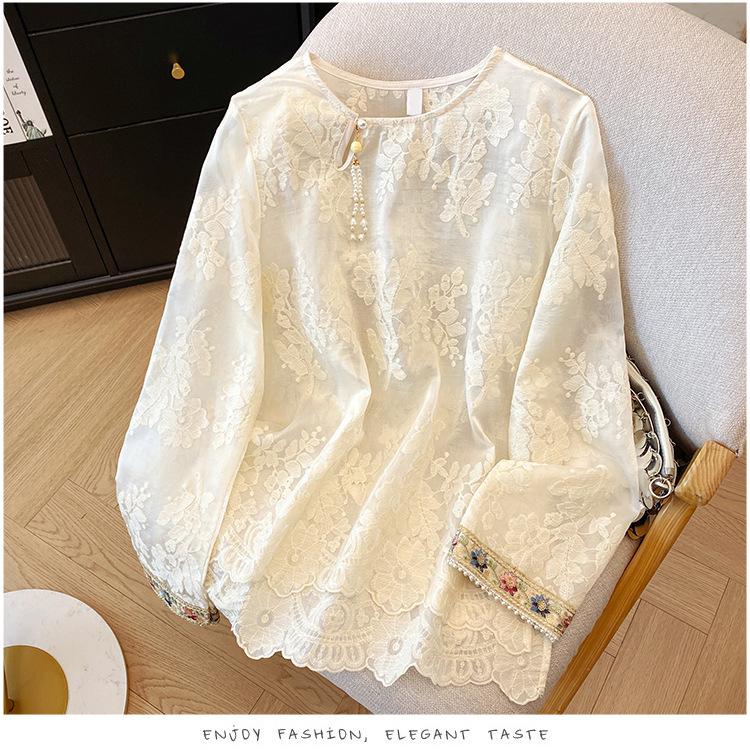 Foto real en stock 2025 primavera y otoño nuevo encaje bordado manga larga cuello redondo top mujeres nueva camisa estilo chino talla grande mujeres
