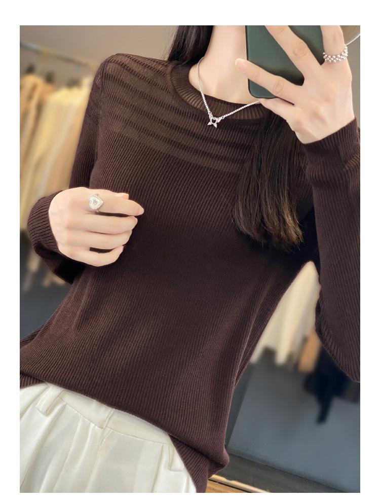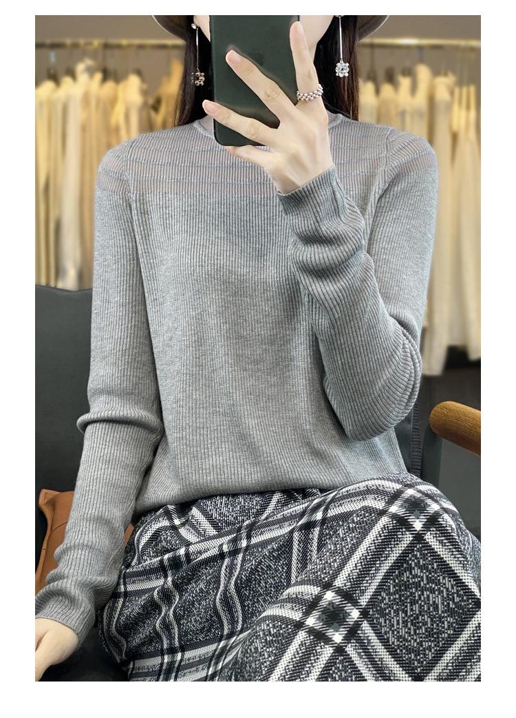 Compra Primavera y Otoño Nuevo Top interior de manga larga para mujer 2024 nuevo suéter popular de cuello redondo y corte ajustado al por mayor en Joom.pro