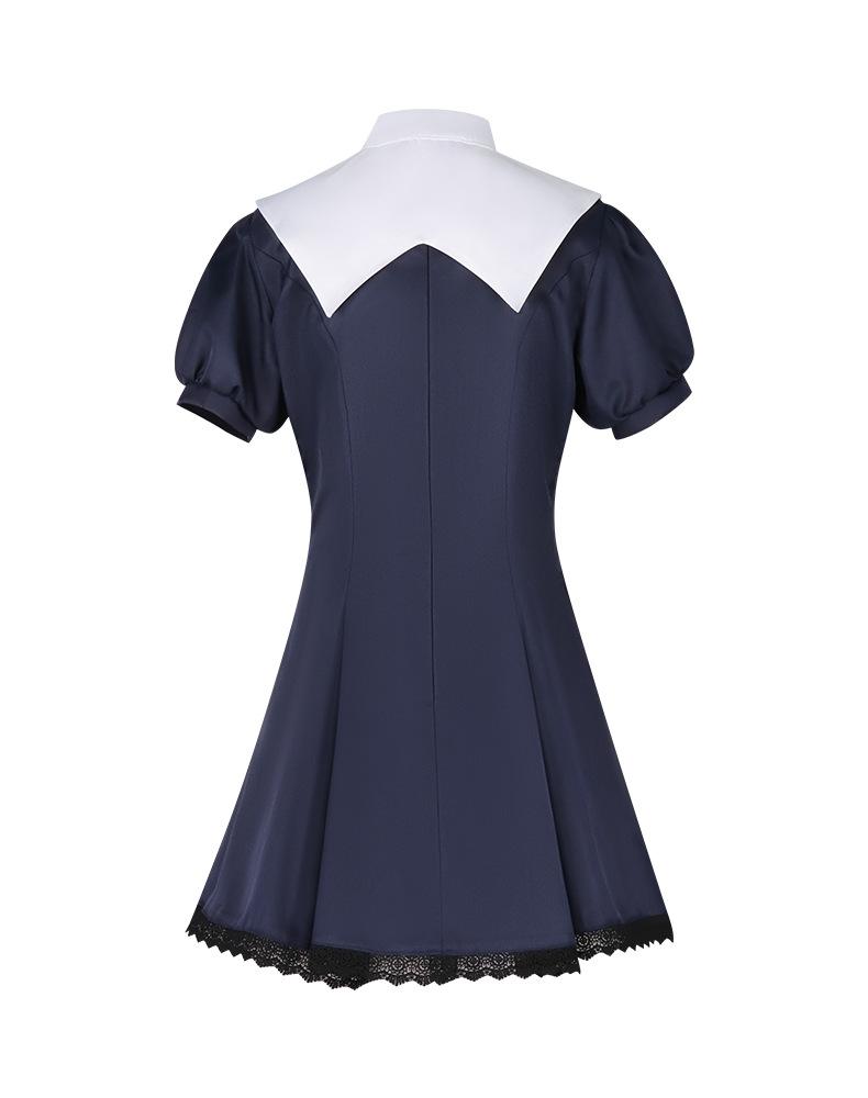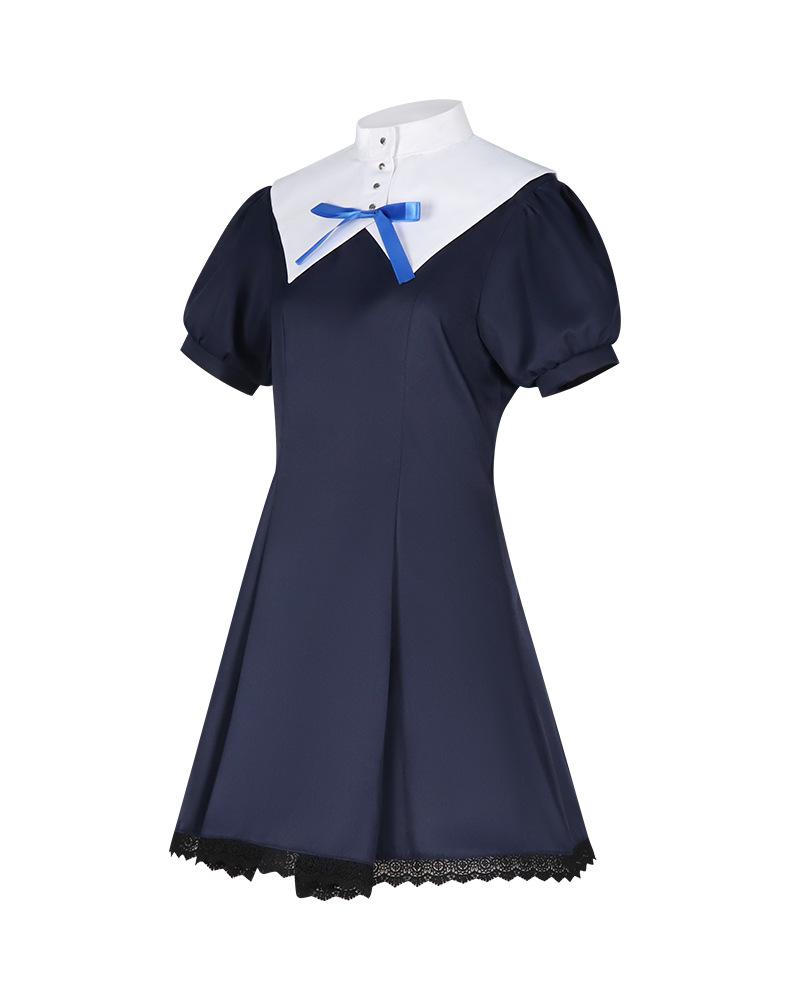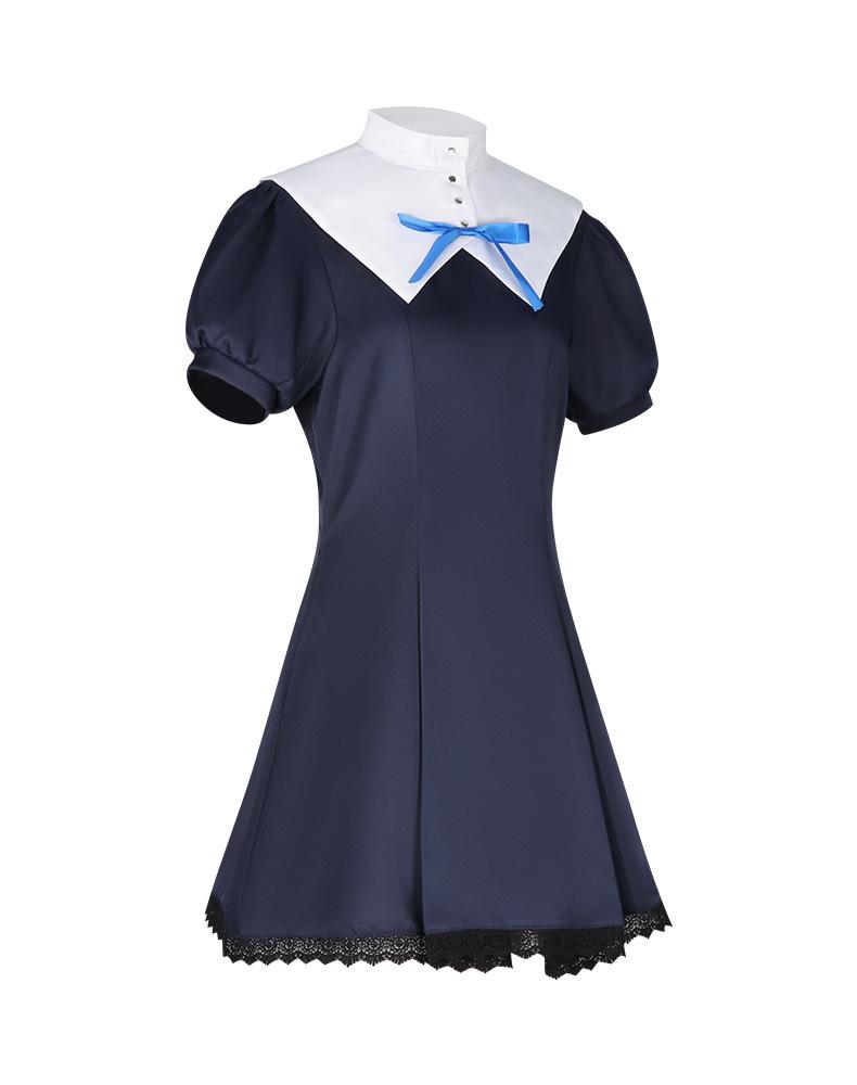 Blue Zephyr Mint Cosplay Dress, Black shiny leather shoes (please note the size when taking the photo)