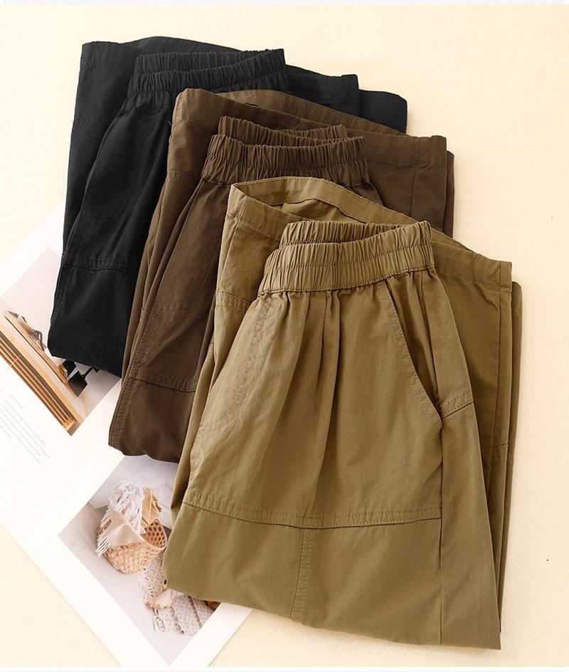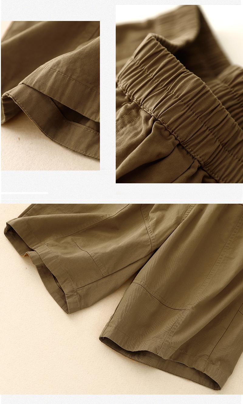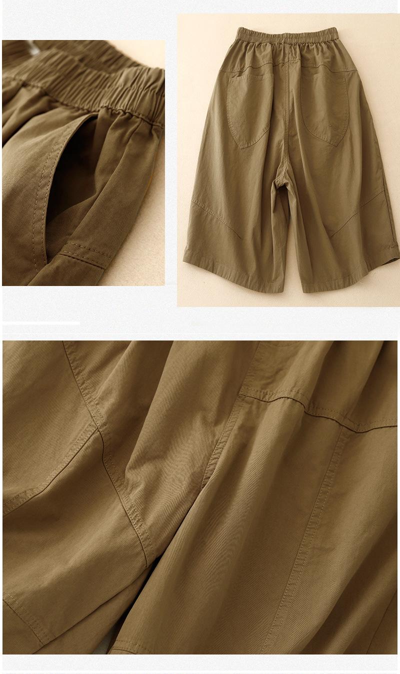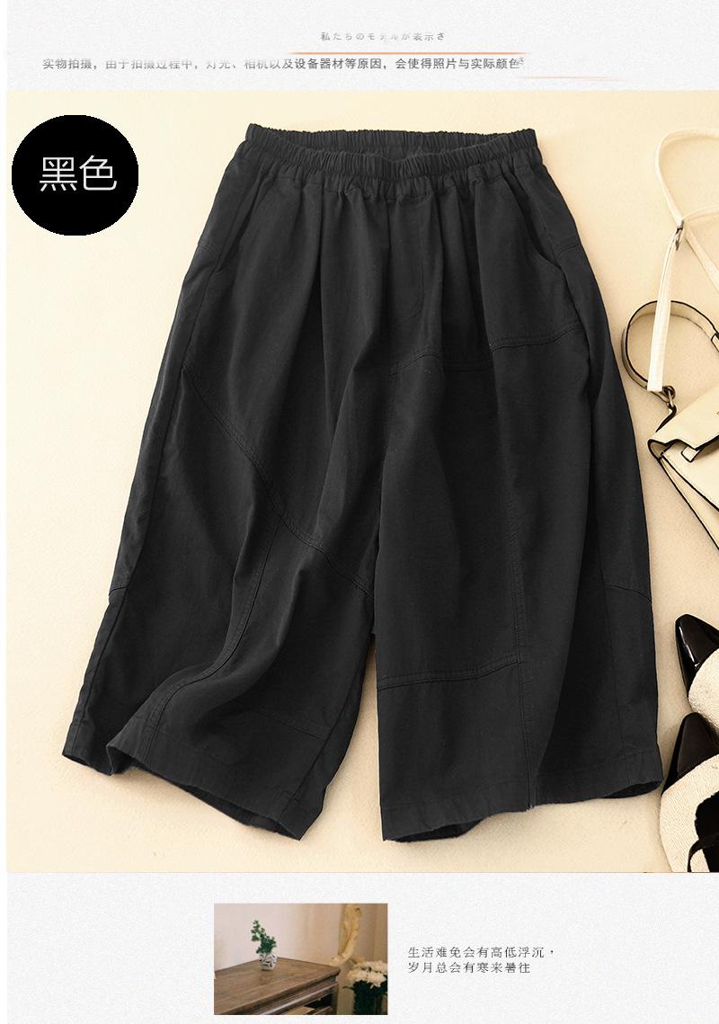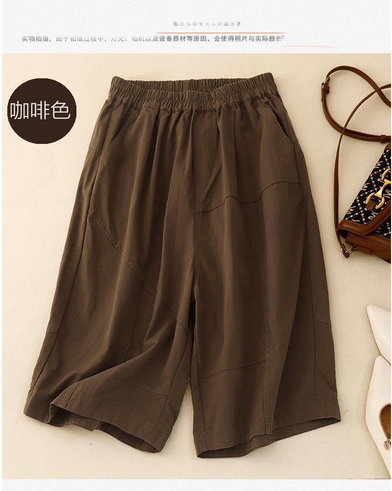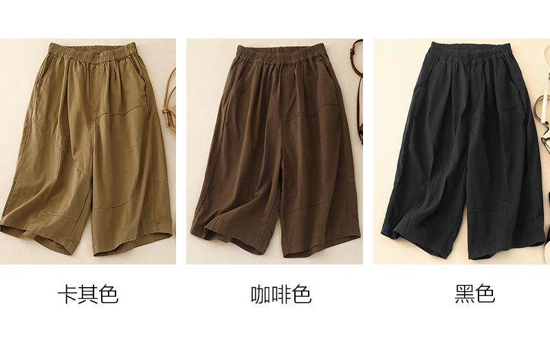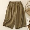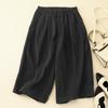 Pantalones de Cinco Puntos para Mujer Estilo Verano 2025 Sueltos Talla Grande Literarios Cintura Elástica Pierna Ancha Casual Versátiles Adelgazantes Pantalones de Largo Medio