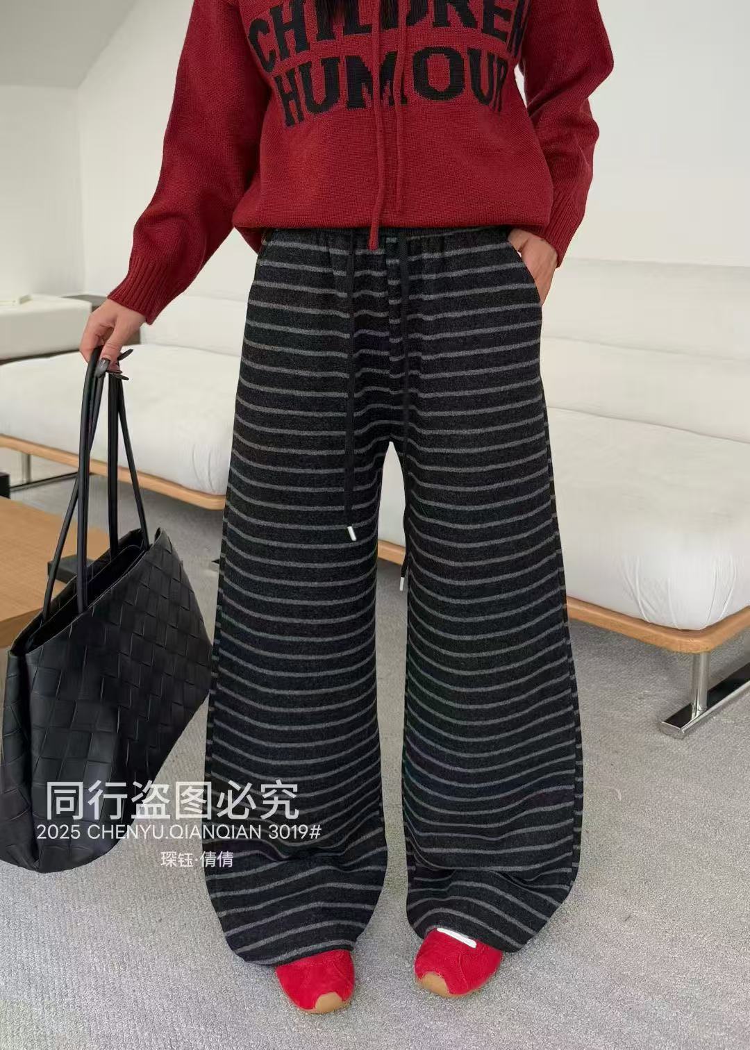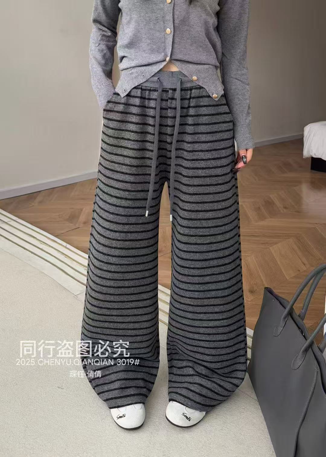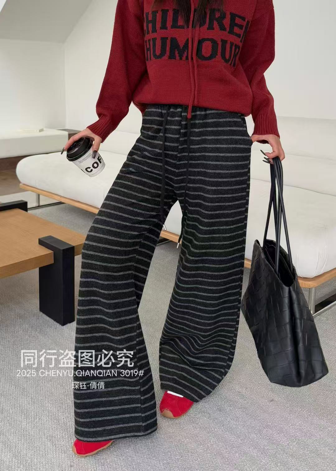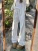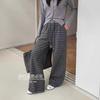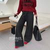 Pantalones de pierna ancha sueltos con cordón de cintura alta con bloques de color estilo coreano para mujer 2025 otoño nueva moda pierna recta forro polar pantalones casuales