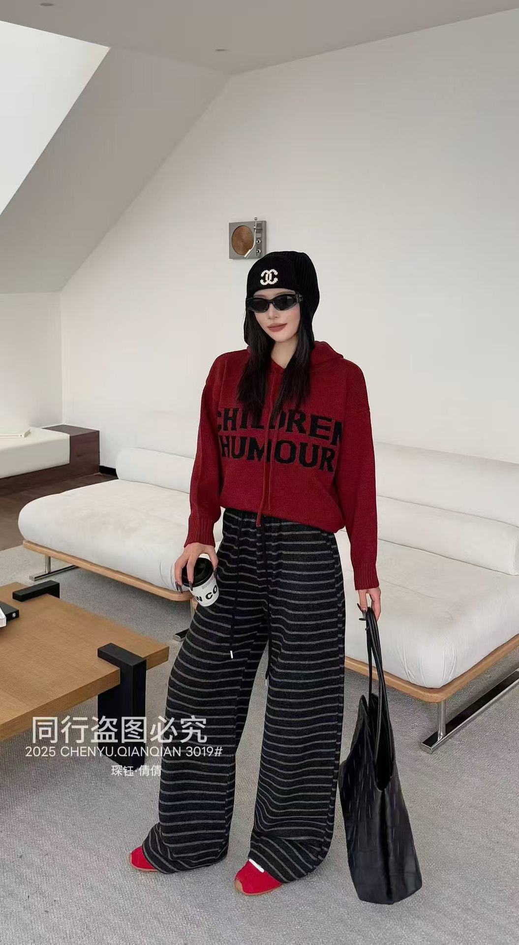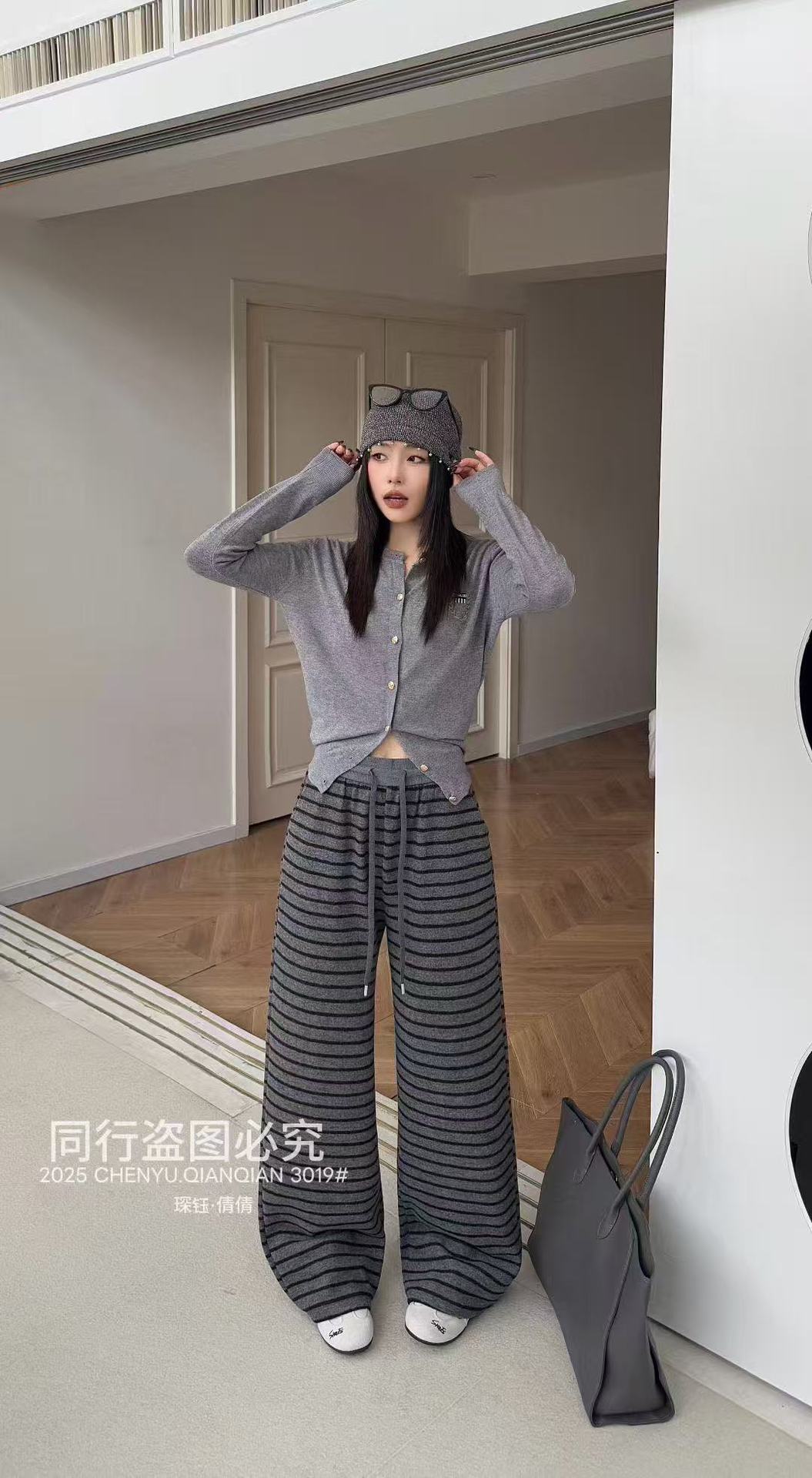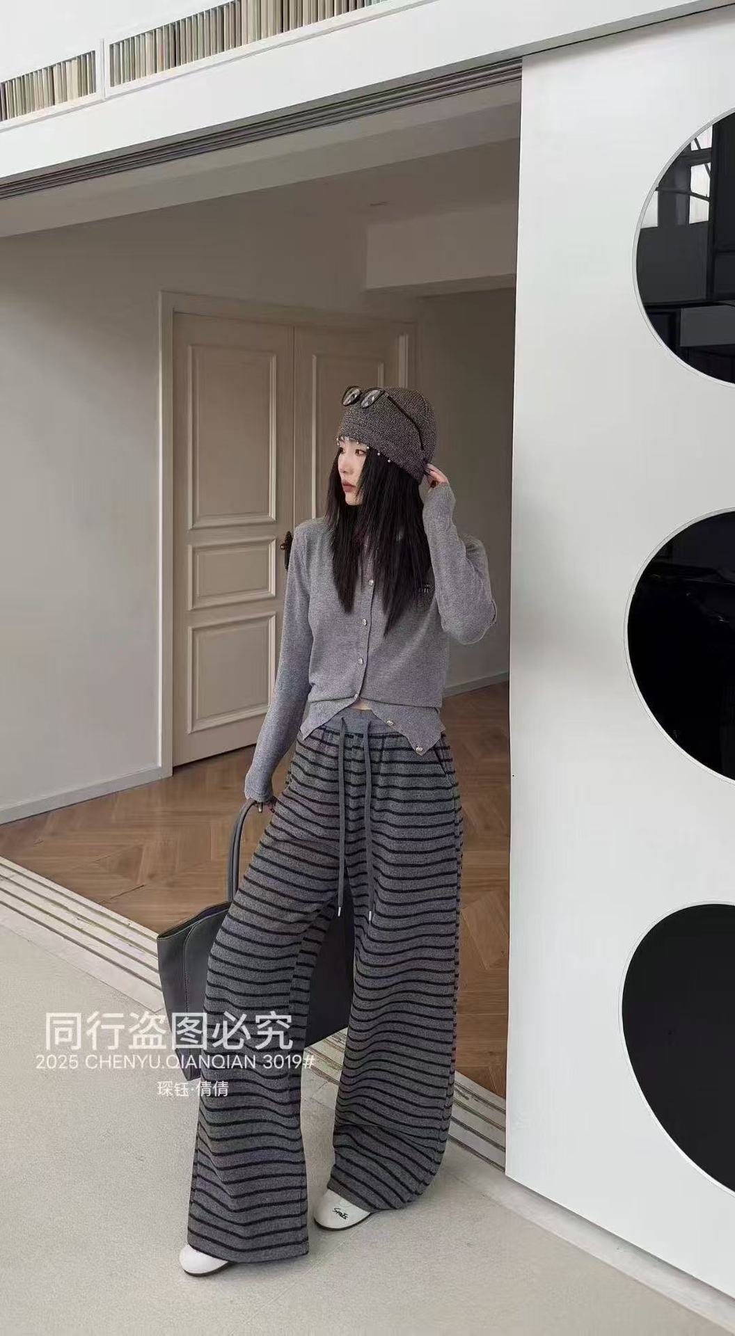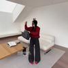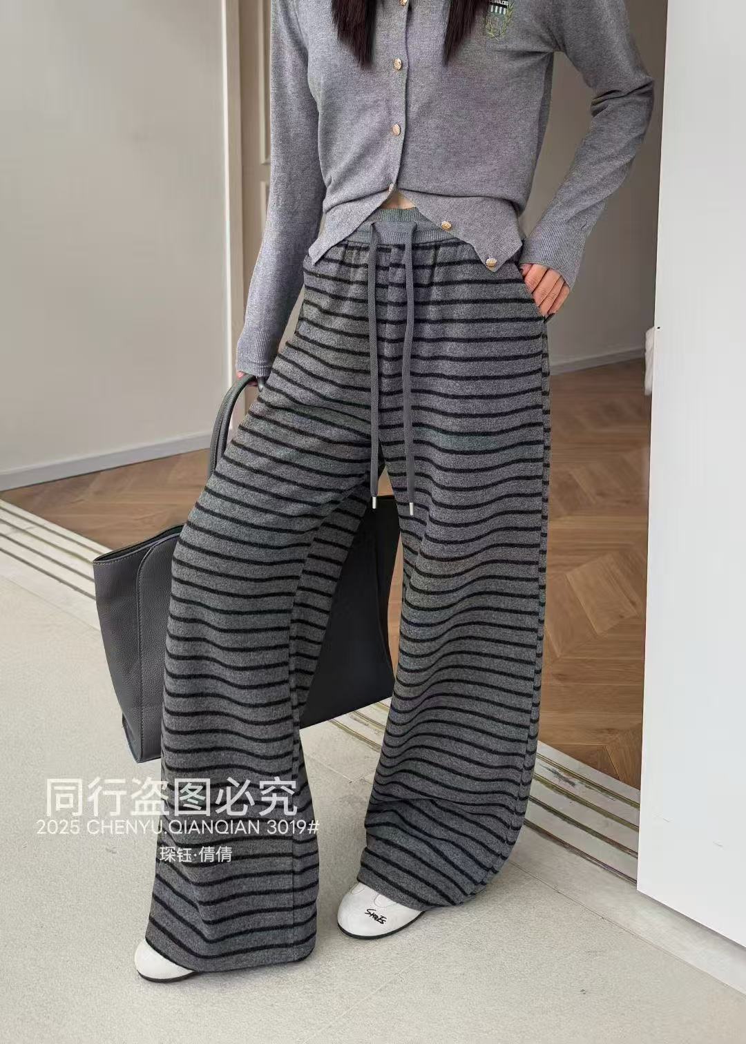 Pantalones de pierna ancha sueltos con cordón de cintura alta con bloques de color estilo coreano para mujer 2025 otoño nueva moda pierna recta forro polar pantalones casuales